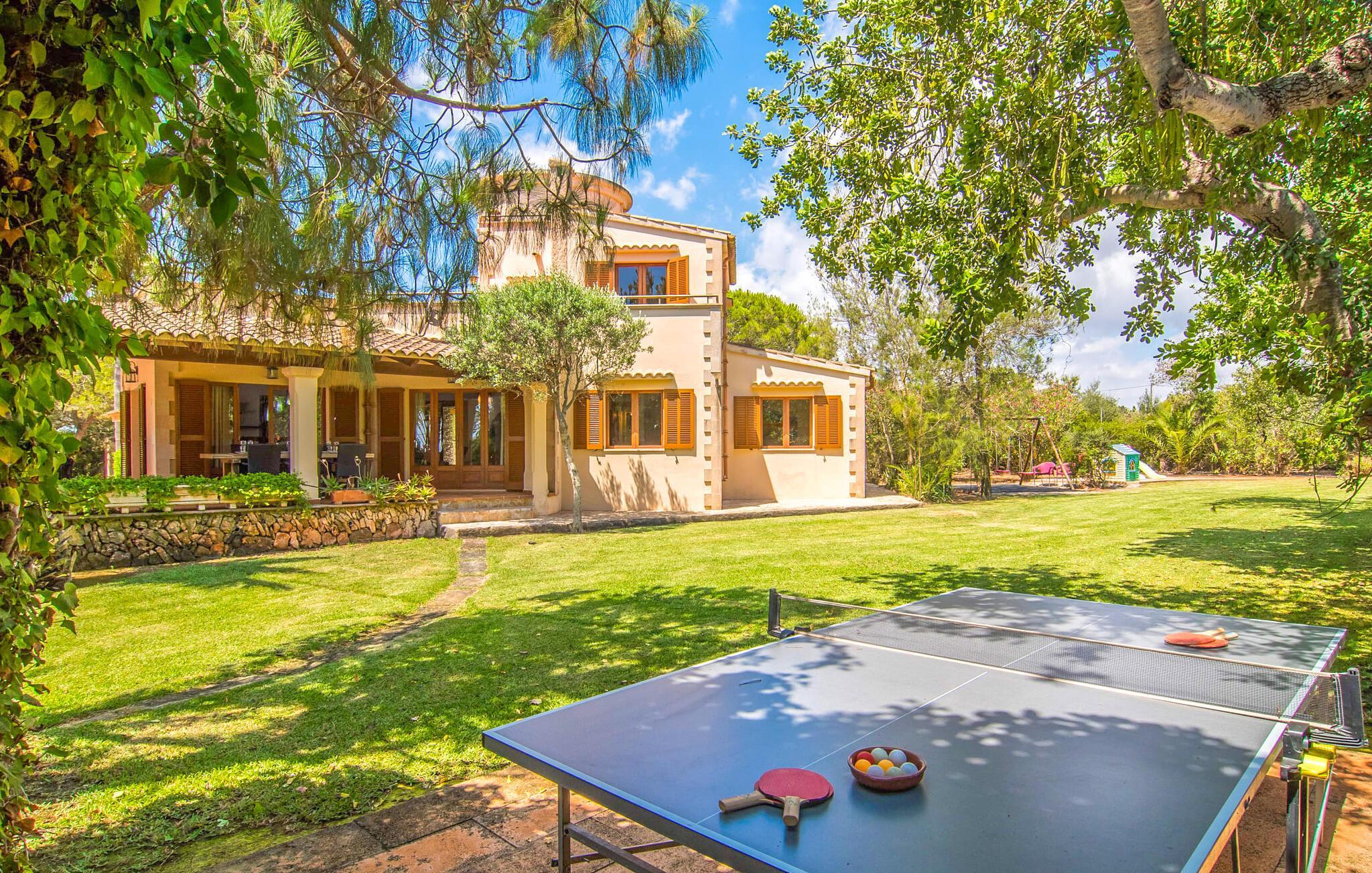Mallorca ist mehr als nur eine sonnige Insel im Mittelmeer. Mallorca ist ein Lebensstil, den Sie in dieser rustikalen, charmanten Steinvilla in der Nähe von S'Horta schnell entdecken werden. Der idyllische Garten empfängt Sie mit einer kleinen Palmenoase, die Ihre Stimmung sofort heben wird. Der Pool ähnelt einer Welle und ist von Terrakottafliesen und Sandstein umgeben – schnappen Sie sich Ihr Lieblingsgetränk und lassen Sie sich einfach durch den Tag treiben. Der Garten ist so liebevoll angelegt, dass Sie schnell zur Ruhe kommen und einfach auf einer der Poolterrassen Ihre Sonnenenergie aufladen können. Kinder können auf der Schaukel spielen oder ein kleines Tischtennis-Match starten, was natürlich auch bei manchen Erwachsenen Erinnerungen wecken wird. Unter der überdachten Terrasse können Sie bei der Siesta frisches Obst oder leckeren Fisch genießen und sich fast wie ein echter Inselbewohner fühlen. Die niedlichen Fensterläden aus Holz geben ihr Möglichstes, um ein natürliches spanisches Flair zu verbreiten.