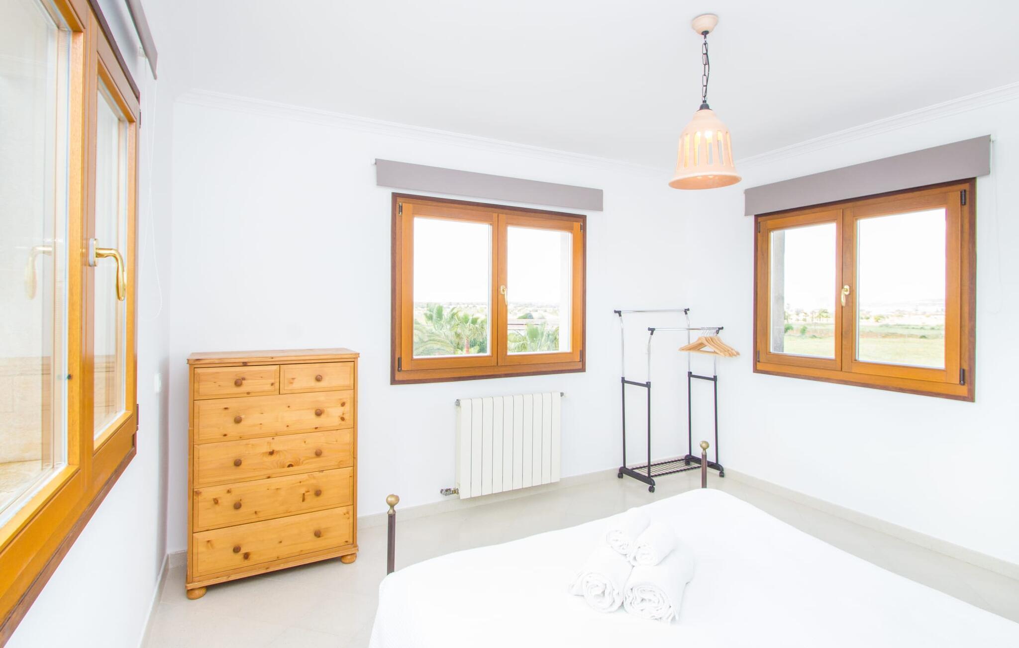 All diese Superlative gelten auch für das charmante Städtchen Campos, das 3,5 km entfernt liegt und die erste Anlaufstelle für Ihre täglichen Einkäufe ist. In beschaulichen Straßencafés können Sie sich Mandelkuchen und einen Cortado gönnen – und anschließend einen Ausflug nach Colònia de Sant Jordi unternehmen. Das ehemalige Fischerdorf liegt direkt neben dem kilometerlangen Strand Es Trenc, der mit seinem weißen Sand malerische Strandtage bietet. Ob Sie die pulsierende Inselhauptstadt Palma besuchen, um das vielfältige Kulturangebot zu nutzen, oder mit dem Mietwagen die attraktive Ostküste erkunden, die einfach nur so wimmelt von Highlights wie den eine halbe Stunde entfernten Buchten von Cales de Mallorca – rein Abends können Sie mit den Erinnerungen an Ihre fantastischen Erlebnisse in Ihre herrlich ruhige Villa zurückkehren.
