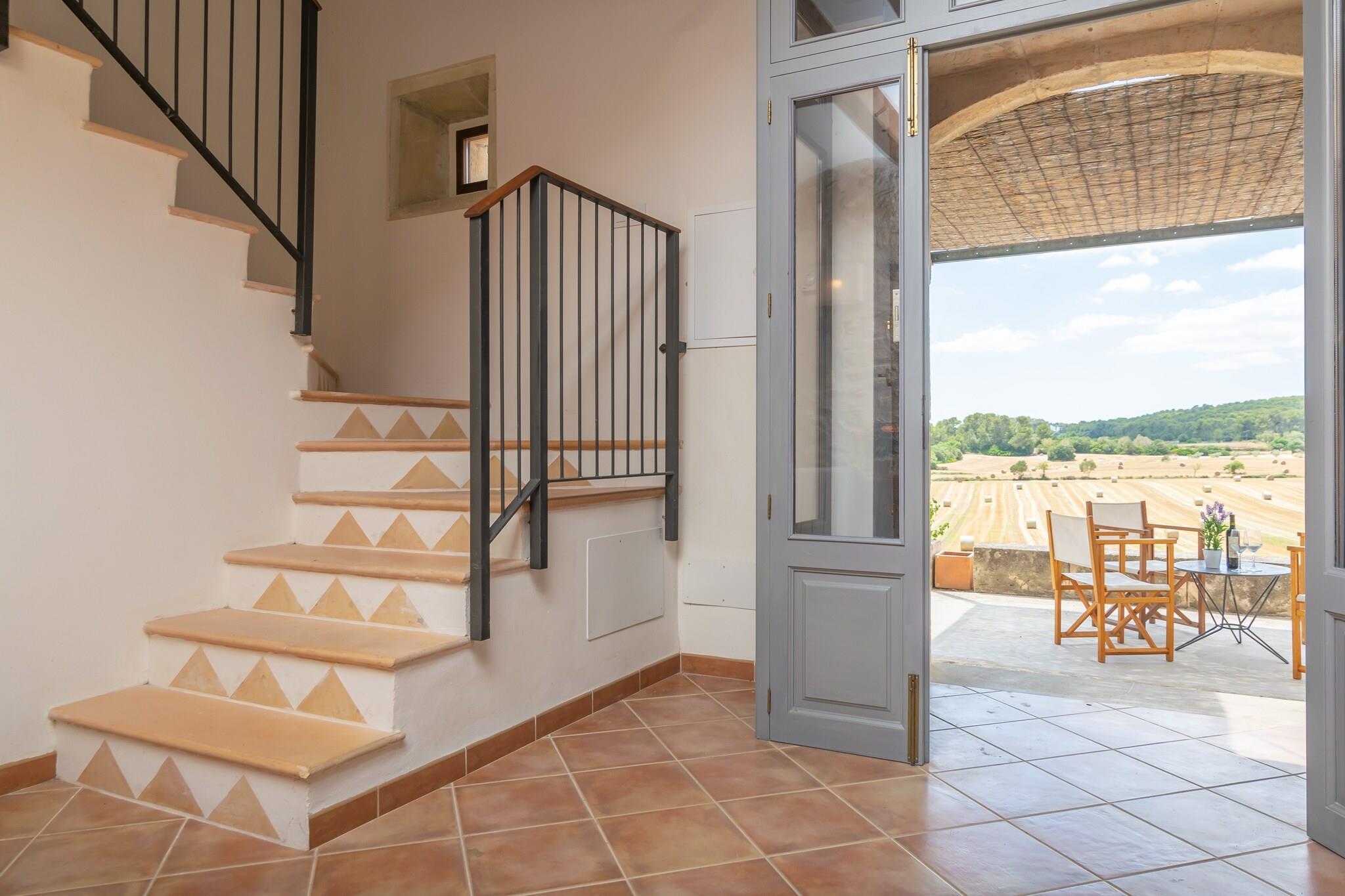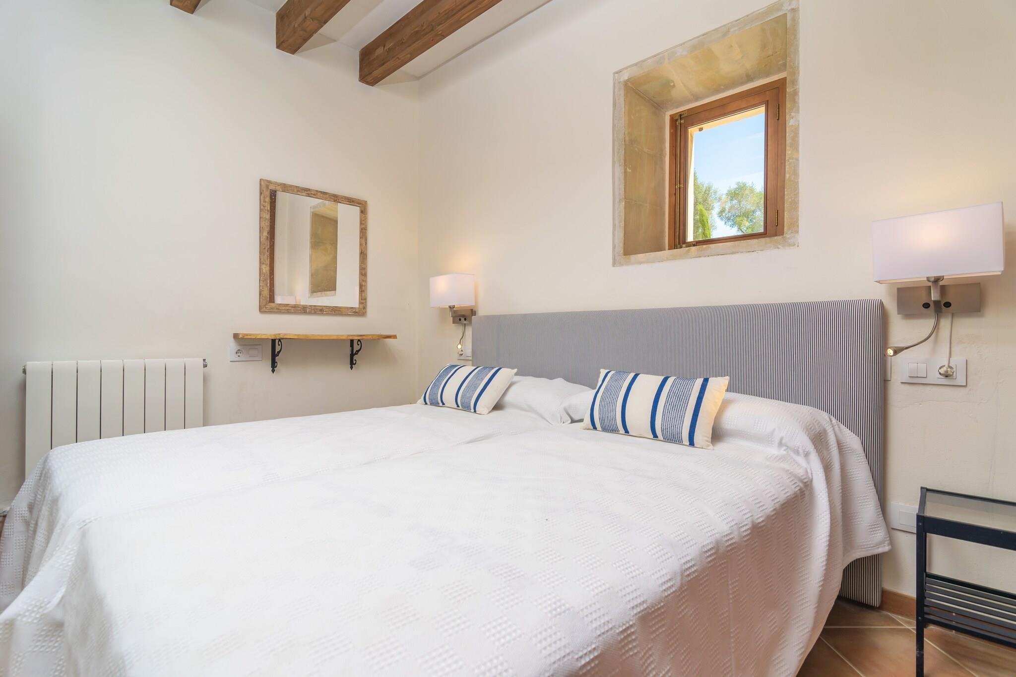 After a day of excursions around the island, you can cool off in the fantastic saltwater pool that measures 10 x 3 meters and has a depth that ranges between 1.20 and 1.60 meters. You can sunbathe on the surrounding sunbeds and enjoy a delicious barbecue or a drink at sunset on the different terraces around the house. The property is fenced and the privacy is total. The 2-storey house preserves the traditional character of yesteryear and has been decorated with exquisite taste and equipped with everything you need for a perfect stay. On the ground floor you will find the living room equipped with AC and TV-sat, the beautiful dining room, the separate kitchen with gas cooktop, a bathroom with shower and a bedroom with twin beds. On the first floor you have the other 4 bedrooms, all with AC. They are equipped with twin beds each except one that has a trundle bed, and one of them also has an en-suite bathroom with shower. There is another bathroom with a shower on this floor. The house is equipped with oil central heating for the winter months, as well as a cot and high chair in case you travel with your baby. There is also a washing machine, iron and ironing board. The house is located in a bucolic setting in the middle of the fields on the outskirts of Sant Joan. The town offers the basic services for an independent stay. Its central location allows quick access to the various corners of the island. The closest beach is Playa de Muro about 24 km away, a golden sandy beach of ??several km of turquoise waters. The fireplace in the dining room is decorative. Consult the advertiser for possible charges. Pets are not allowed. The holding of events is forbidden. There is exterior parking for 4 cars. Distances Beach: 24 km - Playa de Muro Airport: 38.9 km - Son Sant Joan Golf course: 28.2 km - Golf park Mallorca Puntiró Town: 3.6 km - Sant Joan Train station: 6.1 km - Petra Bus stop: 3.4 km - Sant Joan Ferry: 50 km - Palma Hospital: 19.1 km - Hospital de Manacor Tourist license: ETV/8574Single Rental Registry: ESFCTU00000702900030356300000000000000000000ETV/85748There's a mandatory tourist tax in Balearic Islands, called Ecotasa. All guests, except people under 16 years, have to pay this tax. The amount varies between 0.55EURO/night and guest during the low season and 2.2EURO/night and guest during the high season .The tax is reduced by half from the 9th day for your stay. Heating (November - April): 12 EUR/Night (optional)