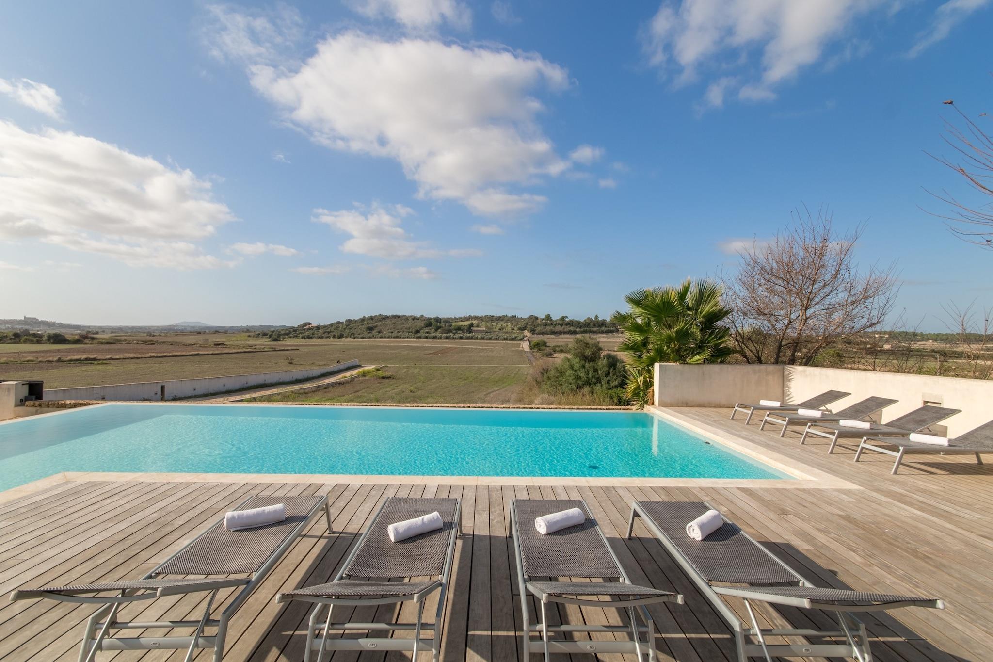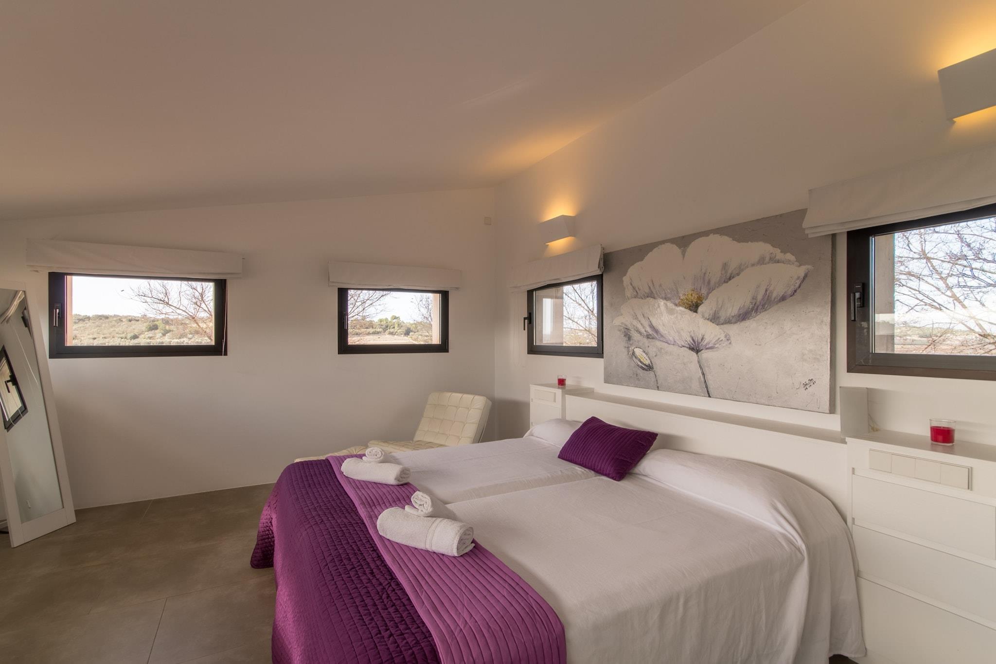 This modern Dalt Son Morro villa in Santa Margalida offers a spacious and comfortable retreat for up to 8 guests, with 4 stylishly furnished bedrooms and 200 m² of living space. Surrounded by a beautiful garden and featuring a private swimming pool, the villa is perfect for a relaxing getaway. It is located in a peaceful, family-friendly zone, offering a tranquil atmosphere while being close to key local attractions. The property is just 6 km from the S'Albufera Nature Reserve and within 4 km of local beaches, restaurants, and shops, ensuring a great balance between relaxation and convenience. The villa’s modern design includes all the amenities you need for a comfortable stay. It features a fully equipped independent kitchen with an induction stove, refrigerator, microwave, dishwasher, and coffee machine, perfect for preparing meals. The living space extends to a large 200 m² terrace where you can enjoy outdoor dining and relaxation. For your convenience, the villa offers air conditioning throughout, high-speed Wi-Fi, a TV with satellite channels, and a hot tub for ultimate relaxation. A washing machine, barbecue, and ample parking space are also available for your convenience. Situated in a beautiful rural area, the villa provides the perfect base to explore the surrounding region. The nearby city of Muro is just 4 km away, and the charming beach towns of Can Picafort and Platja de Muro are a short drive from the property. You’ll also find a variety of restaurants, supermarkets, and attractions, such as the Hydropark water park, just a short distance away. The rental license number is ET/2886