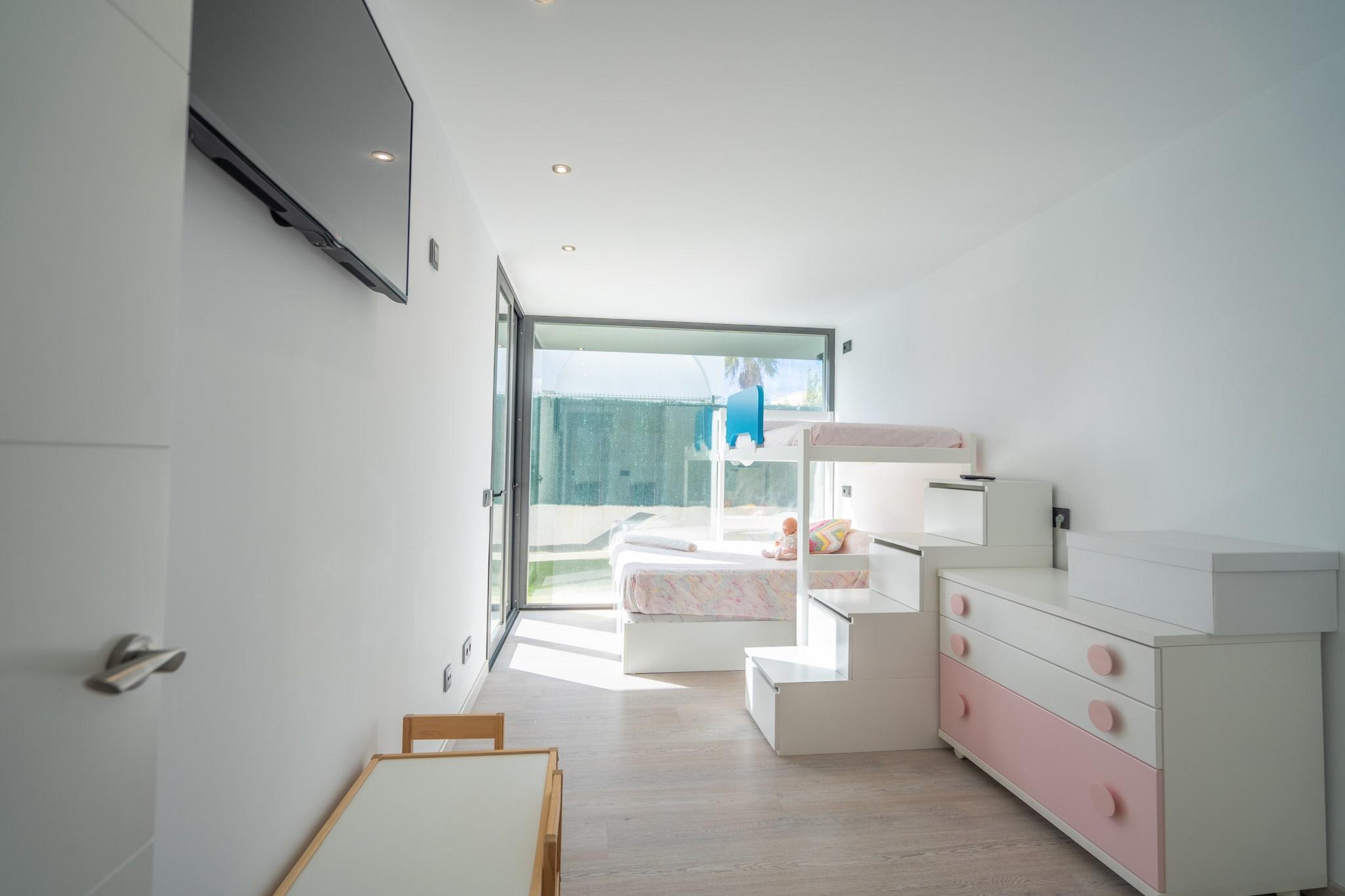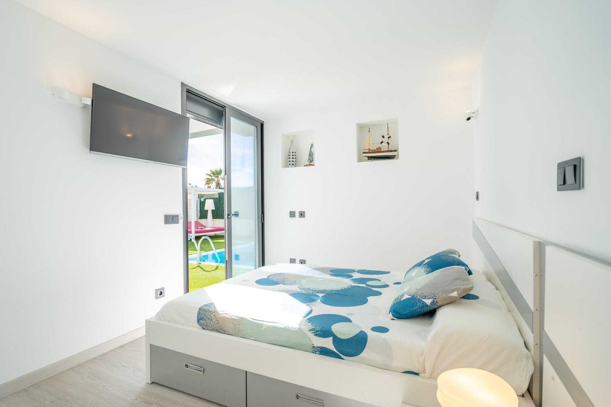 Experience the luxury and charm of Chalet Rubi de la Torre, an exclusive property managed by 5StarsHome, offering the perfect retreat for those seeking sophistication and comfort. This stunning chalet features 3 beautifully designed double rooms, each with a luxurious double bed. The first room cleverly incorporates a single bed above the double bed, resembling a bunk bed, providing a versatile solution for your stay. The master suite includes a double bed and an ensuite bathroom for added privacy, while the other two bathrooms are equipped with modern showers, ensuring comfort and convenience throughout your stay. Step into the heart of this chalet, where modern, minimalist design meets functionality. The spacious, fully-equipped kitchen allows you to prepare meals with ease, while the large windows throughout the home open directly to the pool area, creating a seamless connection between the interior and the exterior. The covered terrace, adorned with artificial grass, offers a perfect spot to unwind on the Balinese bed, while the jacuzzi adds a touch of luxury to your experience. For families, the children's play area ensures the little ones will have plenty of entertainment. Located just minutes from the beautiful beaches of Can Picafort and Muro, this chalet offers the ideal base for exploring Mallorca's stunning coastline. Can Picafort boasts a lively atmosphere with a variety of restaurants and shops, while Muro Beach offers a peaceful, tranquil setting with its vast stretches of white sand and crystal-clear waters. The rental license number is VT/1479