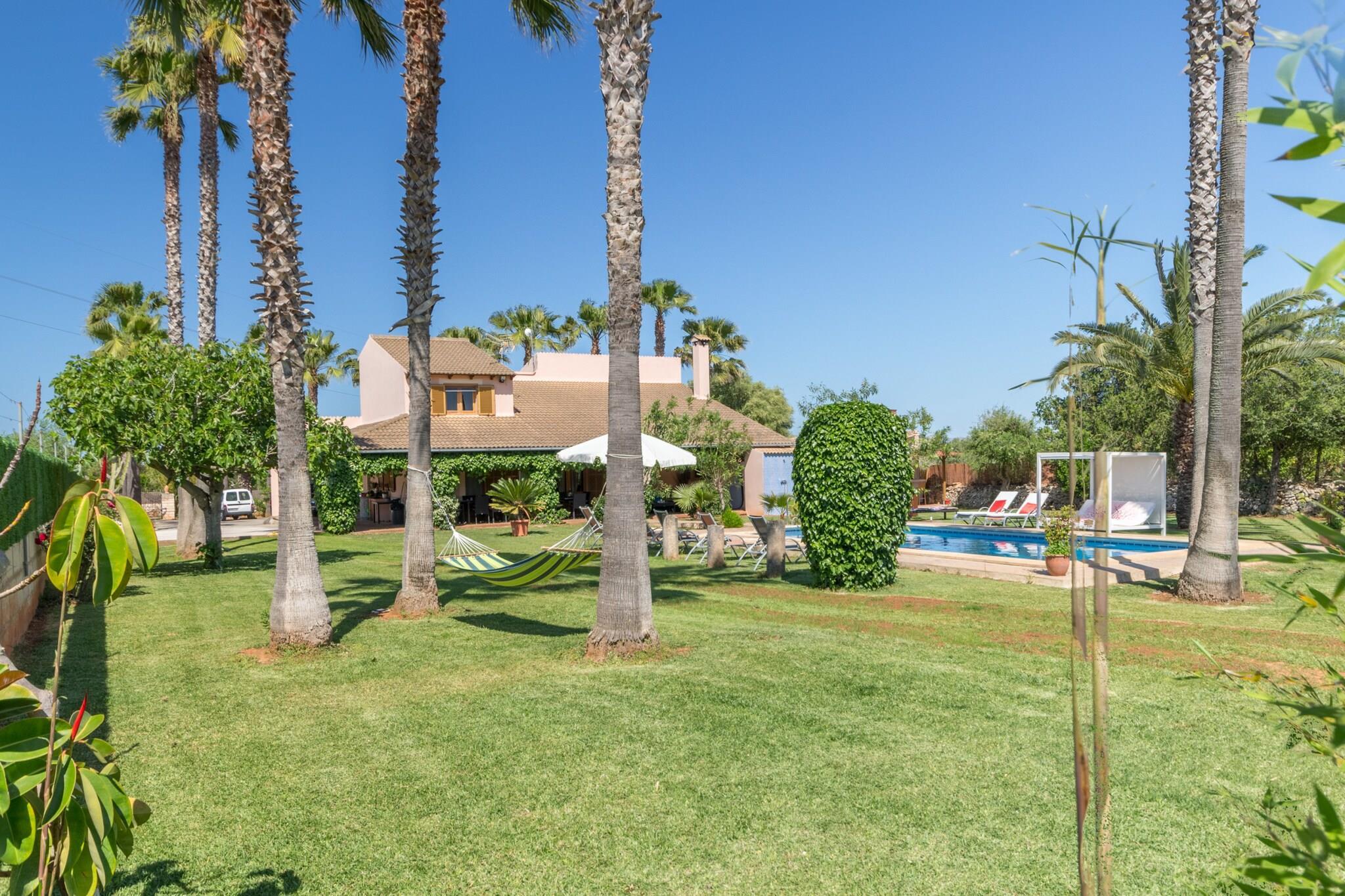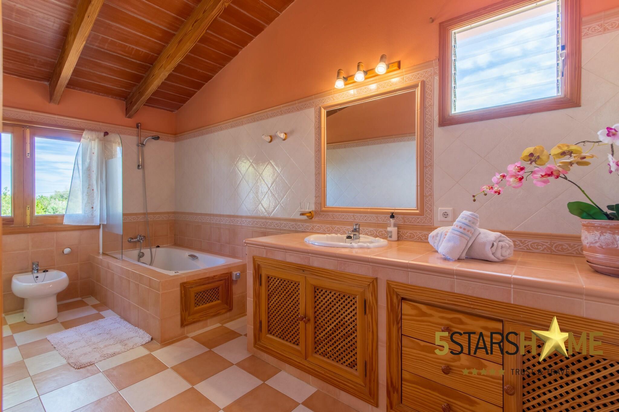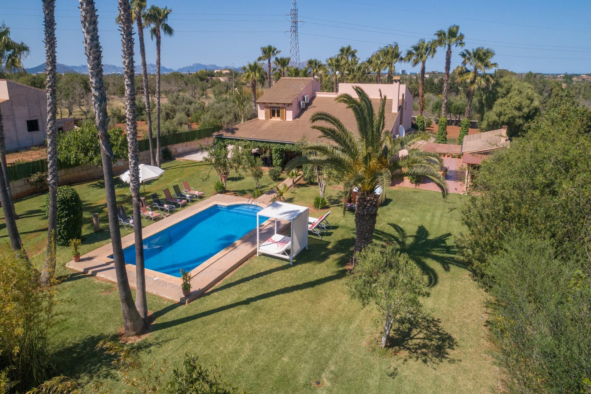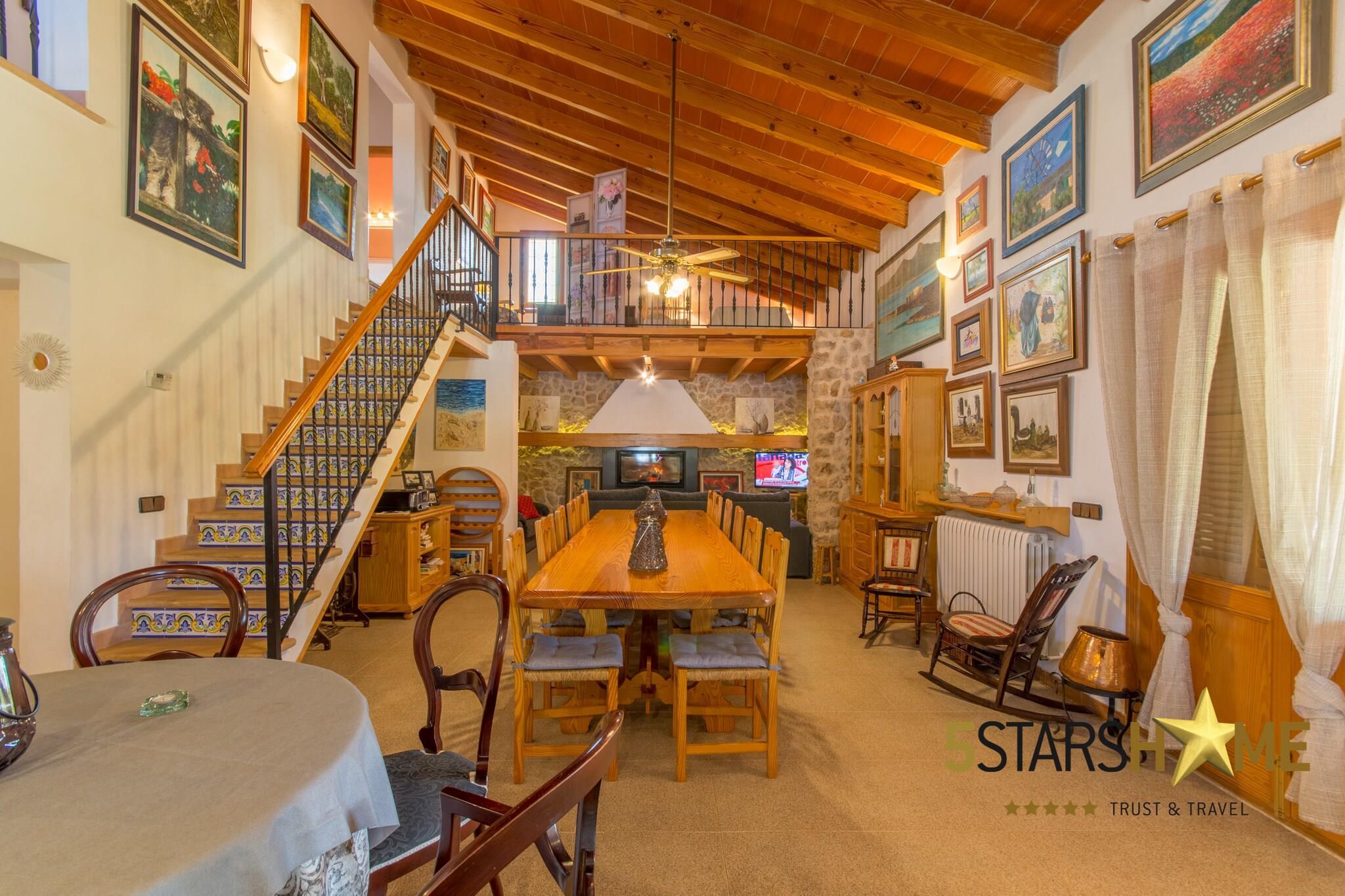 This charming holiday house Can Pedro de Duri, located just 5 km from the sandy beach of Can Picafort, offers the perfect combination of rural tranquility and easy access to the coast. Accommodating up to 8 guests, the house features 4 spacious double bedrooms and 3 bathrooms, all equipped with air conditioning for a comfortable stay. The cozy living area, complete with a fireplace, invites you to unwind, while the open kitchen provides a practical space for preparing meals. Free WiFi is available throughout the property, ensuring you stay connected during your visit. The property’s 3,700 m² fenced garden is a true outdoor paradise, featuring a large pool (11m x 4.5m) with entry stairs and safety railings, perfect for families with children or elderly guests. The garden also boasts a new whirlpool, a private tennis court, and a table tennis setup for fun and entertainment. The barbecue house is ideal for hosting garden parties, with a kitchen, dining table, and large fridge for storing drinks and snacks. Inside, the house exudes a unique charm, with walls adorned by self-painted pictures and traditional artworks, including contributions from renowned local artist Josep Coll Bardolet. The upper floor is dedicated to the sleeping quarters, with 4 double bedrooms, all featuring spacious fitted wardrobes and air conditioning. Baby cots and high chairs are available for younger guests, ensuring comfort for the whole family. The rental license number is ETV/1610
