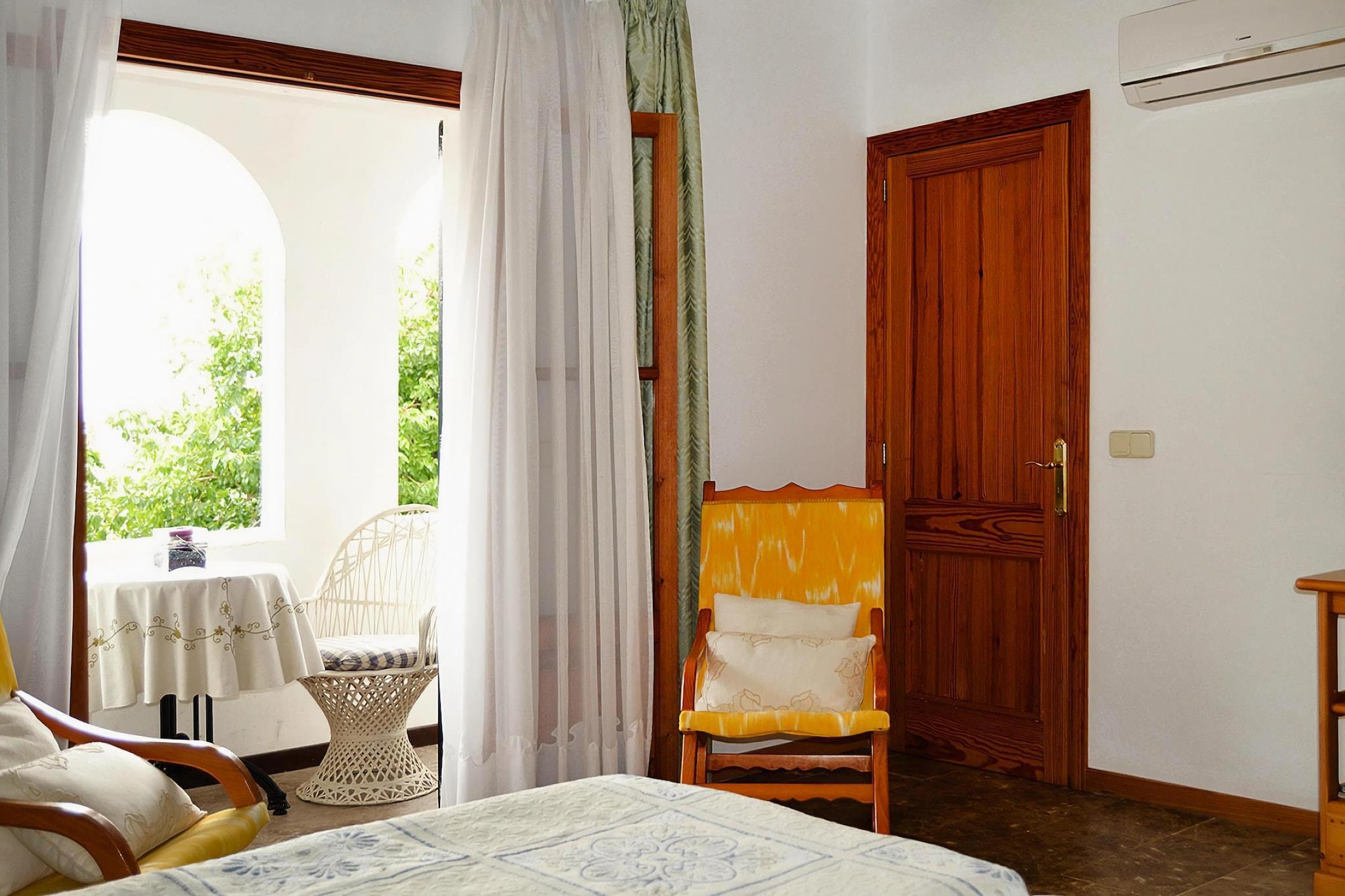 The finca, which is lovingly run by the landlords, is quiet and very beautiful on a hill. 5 homes and a residential building with studios and apartments are harmoniously in the lush vegetation of the vast garden / inner area. Enjoy privacy on your own terrace for your home with a good glass of wine produced by the landlords, or relax in one of the two shared outdoor swimming pools. In the south you have a beautiful panoramic view of Santa Margalida and the surrounding area. The beautiful landscape of the municipality of Muro extends in the north. Let your gaze stray to the sea. There are numerous excursions in the area. For example, Alcúdia can be reached in about 30 minutes by car. The old town with its pedestrian area is ideal for a relaxing walk. Laundry service available upon request, charges may apply. Please consult conditions.