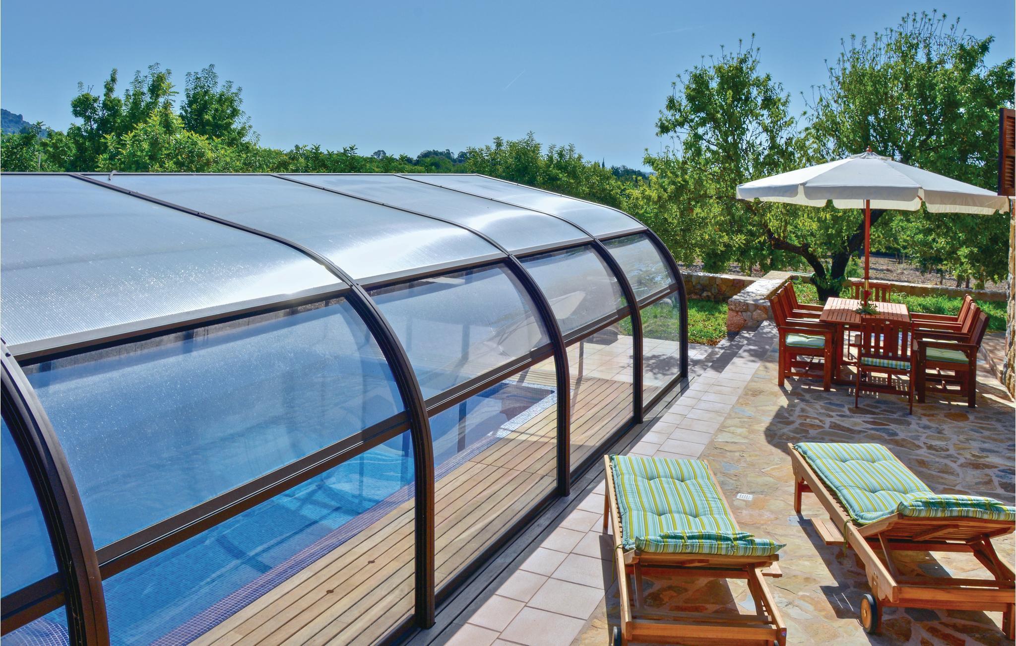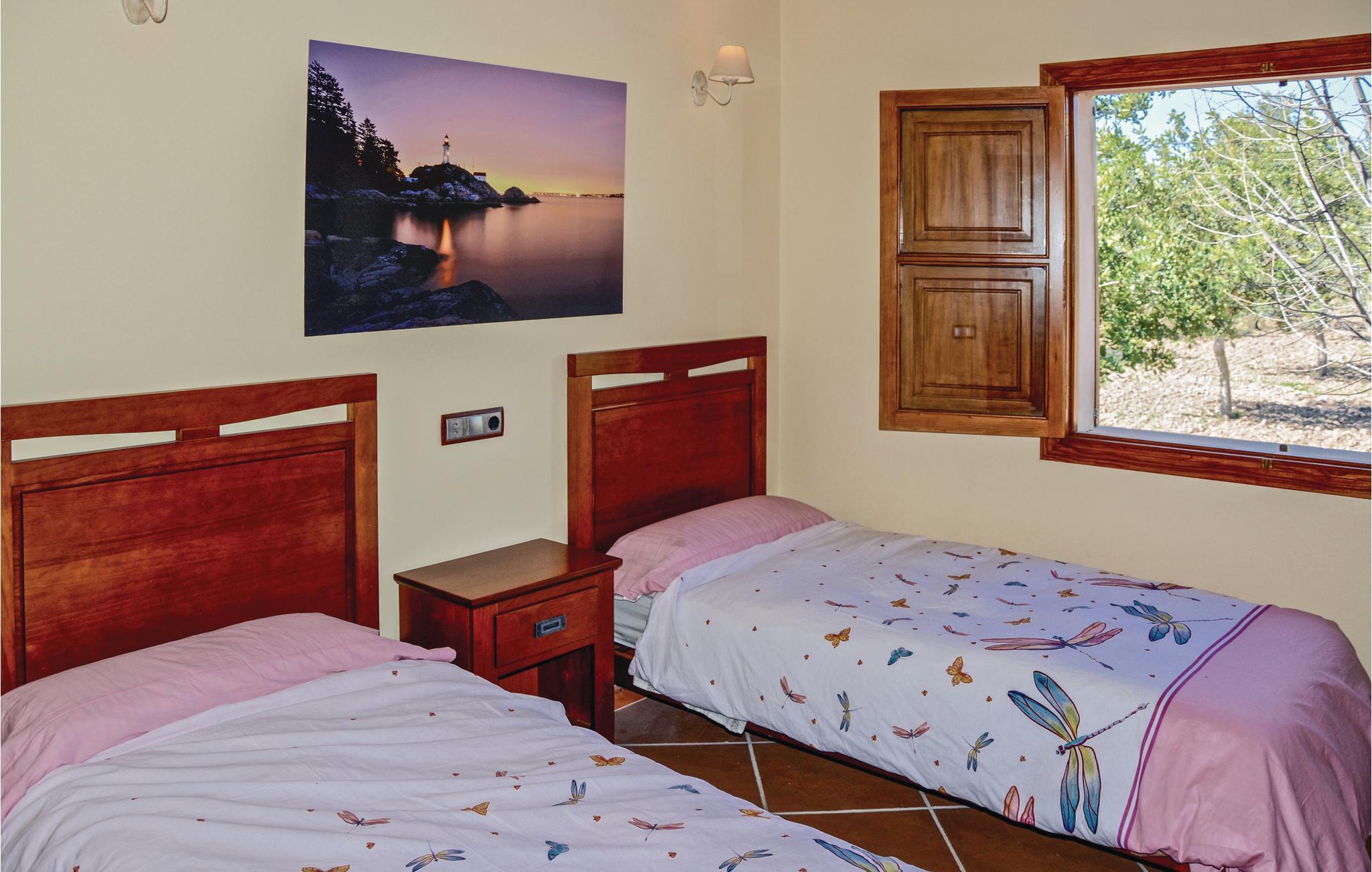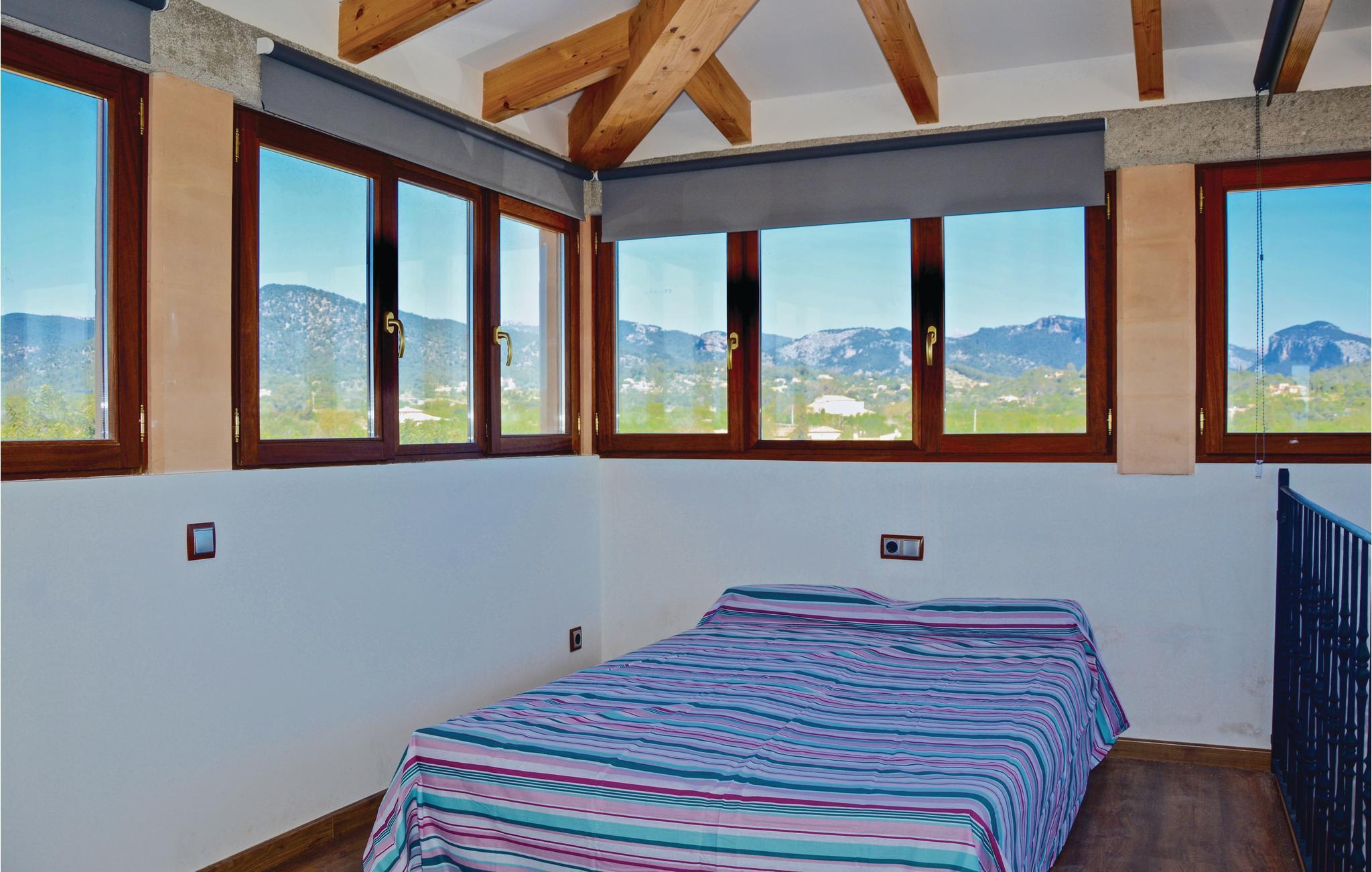 Hier erwartet Sie ein perfekter Finca-Urlaub in einem geschmackvoll eingerichteten Haus inmitten von Orangen- und Johannisbrot-Plantagen. Ein fantastisches Landhaus mit schöner Weitsicht und einem edlen Swimmingpool mit integriertem Jacuzzi (auf Anfrage gegen Aufpreis beheizbar). Das Hauptschlafzimmer befindet sich in der 1. Etage und bietet mit seiner 360 Grad Verglasung die allerbeste Aussicht über die zauberhafte Landschaft. Mit dem Treppenaufgang zu dieser Turmetage gehen Sie durch ein Durchgangsschlafzimmer mit Schlafsofa SZ4. Dieses eignet sich wahlweise für mitreisende Kinder oder als privater Salon. Gruppen (ausgenommen Familien und Pärchen ü30) auf Anfrage und mit Spezialkaution. Lizenznummer: 9881