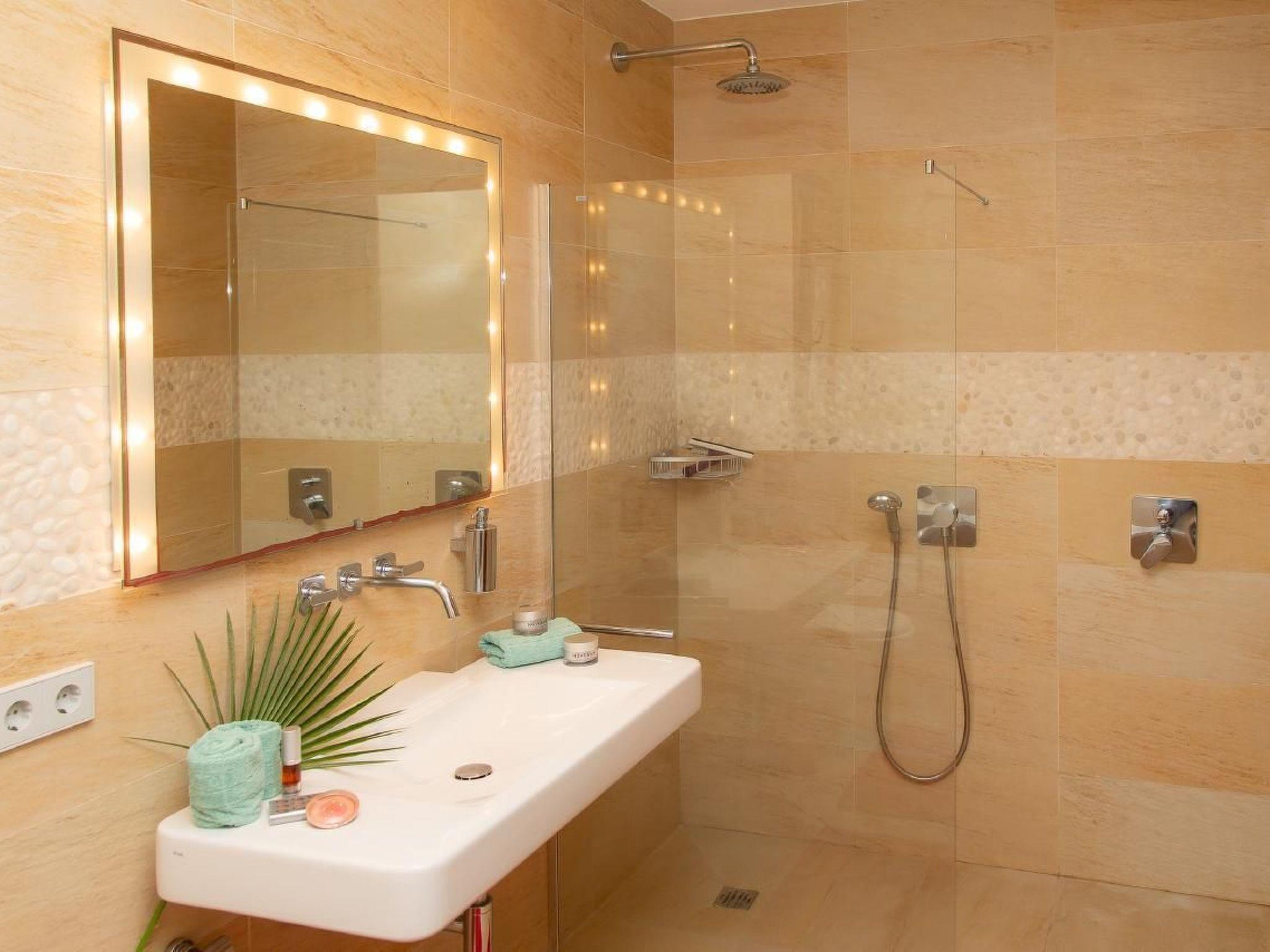 Inside the villa, you are greeted with a modern and spacious layout. The living room, dining room and kitchen flow together in an open, spacious room equipped with contemporary technology - including the fastest fibre optic internet - and high-quality kitchen equipment with induction hob, two fridges with freezer unit and much more. Each of the bedrooms has an adjoining en-suite bathroom with amenities ranging from a large shower to a bathtub, ensuring personal comfort and privacy.