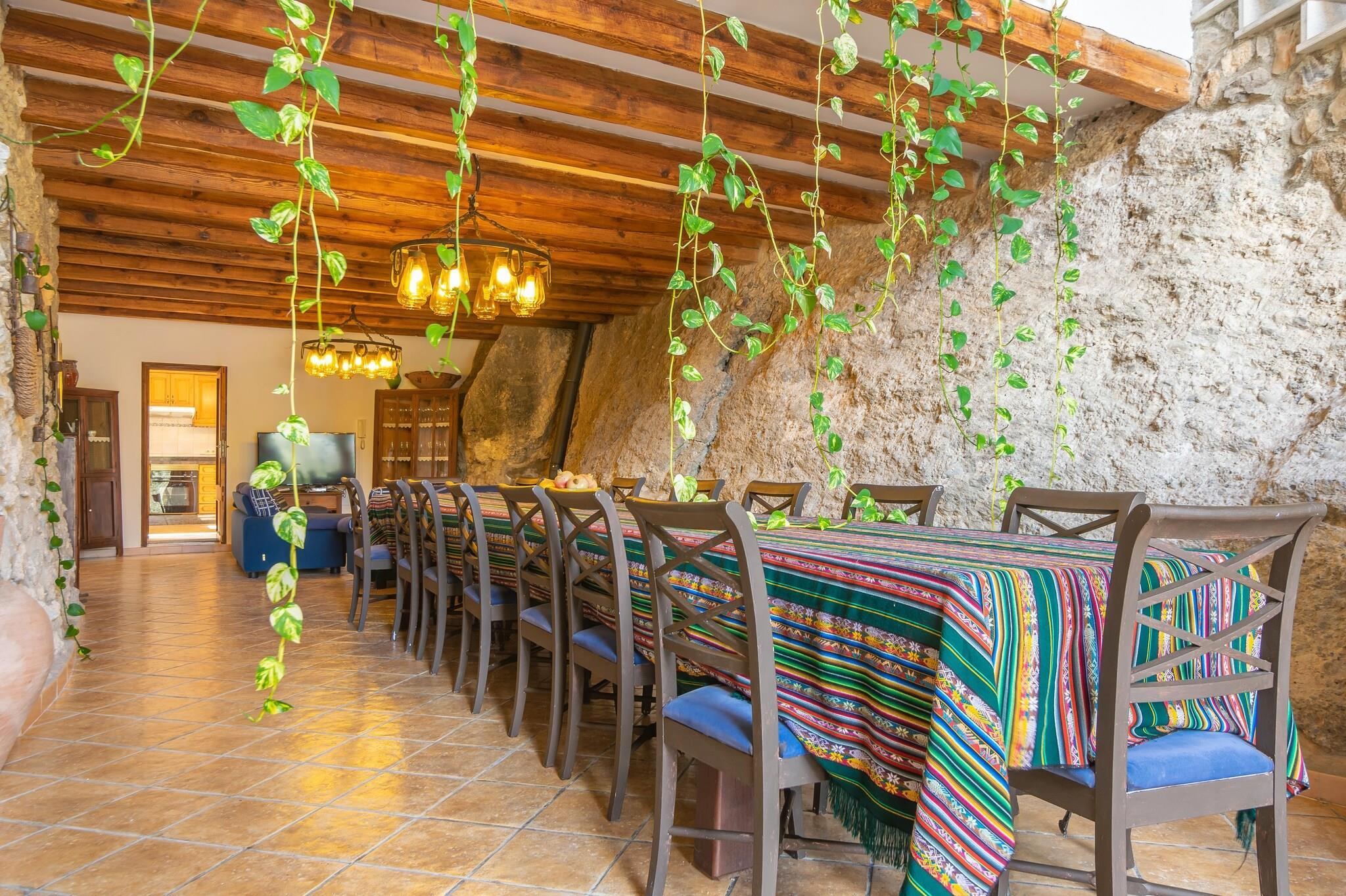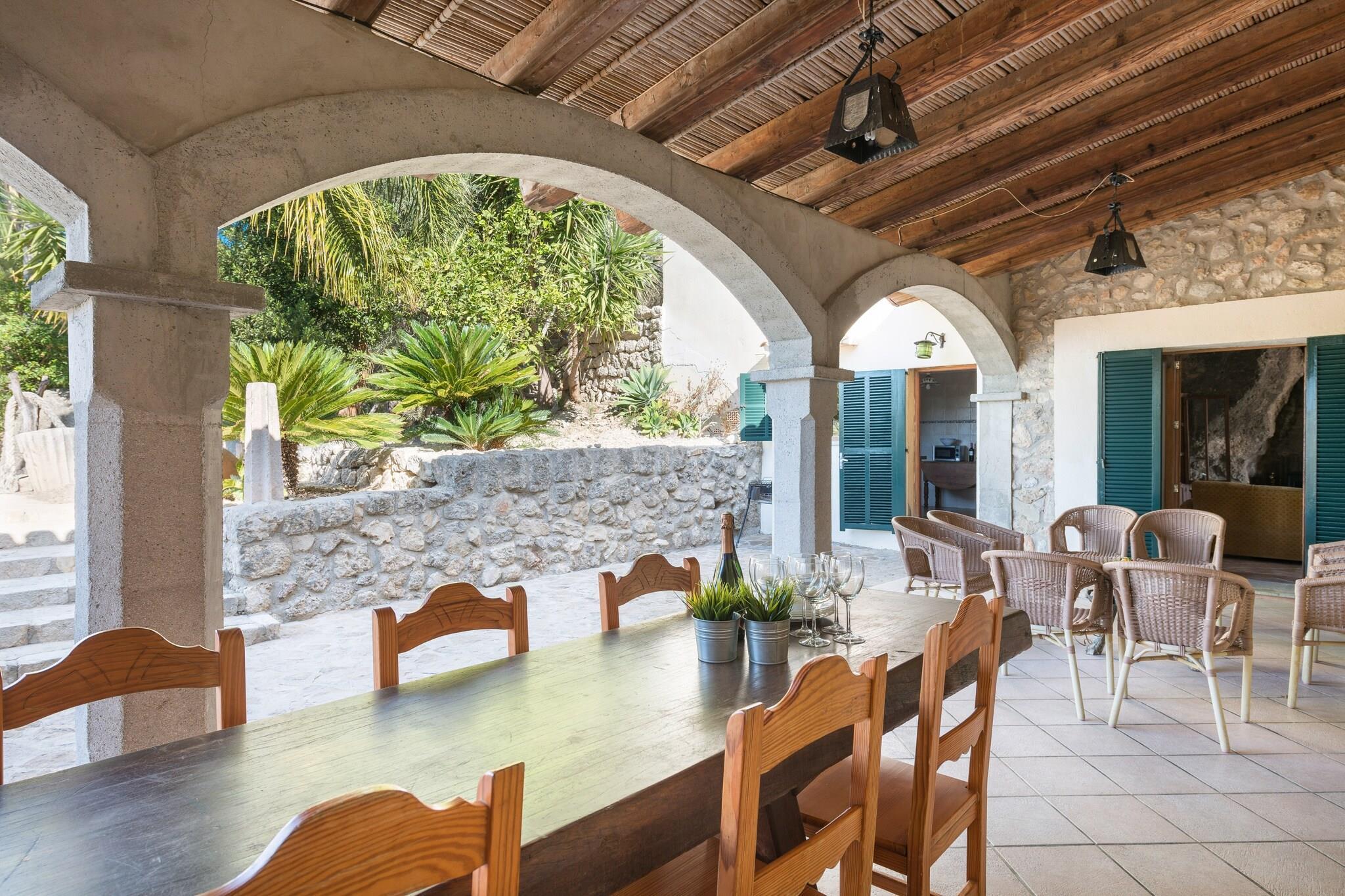 This beautiful finca, located on a rural and forest environment, is a magic place. All corners invite to admire the privileged landscape and feel the peace, specially the area of the pool where you will be able to bask in the sun on the 12 sunloungers and enjoy a nice dip. The private chlorine pool sizes 18 x 7 metres and and the water depth ranges from 0.6 to 1.7 metres. The impressive table is the best place to enjoy your meals alfresco. The property is fenced and it offers total privacy. The house has 2 floors. Preserving some walls of pure rock and stone, it welcomes you with a large foyer and a room in the purest Mallorcan style. Next, you enter the living-dining room where you can relax watching TV or enjoying those delicious meals prepared in the ceramic hob kitchen. On colder days, you will find a basket of firewood for the stove in the living room and an oil radiator, courtesy of the house. This floor is completed with 1 bathroom with bathtub and 2 bedrooms with double beds. Going up the stairs, you have another room ideal for entertainment, as it has 2 pool tables and 1 foosball table. Then you access 1 more bathroom with a hydromassage bathtub, as well as 4 more bedrooms with double beds, all with en-suite bathrooms with bathtub. All bedrooms have a wardrobe and air conditioning. There is 1 crib and 1 high chair available. The laundry room offers a washing machine, iron, and ironing board. The house is located in a privileged spot, amid beautiful fields and mountains, but still near the village, just 850 metres away. Selva is a lovely town at the foot of the Tramuntana mountain range with the basic services like supermarkets, bars and restaurants. The best starting point for hikers and bikers. The nearest beach is the one in Puerto de Alcúdia about 25.9 km away. Consult the advertiser for possible charges. Pets are not allowed. The holding of events is forbidden. There is exterior parking for 4 cars. Distances Beach: 25.9 km - Puerto de Alcúdia Airport: 42.1 km - Son Sant Joan Golf course: 31.6 km - Golf d'Alcanada Town: 0.85 km - Selva Train station: 5.5 km - Inca Bus stop: 2 km - Selva Ferry: 29.7 km - Puerto de Alcúdia Hospital: 4.6 km - Hospital Comarcal d'Inca Tourist license: ETV/4072Single Rental Registry: ESFCTU00000702200008738900000000000000000000ETV/40721There's a mandatory tourist tax in Balearic Islands, called Ecotasa. All guests, except people under 16 years, have to pay this tax. The amount varies between 0.55EURO/night and guest during the low season and 2.2EURO/night and guest during the high season .The tax is reduced by half from the 9th day for your stay. Electricity (January - December): 0.30 EUR/KW (mandatory)