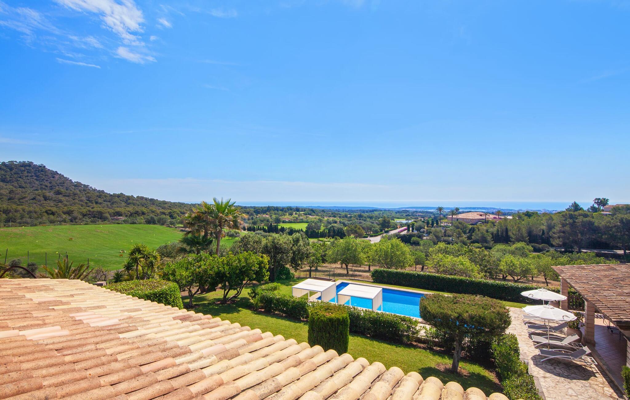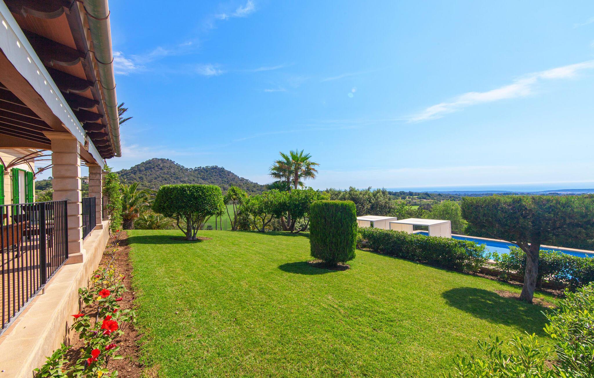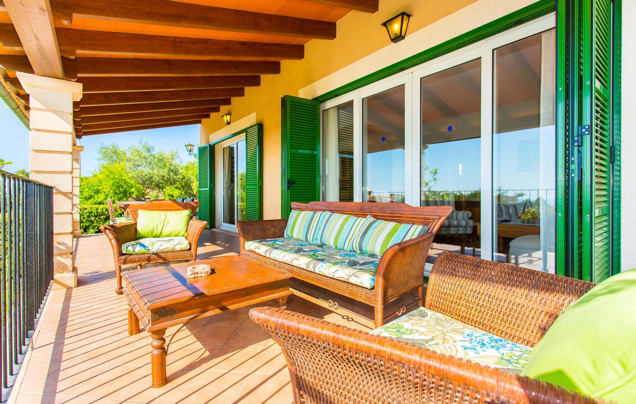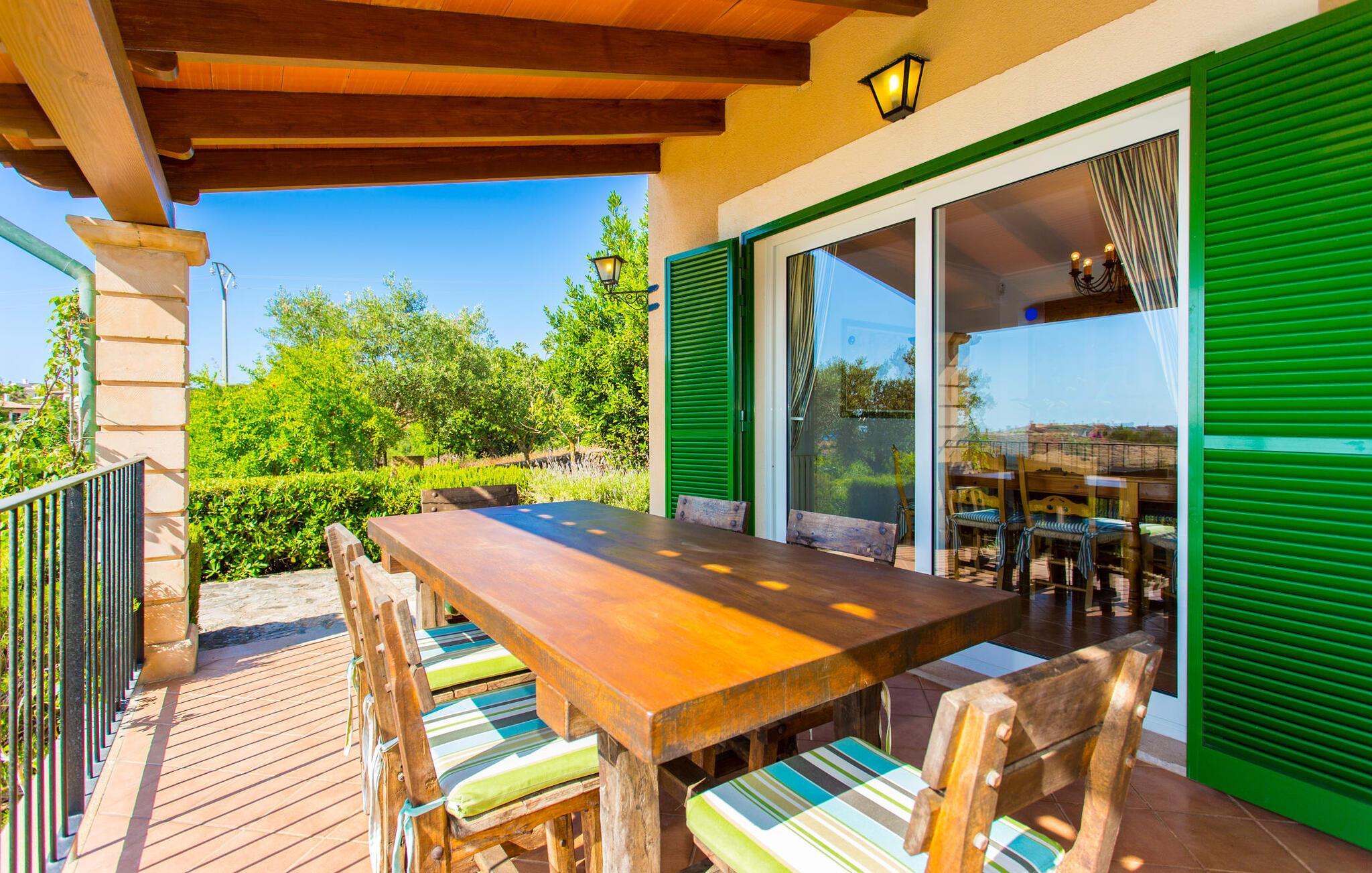 Dank der Höhenlage über der umliegenden Landschaft bietet die Villa „Ses Mamellas“ einen herrlichen Panoramablick auf das Meer, den Sie von der breiten Veranda vor dem Haus mit einem kühlen Getränk in der Hand genießen können. Mit bequemen Gartenmöbeln und viel Schatten ist es ein großartiger Ort zum Sitzen und Entspannen oder für gemeinsame Mahlzeiten. In der Nähe des Pools gibt es eine weitere überdachte Terrasse mit einer Außenküche, einem Grill und einem Essbereich, der sich perfekt für lebhafte Abende am Grill eignet. Dieser überdachte Bereich verfügt auch über eine Tischtennisplatte, wenn Sie Lust haben, außerhalb des Pools Sport zu treiben. Von hier und von den bequemen Liegestühlen am Pool aus hat man einen atemberaubenden Blick bis hin zum Meer. Das weitläufige und abgeschiedene Anwesen umfasst einen liebevoll gepflegten Garten mit Palmen und Blumen aller Art, der Naturliebhabern Freude bereitet. Sie können Autos auf der Einfahrt parken, die an sonnigen Tagen viel Schatten spendet.