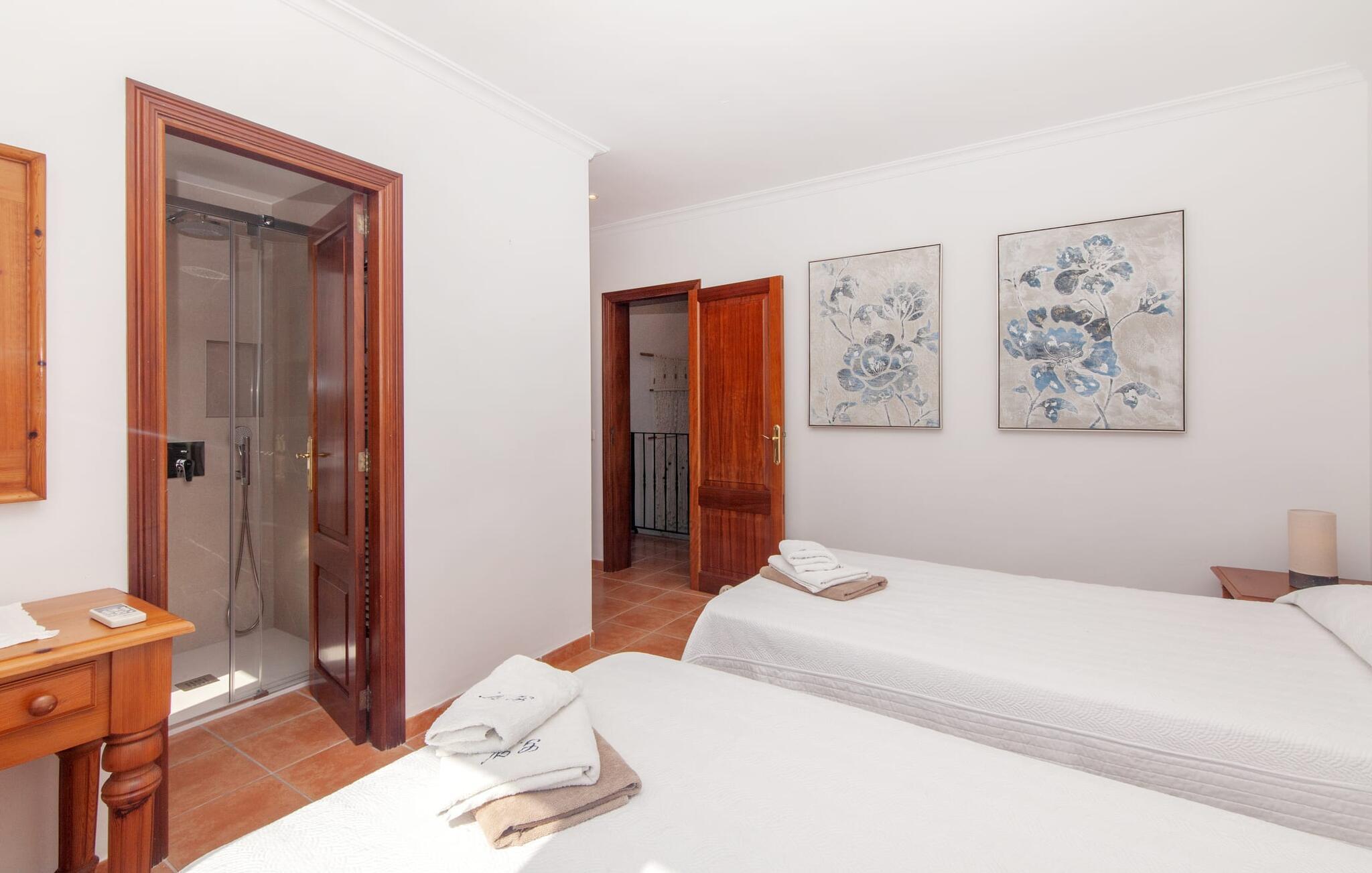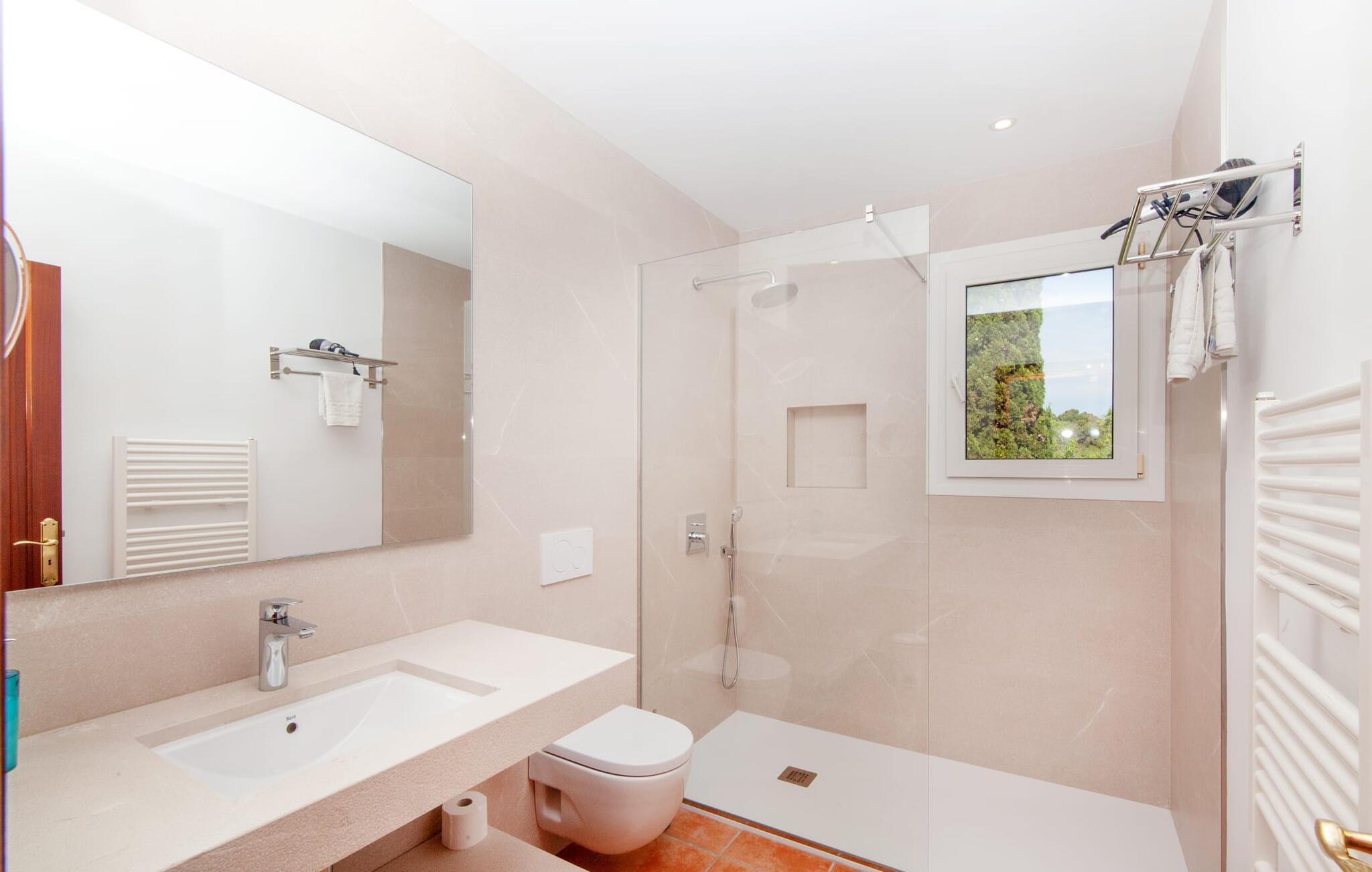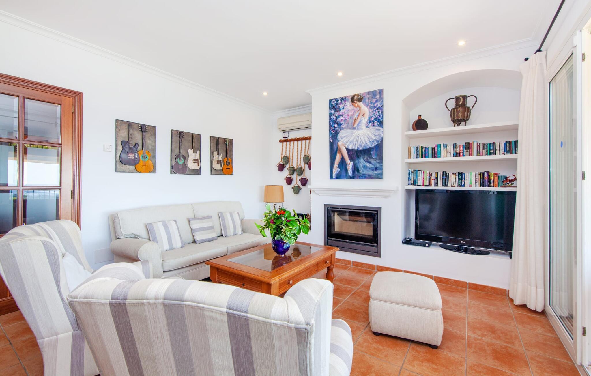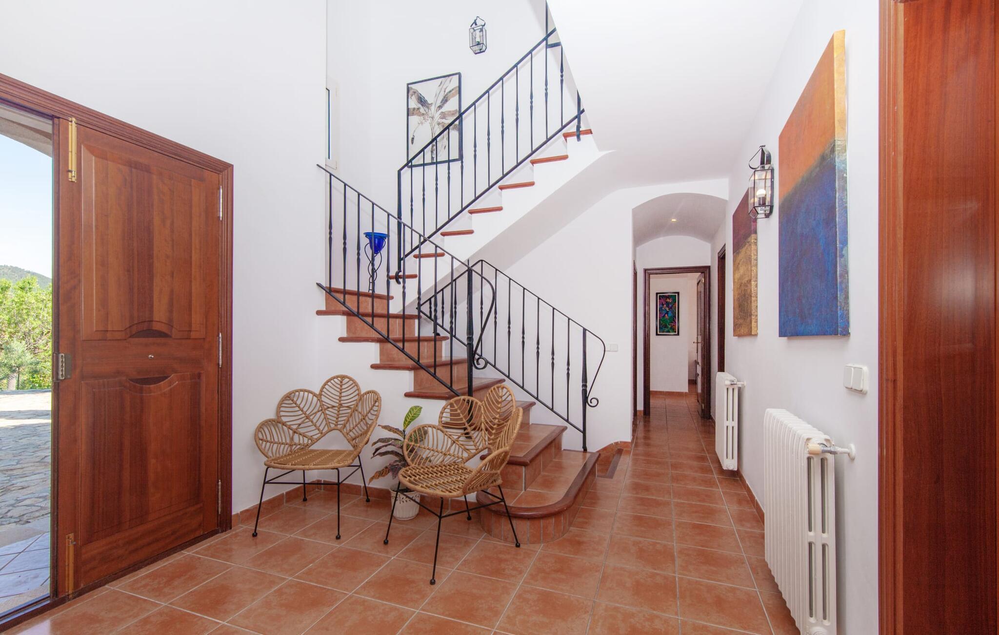 Dank der Höhenlage über der umliegenden Landschaft bietet die Villa „Ses Mamellas“ einen herrlichen Panoramablick auf das Meer, den Sie von der breiten Veranda vor dem Haus mit einem kühlen Getränk in der Hand genießen können. Mit bequemen Gartenmöbeln und viel Schatten ist es ein großartiger Ort zum Sitzen und Entspannen oder für gemeinsame Mahlzeiten. In der Nähe des Pools gibt es eine weitere überdachte Terrasse mit einer Außenküche, einem Grill und einem Essbereich, der sich perfekt für lebhafte Abende am Grill eignet. Dieser überdachte Bereich verfügt auch über eine Tischtennisplatte, wenn Sie Lust haben, außerhalb des Pools Sport zu treiben. Von hier und von den bequemen Liegestühlen am Pool aus hat man einen atemberaubenden Blick bis hin zum Meer. Das weitläufige und abgeschiedene Anwesen umfasst einen liebevoll gepflegten Garten mit Palmen und Blumen aller Art, der Naturliebhabern Freude bereitet. Sie können Autos auf der Einfahrt parken, die an sonnigen Tagen viel Schatten spendet.