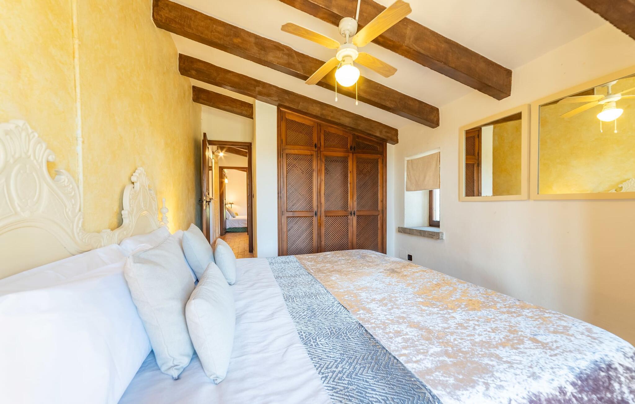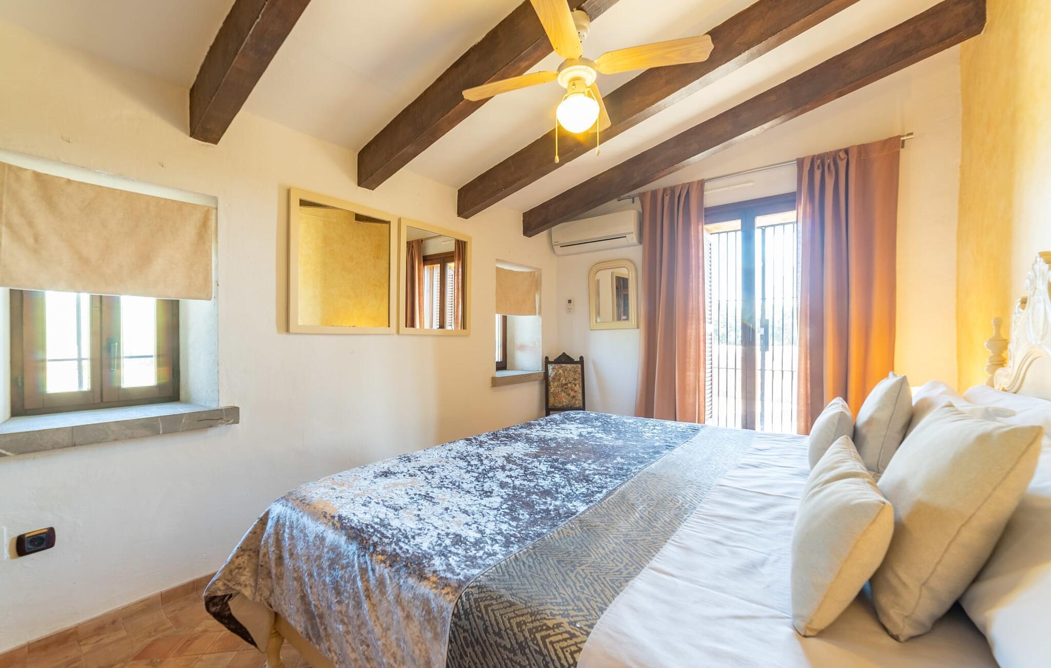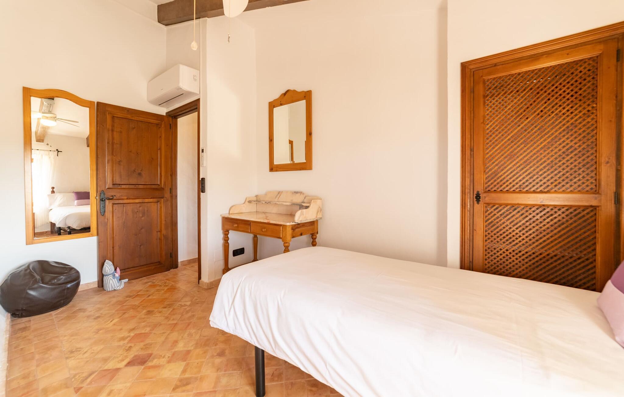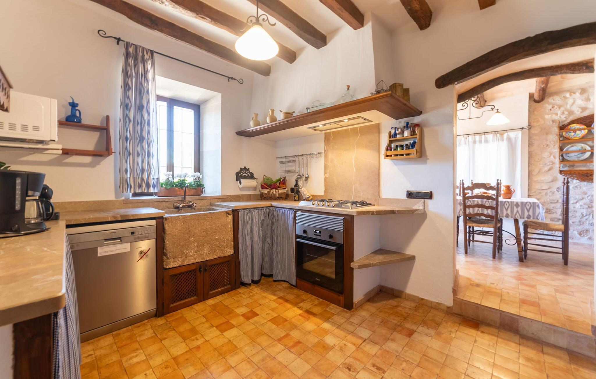 Schon beim Betreten des mallorquinischen Hauses herrscht eine sehr behagliche Atmosphäre und wer Authentizität und traditionellen Charme liebt, wird sofort begeistert sein. Viel Naturstein, dicke Wände, klassische Sichtbalkendecken und spanische Dekorationen tragen zu diesem individuellen Flair bei, in dem Sie sich schnell wie zu Hause fühlen werden. Sie können noch immer die jahrhundertealte Mühle und den ehemaligen Futtertrog sehen! Im Erdgeschoss befinden sich ein Schlafzimmer und zwei Badezimmer (eines davon en-suite) sowie ein elegantes Esszimmer, in dem Sie drinnen umgeben von Natursteinmauern speisen können. In der originalen, alten Küche finden Sie einen angenehmen Platz am Kamin – hier können Sie einen romantischen Abend zusammensitzen und in die knisternden Flammen blicken. In der anderen Küche können Sie Ihre Mahlzeiten zubereiten und verfügen über eine komplette Ausstattung, sodass Sie sich problemlos weiter selbst versorgen können. Das Steinwaschbecken ist ein echter Hingucker! Direkt neben der beeindruckenden Getreidemühle befindet sich ein weiterer großer Esstisch, an dem jeder bequem Platz findet. In der obersten Etage befindet sich ein Wohnzimmer mit einem weiteren Kamin. Hier können Sie fernsehen, ein gutes Buch lesen oder sich gut unterhalten. Darüber hinaus befinden sich auf dieser Etage drei Schlafzimmer und ein drittes Badezimmer. Das Schlafzimmer bietet tolle Entspannungszonen im klassischen Design für die Nacht oder für eine Siesta; Insgesamt stehen Ihnen ein 1,50 x 1,90-Bett und vier 0,90 x 1,90-m-Betten zur Auswahl.