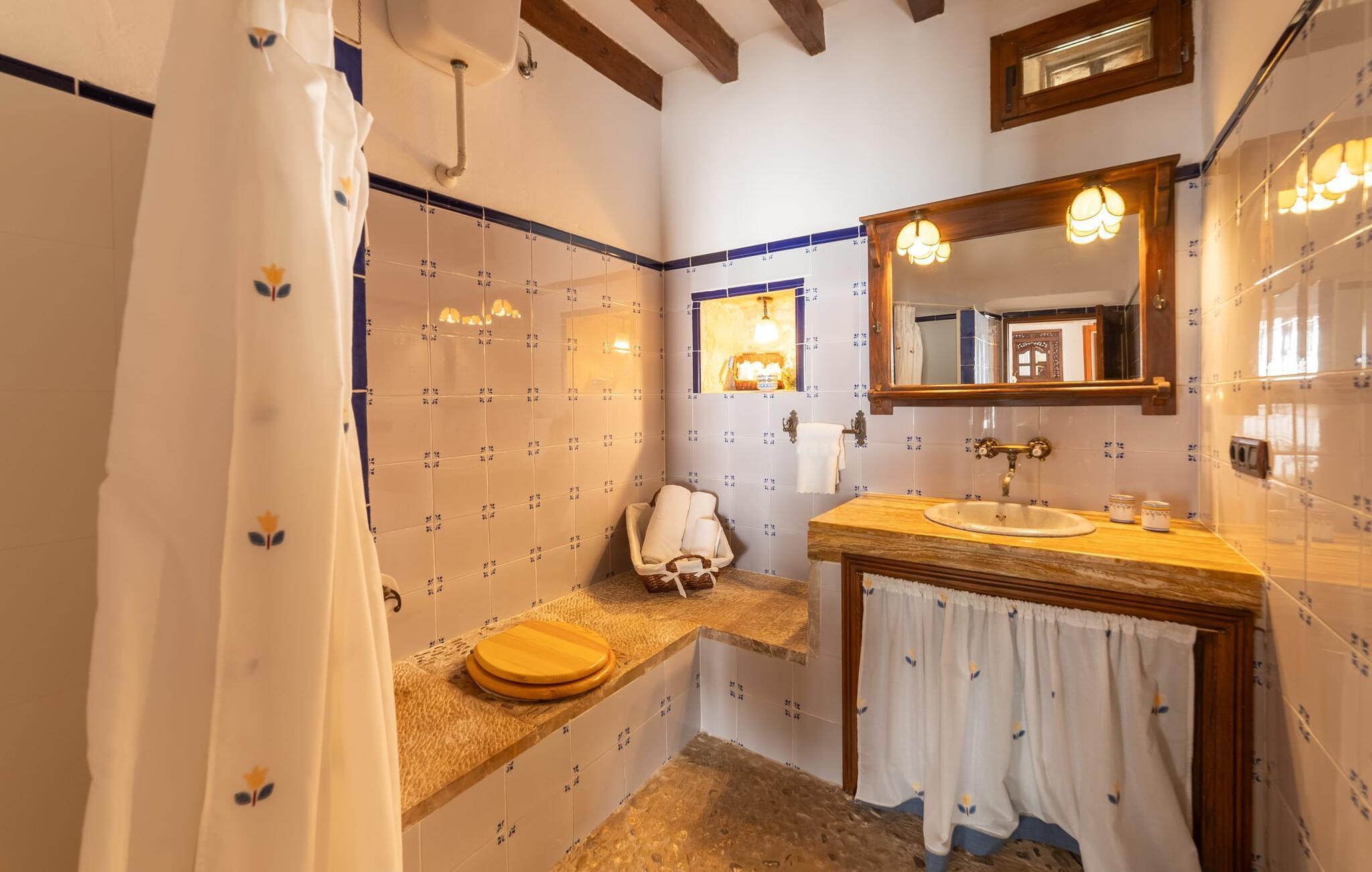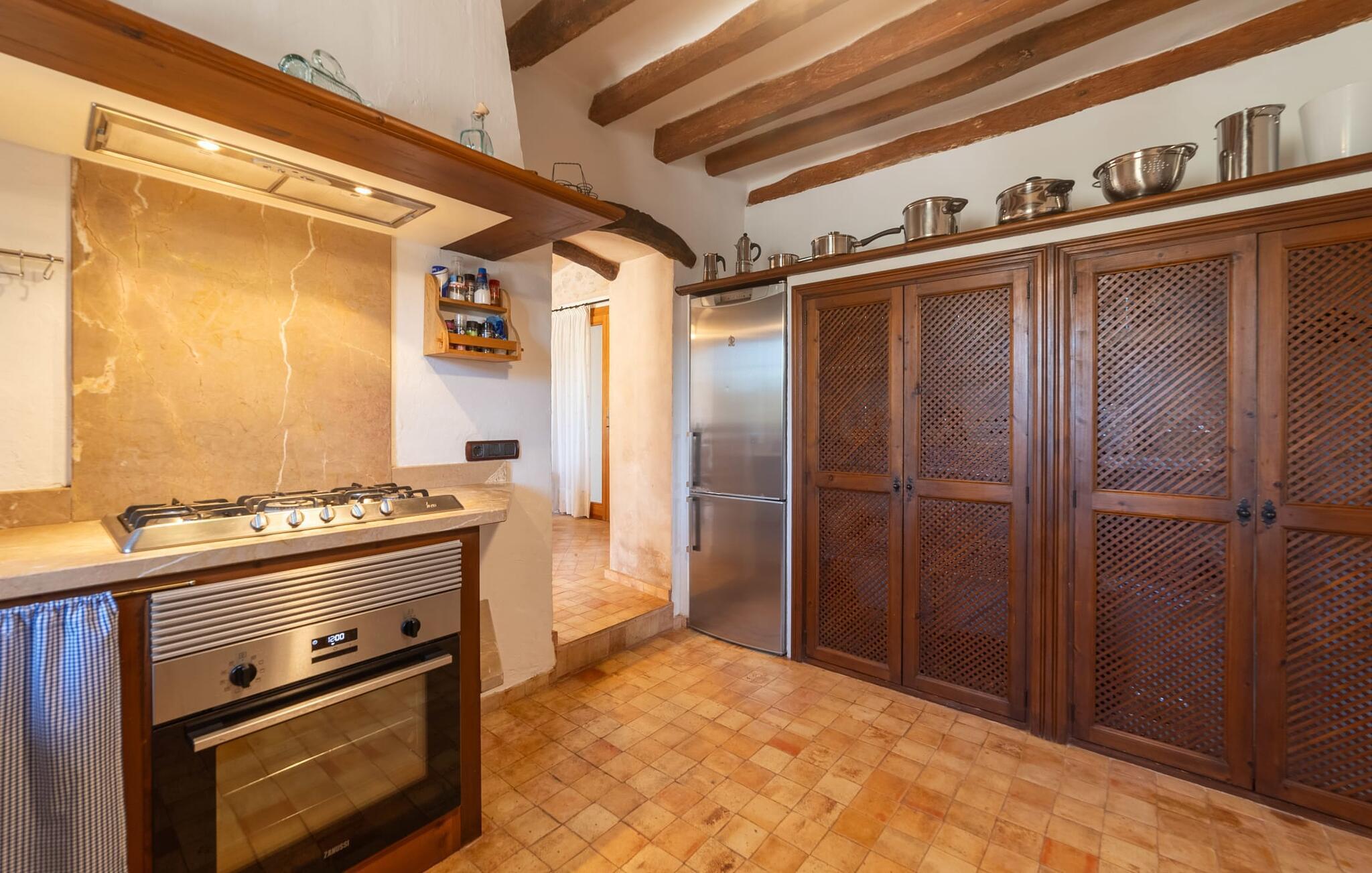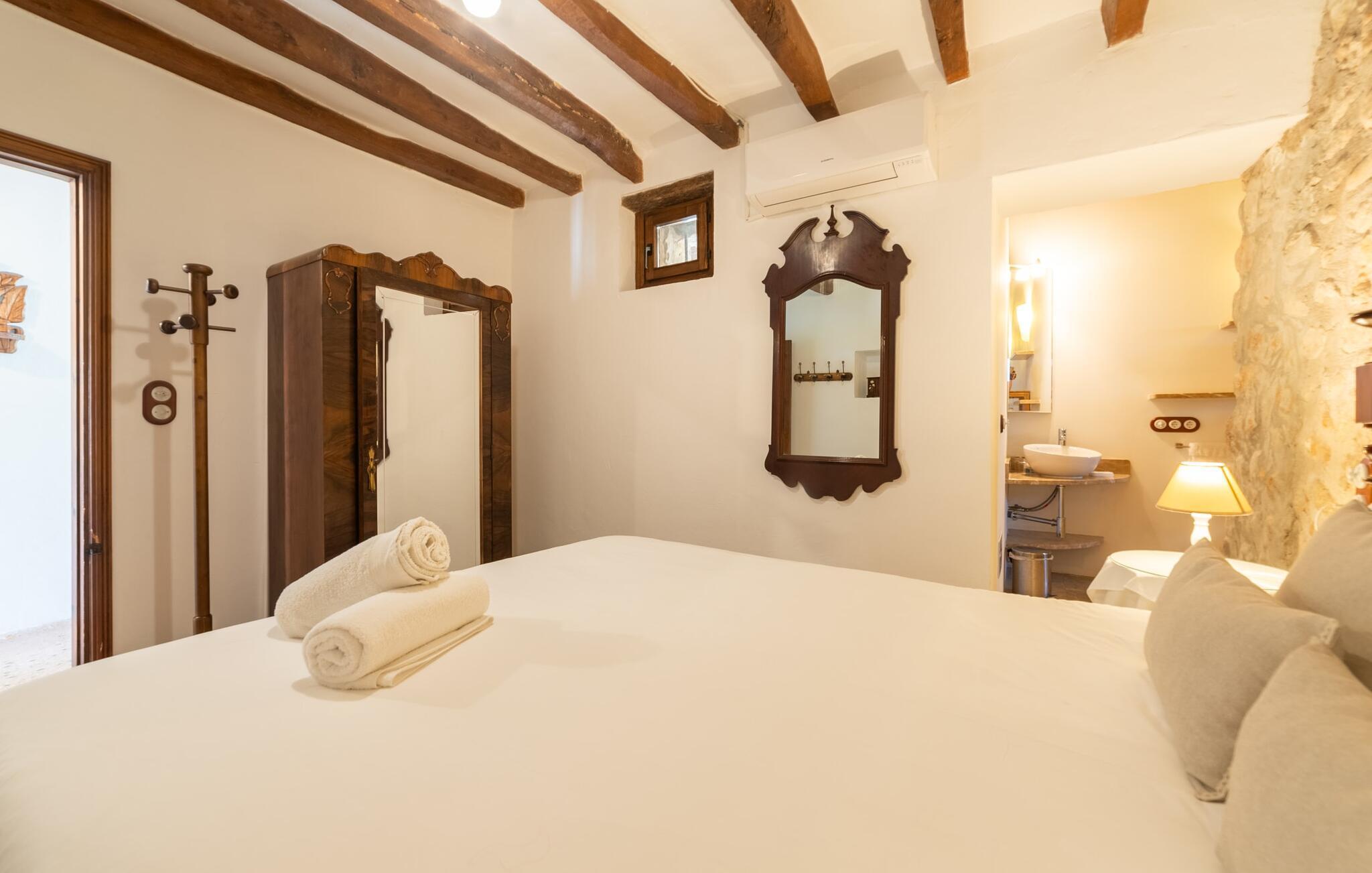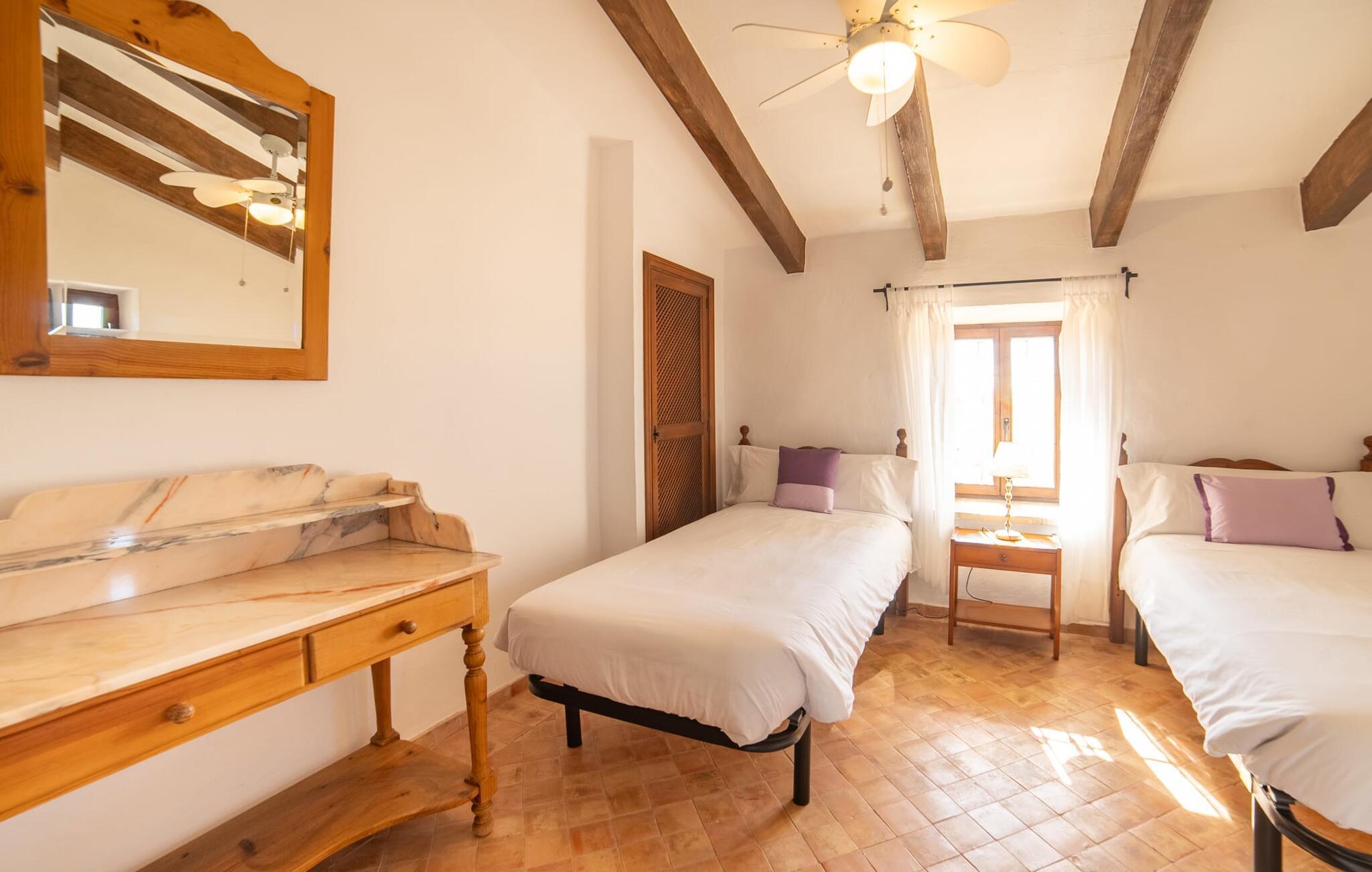 Schon beim Betreten des mallorquinischen Hauses herrscht eine sehr behagliche Atmosphäre und wer Authentizität und traditionellen Charme liebt, wird sofort begeistert sein. Viel Naturstein, dicke Wände, klassische Sichtbalkendecken und spanische Dekorationen tragen zu diesem individuellen Flair bei, in dem Sie sich schnell wie zu Hause fühlen werden. Sie können noch immer die jahrhundertealte Mühle und den ehemaligen Futtertrog sehen! Im Erdgeschoss befinden sich ein Schlafzimmer und zwei Badezimmer (eines davon en-suite) sowie ein elegantes Esszimmer, in dem Sie drinnen umgeben von Natursteinmauern speisen können. In der originalen, alten Küche finden Sie einen angenehmen Platz am Kamin – hier können Sie einen romantischen Abend zusammensitzen und in die knisternden Flammen blicken. In der anderen Küche können Sie Ihre Mahlzeiten zubereiten und verfügen über eine komplette Ausstattung, sodass Sie sich problemlos weiter selbst versorgen können. Das Steinwaschbecken ist ein echter Hingucker! Direkt neben der beeindruckenden Getreidemühle befindet sich ein weiterer großer Esstisch, an dem jeder bequem Platz findet. In der obersten Etage befindet sich ein Wohnzimmer mit einem weiteren Kamin. Hier können Sie fernsehen, ein gutes Buch lesen oder sich gut unterhalten. Darüber hinaus befinden sich auf dieser Etage drei Schlafzimmer und ein drittes Badezimmer. Das Schlafzimmer bietet tolle Entspannungszonen im klassischen Design für die Nacht oder für eine Siesta; Insgesamt stehen Ihnen ein 1,50 x 1,90-Bett und vier 0,90 x 1,90-m-Betten zur Auswahl.
