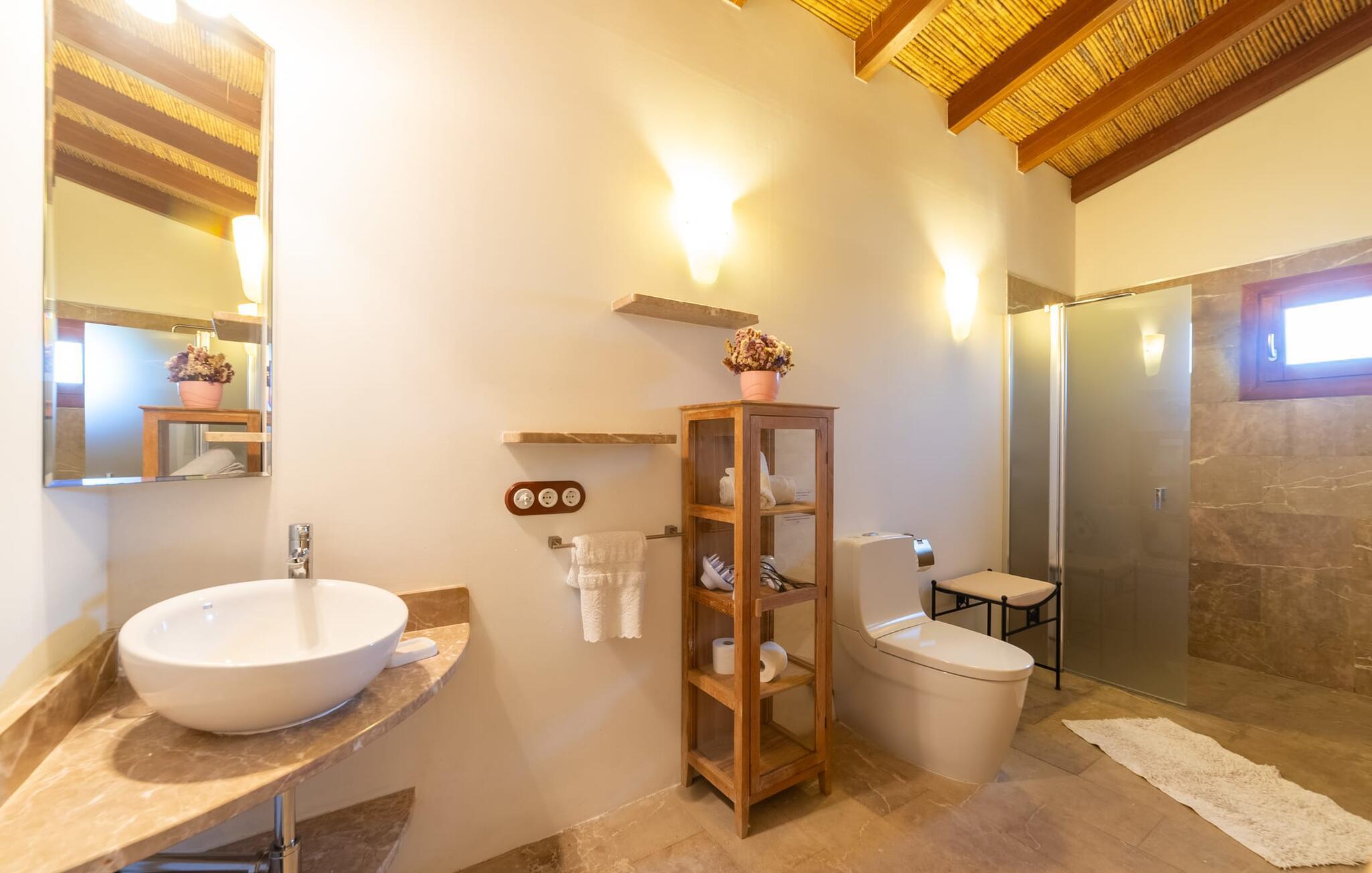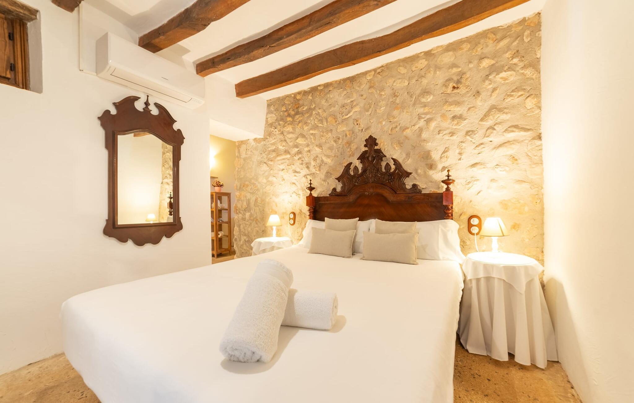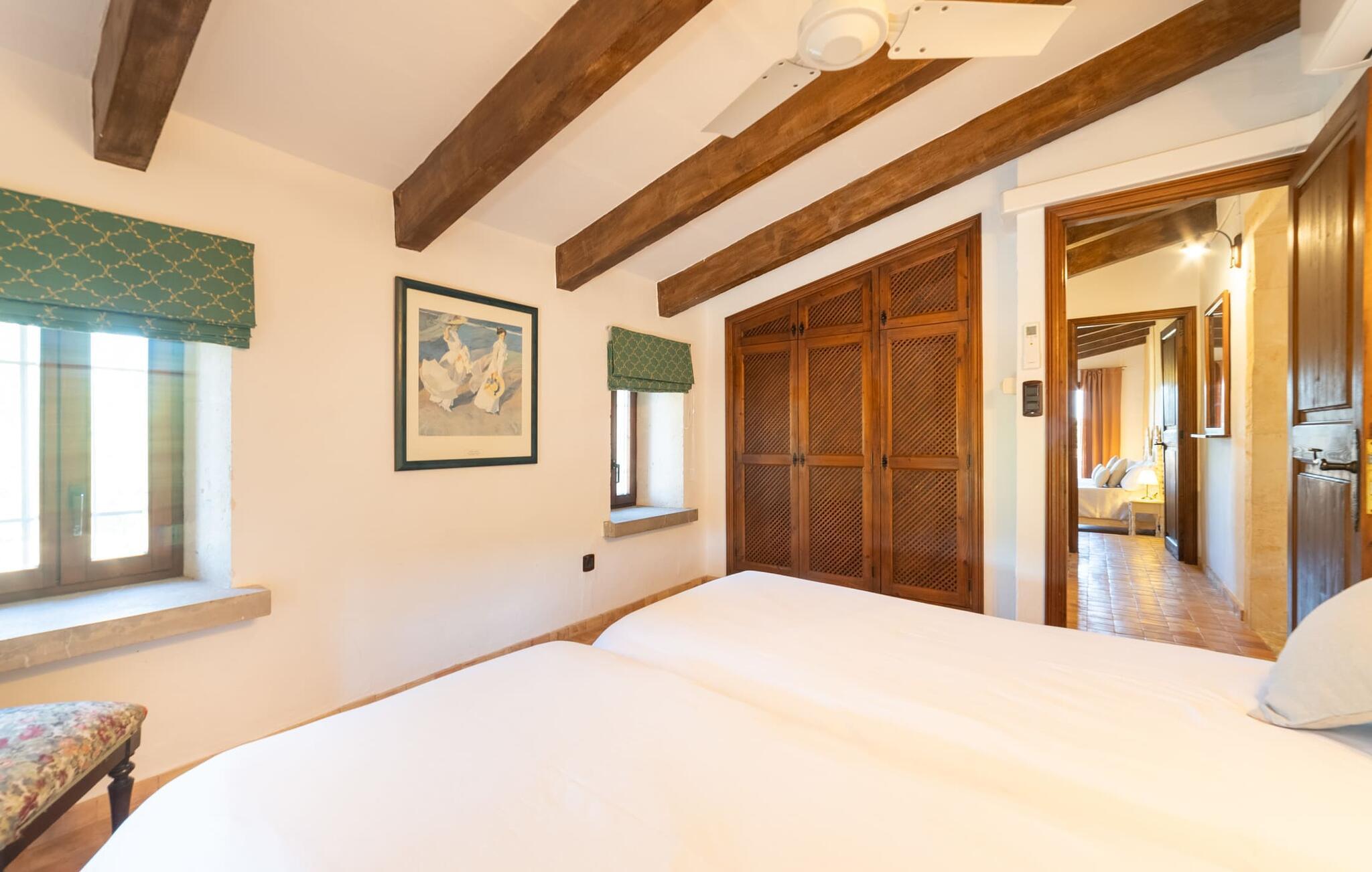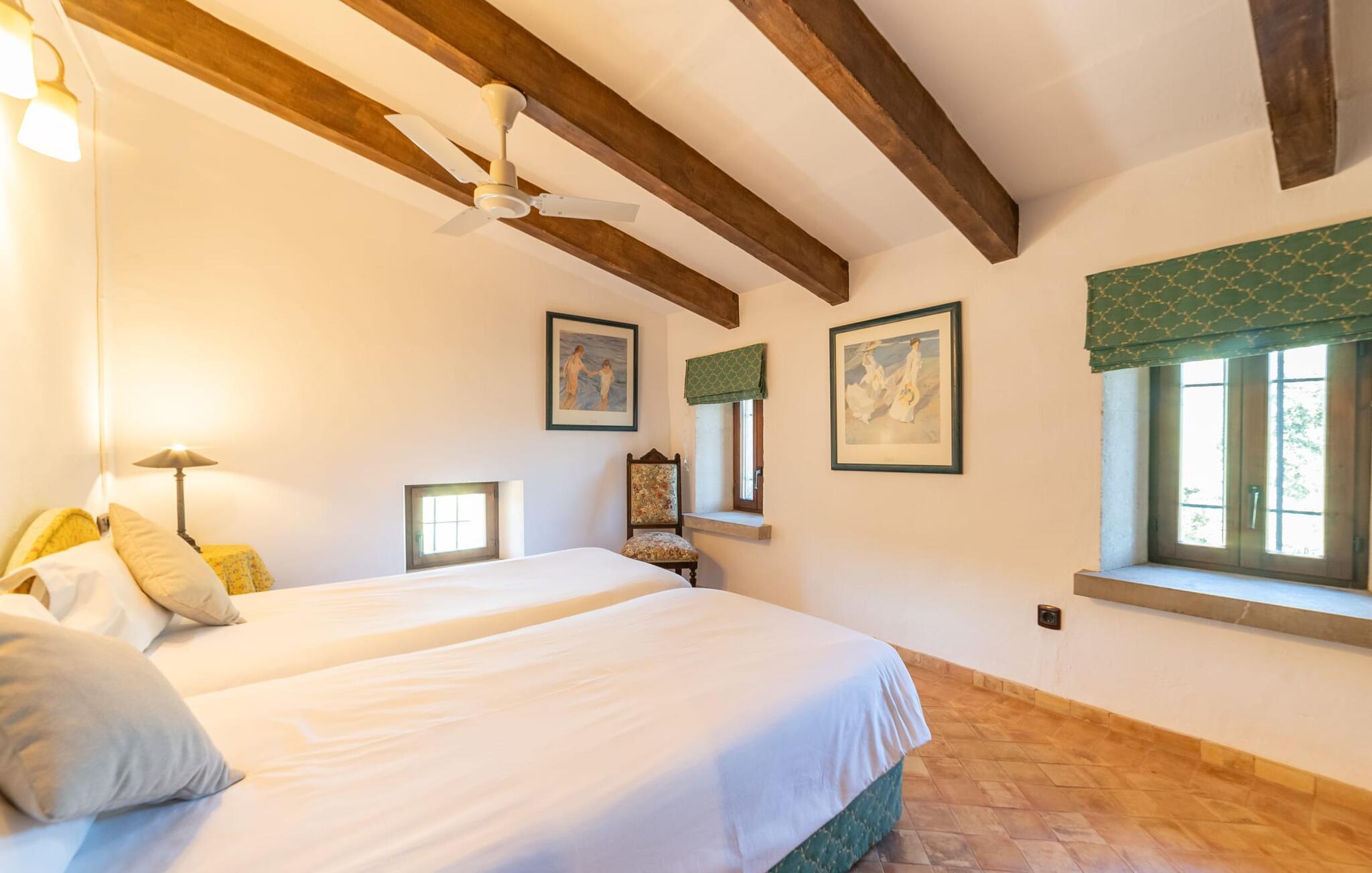 Schon beim Betreten des mallorquinischen Hauses herrscht eine sehr behagliche Atmosphäre und wer Authentizität und traditionellen Charme liebt, wird sofort begeistert sein. Viel Naturstein, dicke Wände, klassische Sichtbalkendecken und spanische Dekorationen tragen zu diesem individuellen Flair bei, in dem Sie sich schnell wie zu Hause fühlen werden. Sie können noch immer die jahrhundertealte Mühle und den ehemaligen Futtertrog sehen! Im Erdgeschoss befinden sich ein Schlafzimmer und zwei Badezimmer (eines davon en-suite) sowie ein elegantes Esszimmer, in dem Sie drinnen umgeben von Natursteinmauern speisen können. In der originalen, alten Küche finden Sie einen angenehmen Platz am Kamin – hier können Sie einen romantischen Abend zusammensitzen und in die knisternden Flammen blicken. In der anderen Küche können Sie Ihre Mahlzeiten zubereiten und verfügen über eine komplette Ausstattung, sodass Sie sich problemlos weiter selbst versorgen können. Das Steinwaschbecken ist ein echter Hingucker! Direkt neben der beeindruckenden Getreidemühle befindet sich ein weiterer großer Esstisch, an dem jeder bequem Platz findet. In der obersten Etage befindet sich ein Wohnzimmer mit einem weiteren Kamin. Hier können Sie fernsehen, ein gutes Buch lesen oder sich gut unterhalten. Darüber hinaus befinden sich auf dieser Etage drei Schlafzimmer und ein drittes Badezimmer. Das Schlafzimmer bietet tolle Entspannungszonen im klassischen Design für die Nacht oder für eine Siesta; Insgesamt stehen Ihnen ein 1,50 x 1,90-Bett und vier 0,90 x 1,90-m-Betten zur Auswahl.