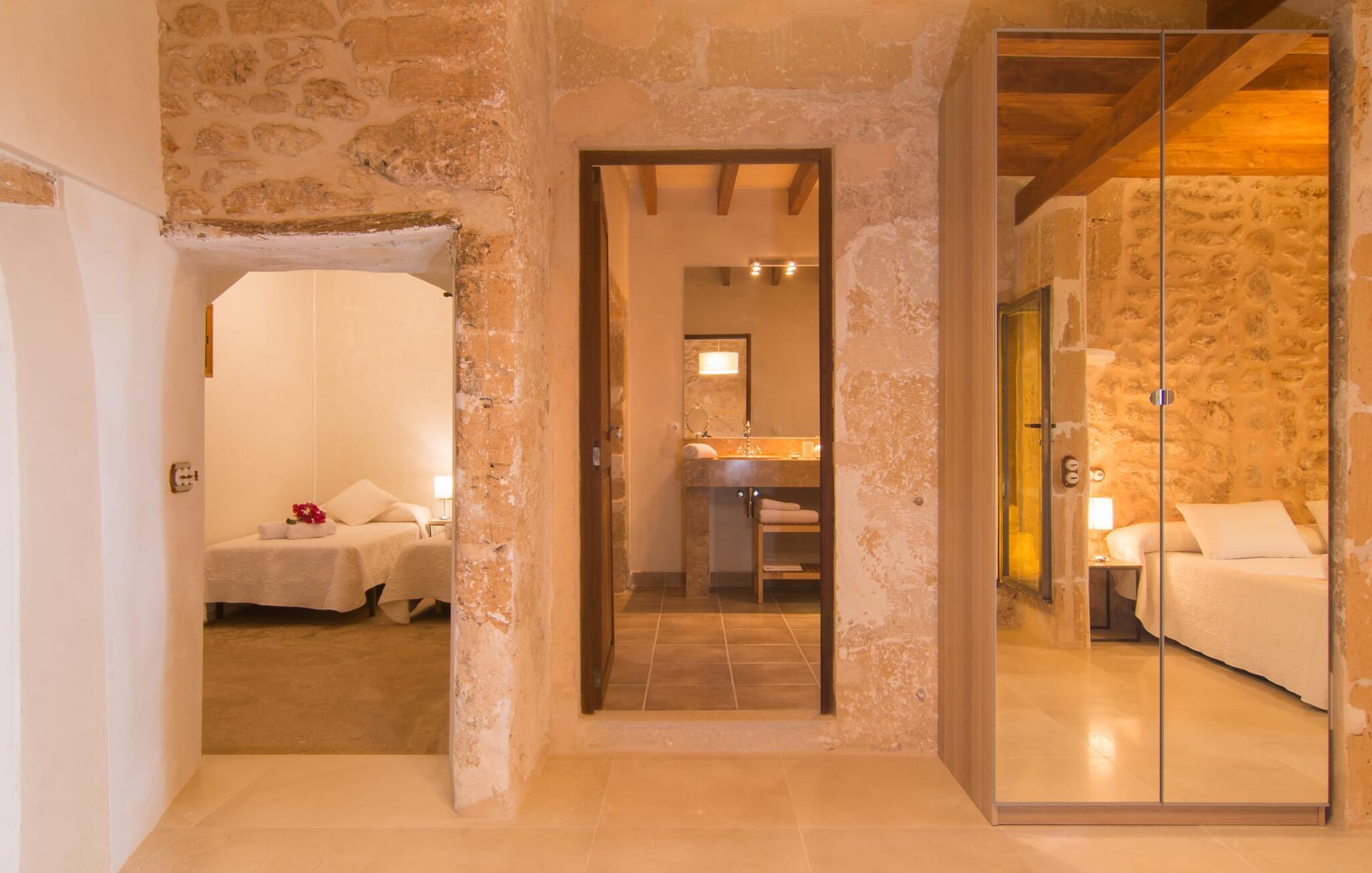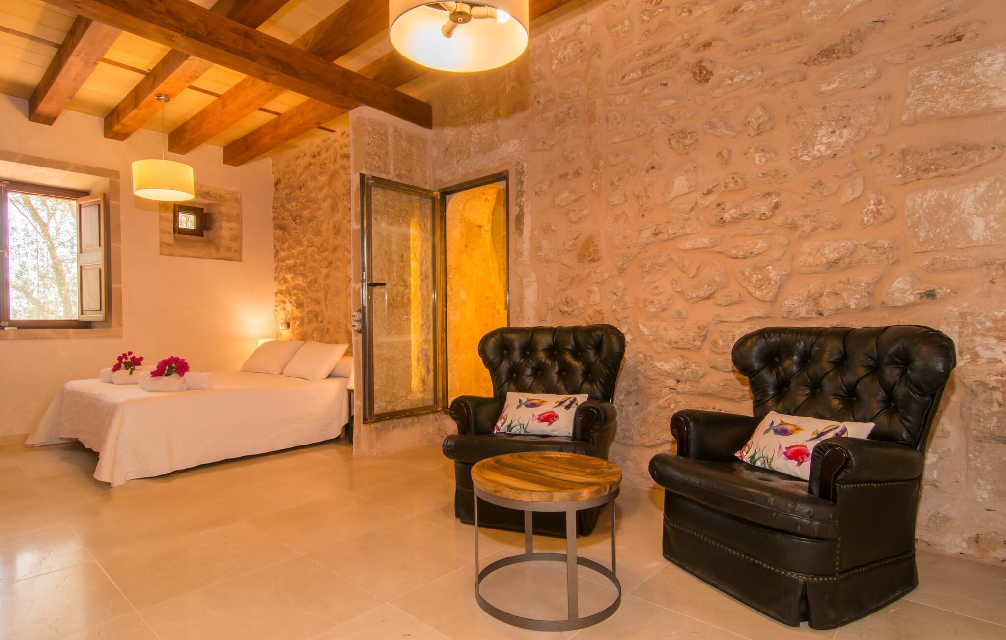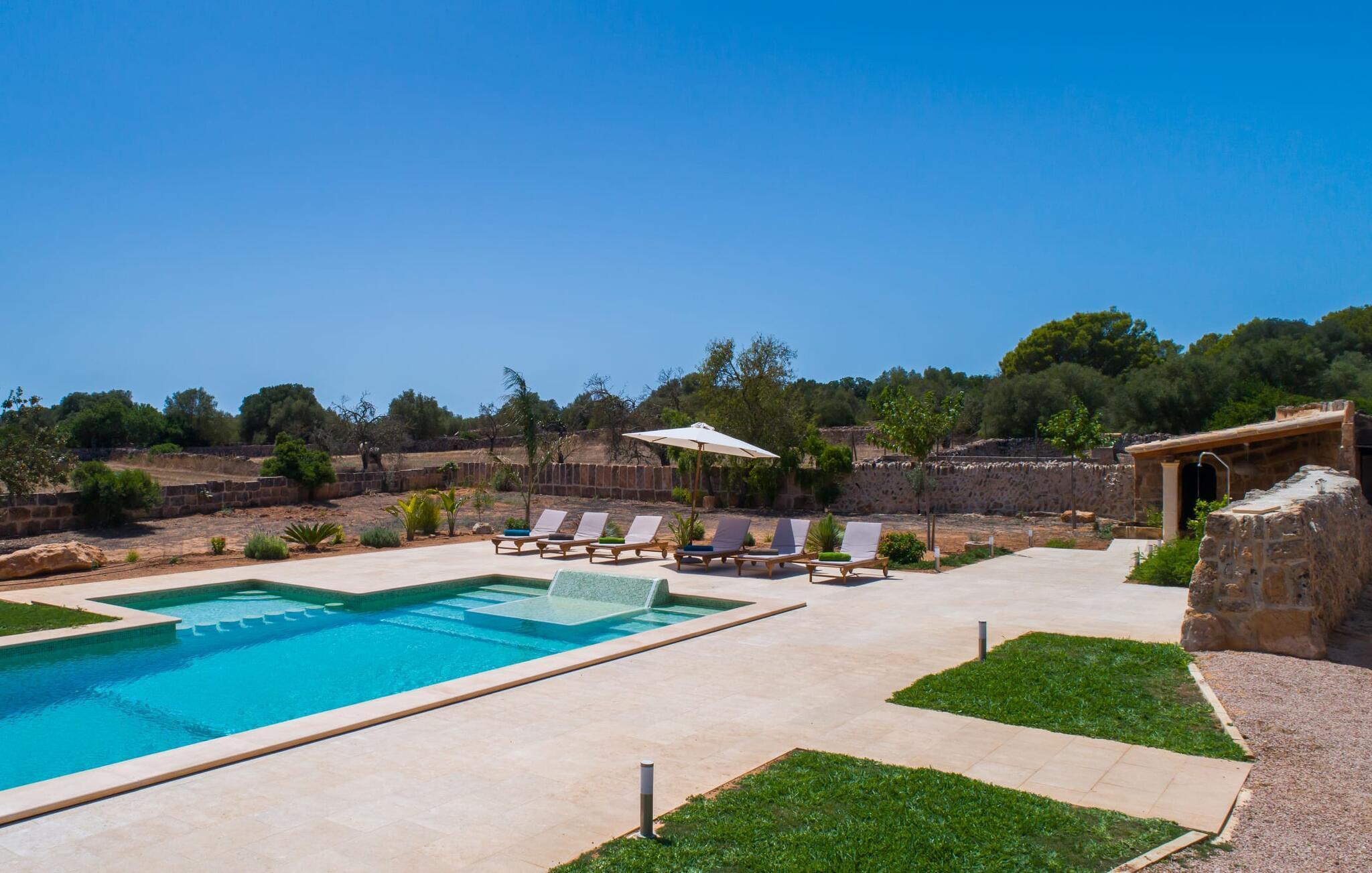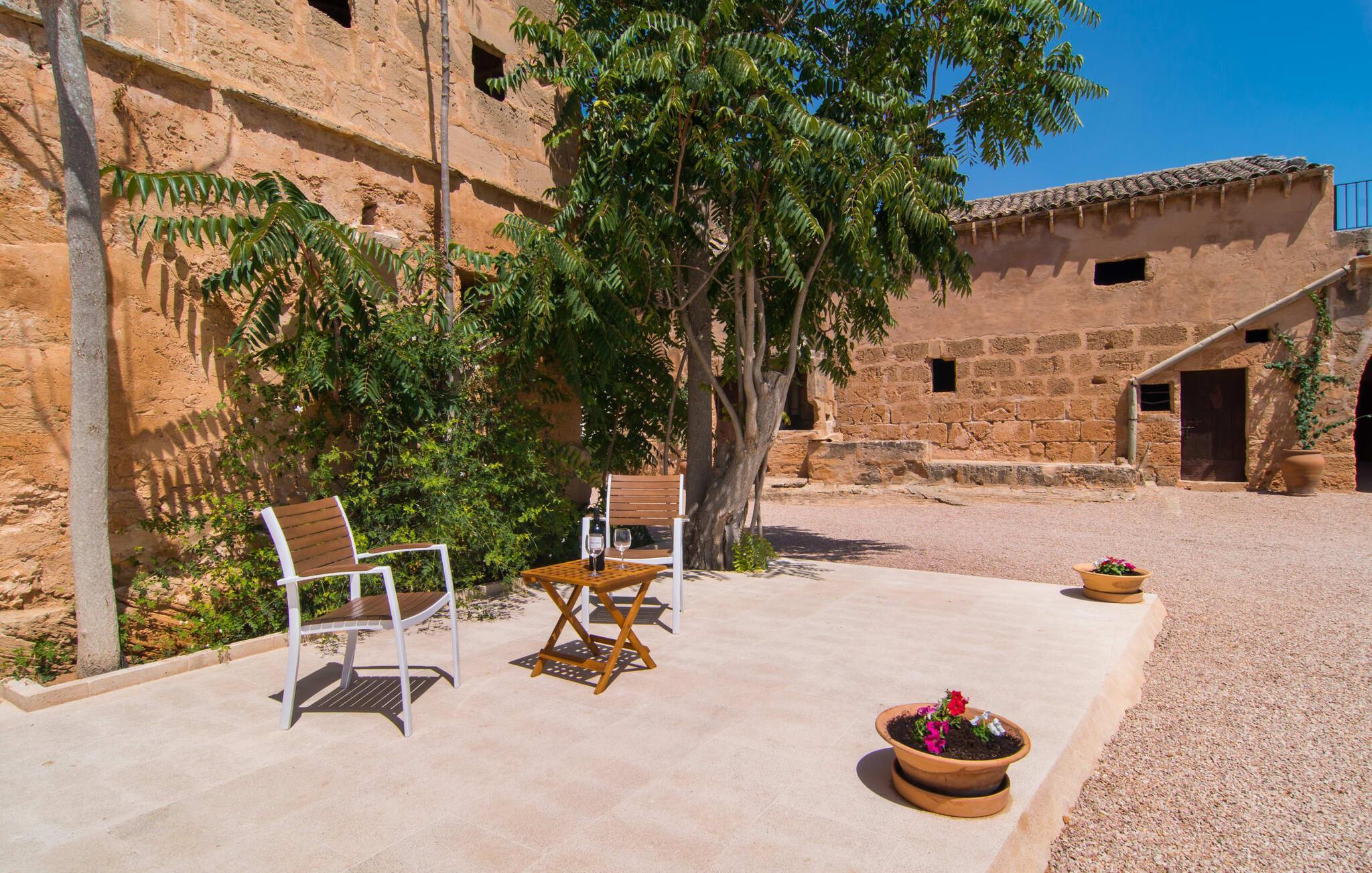 Es gibt Villen, die einem das Gefühl vermitteln, dass einem halb Mallorca zu Füßen liegt. Dies ist bei der Villa „Son Delabau Gran“ der Fall. Sobald Sie das weitläufige Anwesen nach einer kurzen Fahrt vom mallorquinischen Flughafen erreichen, stellt sich unweigerlich das Gefühl von zeitlosem Luxus ein. Trotz der attraktiven Nähe zu aufregenden Städten wie Palma oder Llucmajor versprüht der Blick auf die umliegende Landschaft pure Landidylle. Und vielleicht erinnert Sie die gewölbte Terrasse auch an die tolle Zeit Ihrer Kindheit, als Sie eine besondere Vorliebe für Schlösser hatten, die wie aus einem Märchen wirken. Schmale Stufen, die den Eindruck eines antiken Wahrzeichens vermitteln, führen zu einer hübschen Dachterrasse, auf der Sie die Sonne der Insel genießen können. Das Poolwasser glitzert verführerisch in der Sonne, dem kann man vielleicht nicht lange widerstehen. Und warum sollten Sie? Zu der wohltuenden Wirkung des Wassers gehört schließlich auch, dass das Essen danach deutlich besser schmeckt. Vor allem, wenn es in einer so gemütlichen Außenküche zubereitet wurde, die perfekt für ein großes BBQ ausgestattet ist. Wenn Sie auf einer der Liegen liegen und den Sonnenuntergang beobachten oder eine der Sitzecken – etwa die Pergola oder die Chill-Out-Lounge – nutzen, um ein Glas Inselwein zu probieren, werden Sie wissen: Sie haben alles richtig gemacht, a Mehr Bilderbuch-Idylle gibt es nicht. Wildromantische Rosen klettern an der steinernen Mauerfront im Eingangsbereich empor.