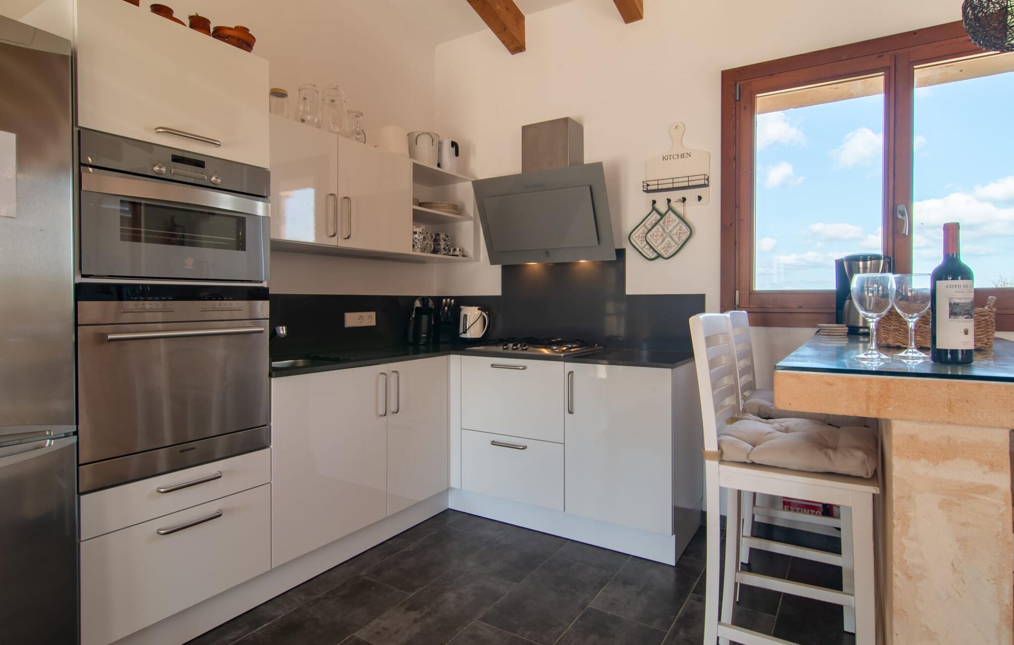 Ebenso harmonisch sind die hellen und modern eingerichteten Räume des Hauses, die von den Eigentümern mit viel Sinn für Stil und Liebe zum Detail eingerichtet wurden. Ein hoher Raum mit schrägem Dach und massiven Sichtbalken bildet den Mittelpunkt der Villa und beherbergt Küche, Esszimmer und Wohnzimmer. Fenster auf drei Seiten lassen viel mediterranes Licht herein und strahlen ein ganz besonderes Ambiente aus. Der helle und geschmackvolle Innenbereich des Hauses besticht durch seine hervorragende Ausstattung und lädt Sie ein, ein paar ruhige Stunden zu verbringen und sich die Zeit zu vertreiben. Ein Kamin sorgt auch an kälteren Tagen für Entspannung, ebenso wie der Flachbildfernseher mit Satellitenanschluss. Die moderne Küche bietet alles, was Sie für Ihren Selbstversorgerurlaub benötigen, einschließlich Herd, Backofen, Geschirrspüler, Kühl-/Gefrierkombination, Wasserkocher, Toaster und Kaffeemaschine. Insgesamt stehen den Gästen drei bezaubernde Schlafzimmer für einen erholsamen Schlaf zur Verfügung. Geschmackvoll und praktisch eingerichtet, bietet jedes einzelne ein Höchstmaß an Komfort. Gleiches gilt für die beiden Badezimmer der Villa. Als freches Sahnehäubchen verfügt eines davon über ein eigenes Bad, das mit dem Hauptschlafzimmer verbunden ist.