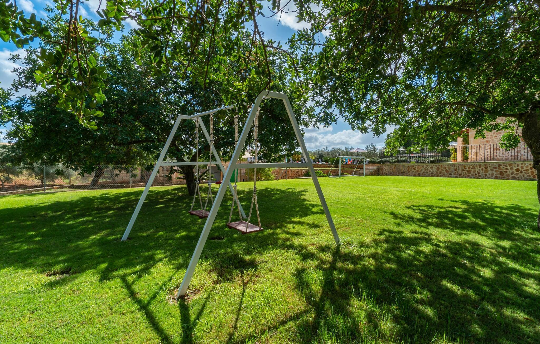 Das charmante Ferienhaus „Son Duri“ in der Nähe von Manacor liegt eingebettet in einer ruhigen ländlichen Umgebung, umgeben von flacher Landschaft. Der nahezu stufenlose, großzügige Außenbereich verfügt über eine weitläufige Rasenfläche, die zum Spielen und Entspannen einlädt. Schattige Spielbereiche heißen die kleinen Gäste herzlich willkommen.