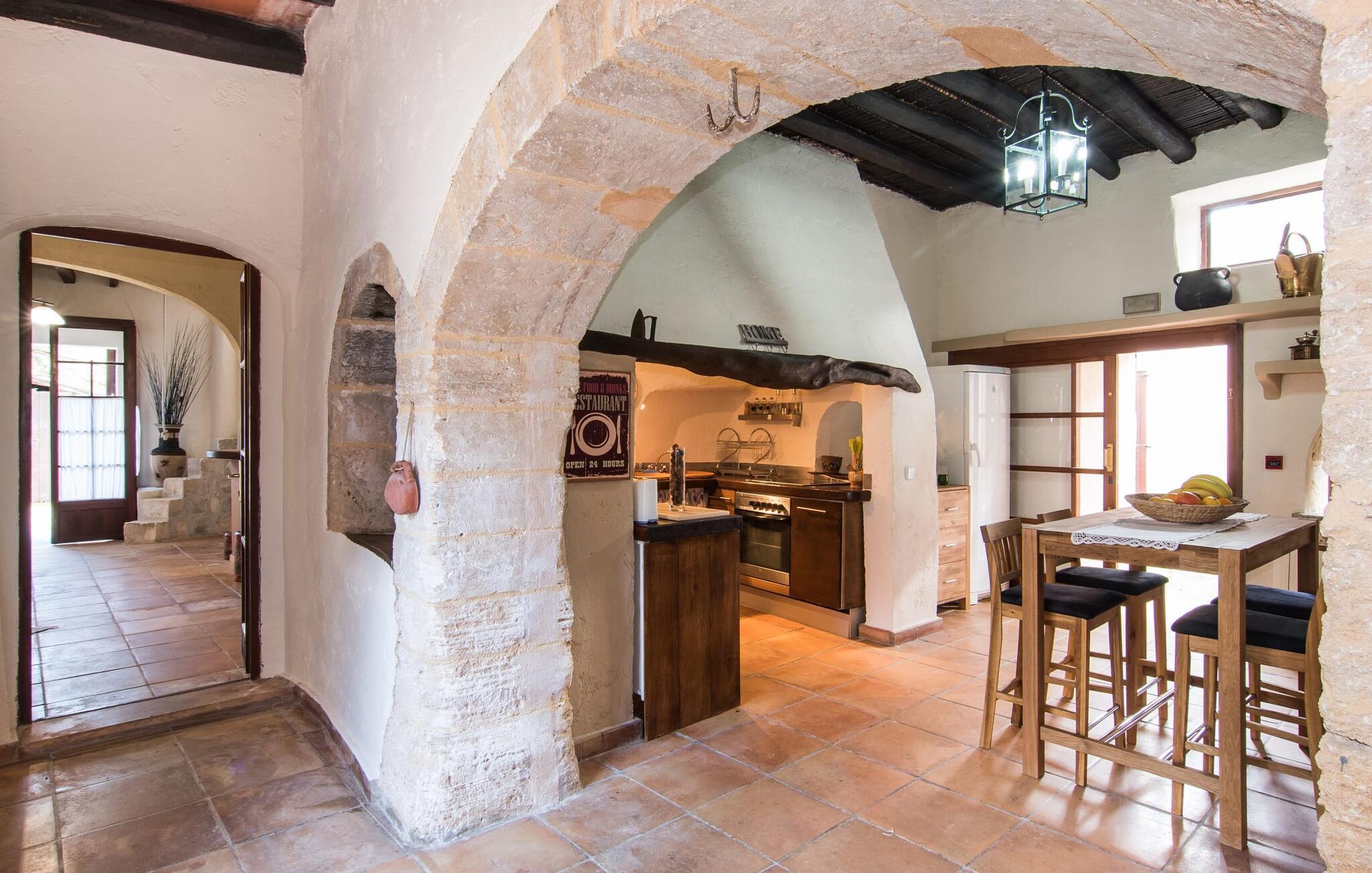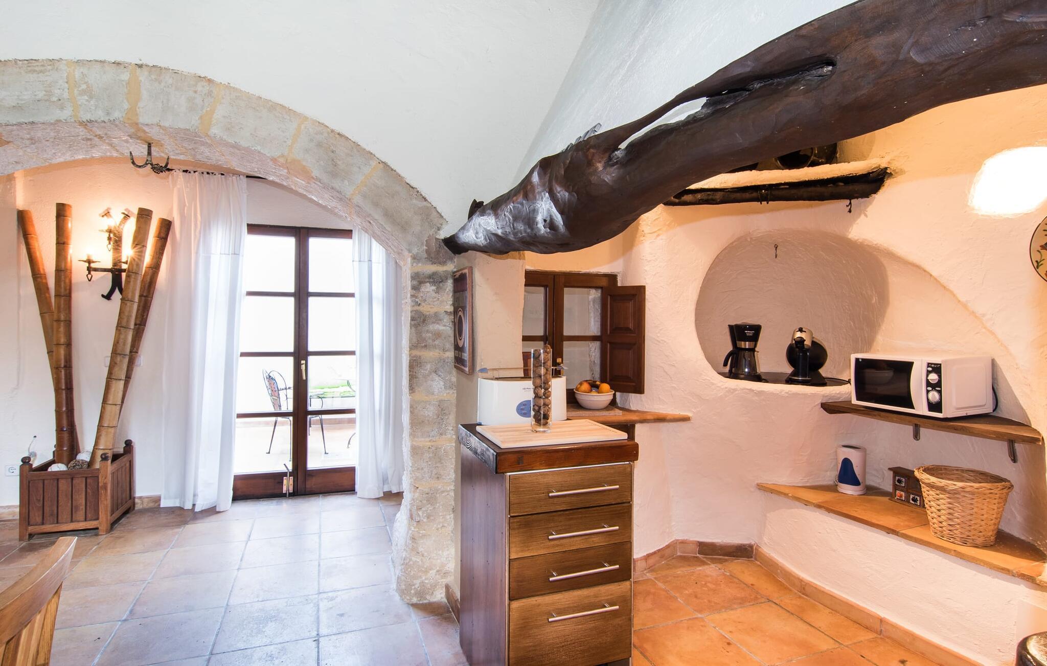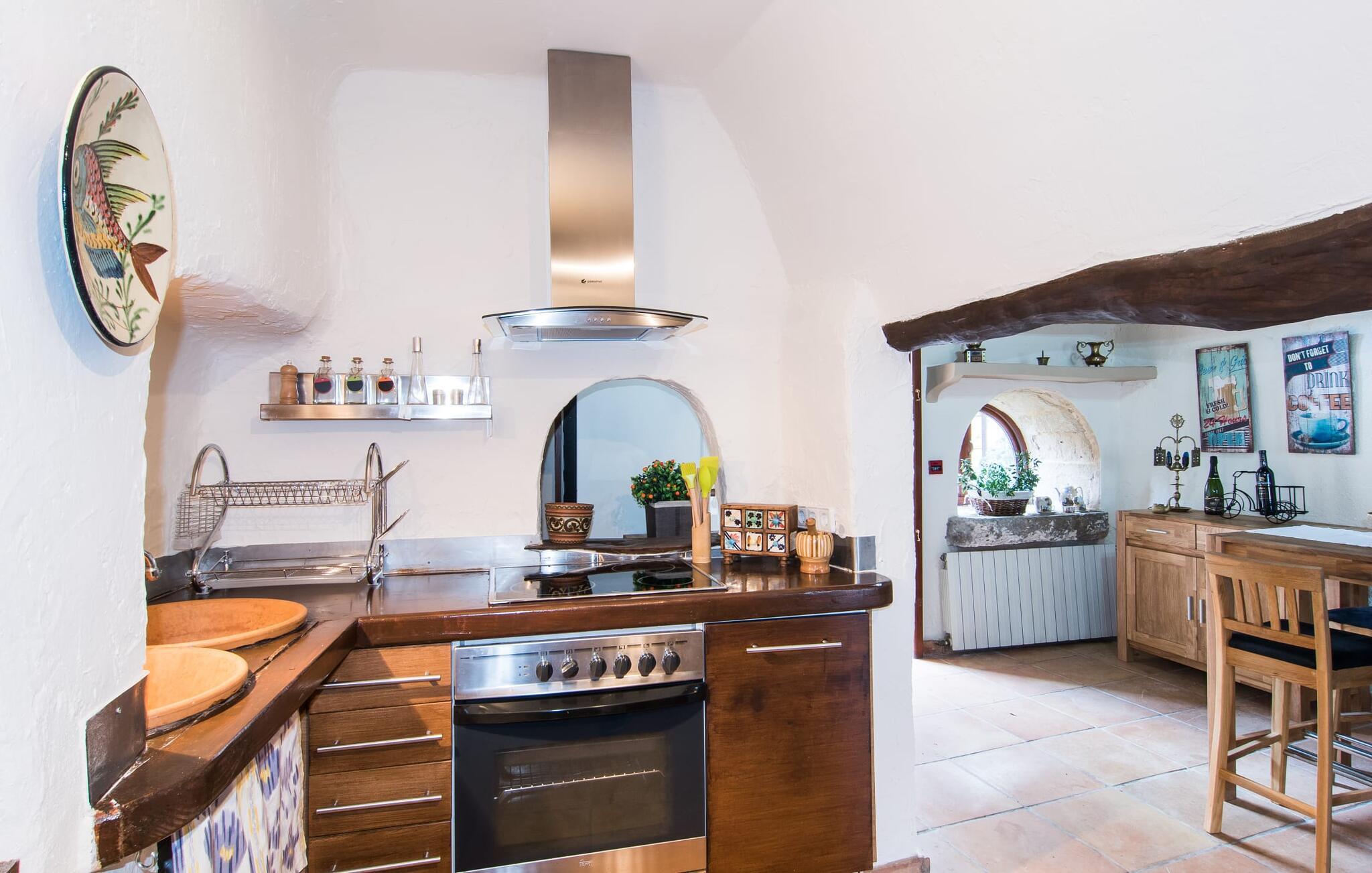 Allerdings sollte es nicht nur der Einbruch der Dunkelheit sein, der Sie in das fantastische Haus lockt. Auch wenn die authentischen Wände einen Hauch von antikem Charme versprühen, ist das Innere der Villa voller moderner Details, die gekonnt mit der rustikalen Atmosphäre der Räume interagieren. Sichtbares Mauerwerk, weiß getünchte Wände, dunkle Dachbalken, gewölbte Decken, Split-Levels, offene Galerien mit gemütlichen Sitzecken und kleine Nischen warten nur darauf, entdeckt zu werden. Alles in diesem Haus ist auf Komfort ausgerichtet und bietet gleichzeitig moderne Einrichtungen im schönen Wohn- und Esszimmer. Die Küche wurde der architektonischen Situation angepasst und in hübschen kleinen Nischen untergebracht. Die moderne, voll ausgestattete, elegante Küche im angesagten Landhausstil überzeugt ebenso wie die moderne Sitzecke, in der Hocker zum Entspannen einladen, während Sie Ihren Morgenkaffee schlürfen und den Tag langsam beginnen lassen. Vielleicht sogar, während Ihre Mitreisenden noch eine erholsame Nacht in einem der romantischen Schlafzimmer genießen, die bis zu zehn Urlaubern viel Platz in gemütlichen Zimmern bieten, die entweder mit einem Doppelbett oder zwei Einzelbetten ausgestattet sind (Bettgrößen variieren zwischen 1,80, 1,50 und ...). je 2 x 0,90 m). Da das Haus außerdem über fünf farbenfrohe Dusch- und Badezimmer, davon drei en-suite, sowie zwei zusätzliche Gäste-WCs verfügt, ist Ihnen absolute Unabhängigkeit garantiert. Sie allein entscheiden, wann Sie Ihren Tag beginnen – ob gemeinsam oder zu unterschiedlichen Zeiten. Langschläfer finden hier ebenso viel Ruhe wie Frühaufsteher, die vielleicht den Vormittag damit verbringen möchten, die Umgebung von Capdepera zu erkunden.