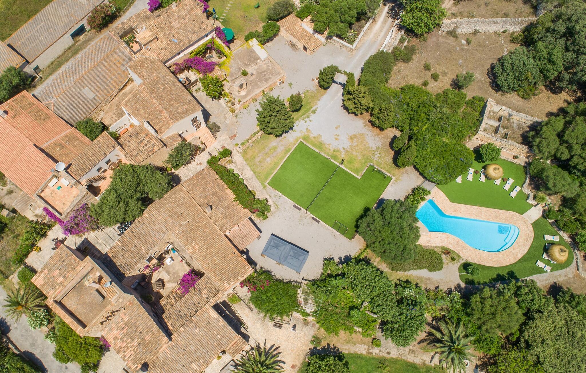 Die Bruchsteinmauern aus dem Jahr 1800 sind ein Stück lebendige Geschichte. „Son Favar“ steht stellvertretend für eine lange Geschichte mallorquinischer Identität. Ein Teil des ehrwürdigen Bauwerks, ein Turm, ist sogar als Weltkulturerbe geschützt. Das Anwesen blickt auf eine reiche landwirtschaftliche Vergangenheit zurück, weshalb die wunderschön restaurierte Villa auch von mehreren anderen Gebäuden umgeben ist. Einige davon dienen der Pflege und Instandhaltung des Grundstücks, andere gehören ruhigen Nachbarn, die Wegerecht auf dem Grundstück haben, um zu ihren eigenen Grundstücken zu gelangen.