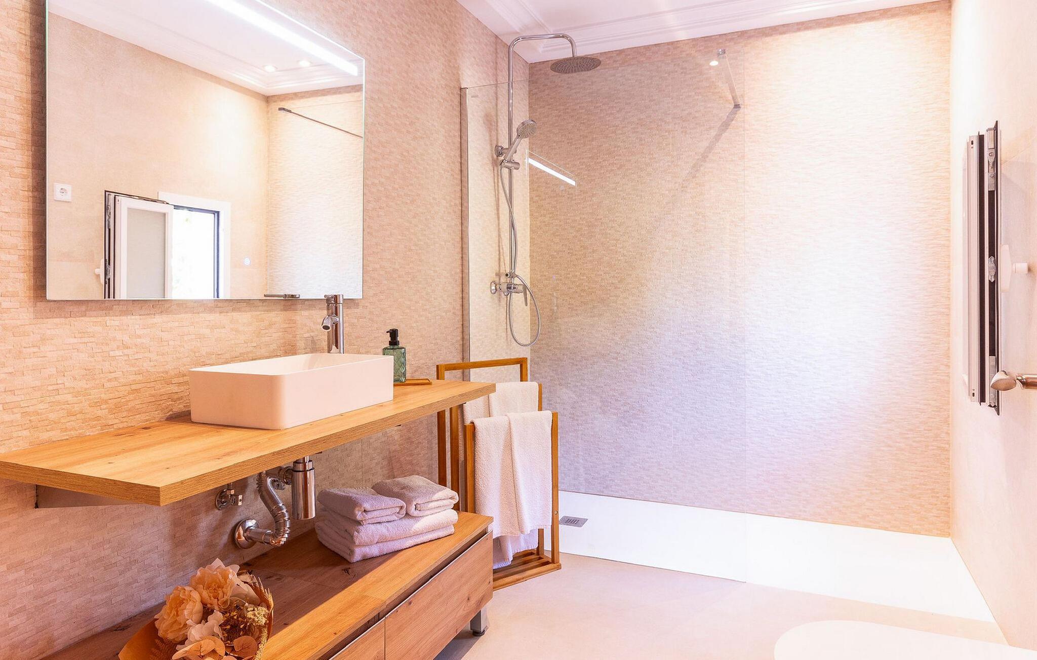 Mit einer Wohnfläche von 100 m2 bietet die Wohnung Platz für bis zu sieben Gäste. Der Hauptwohnbereich ist von der Terrasse aus zugänglich und besteht aus einem Wohnzimmer, einer Einbauküche und einem Essbereich im Innenbereich. Es gibt drei Doppelzimmer, eines davon mit Etagenbett, und zwei Badezimmer mit Dusche. Ein weiterer Gast kann auf der bequemen Schlafcouch im Wohnzimmer schlafen. Die Wohnung ist mit einer Klimaanlage ausgestattet und verfügt über WLAN und zuverlässigen Mobilfunkempfang.