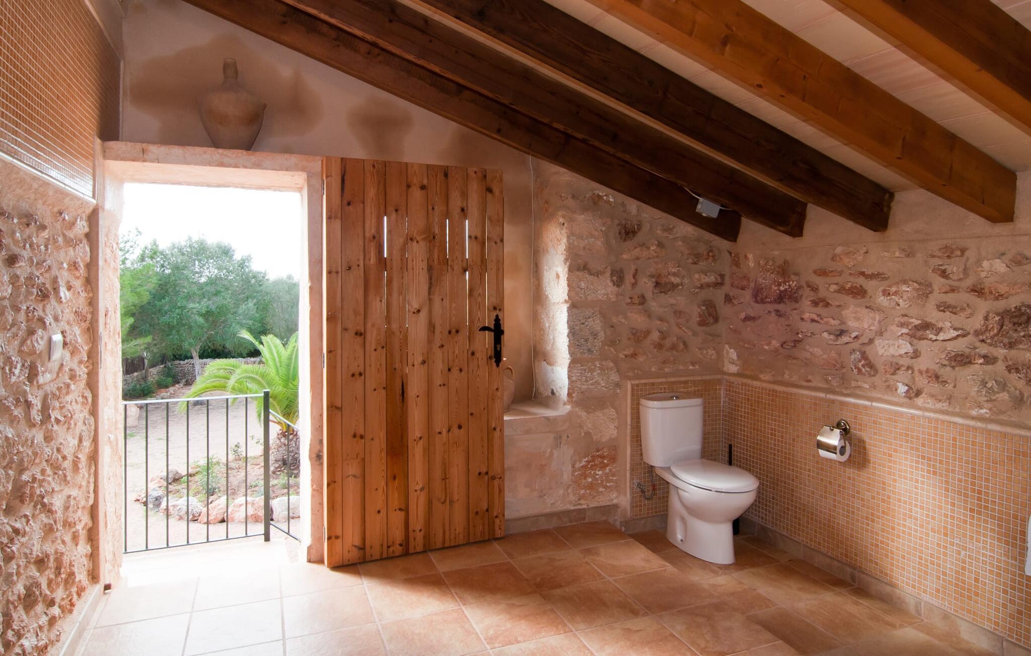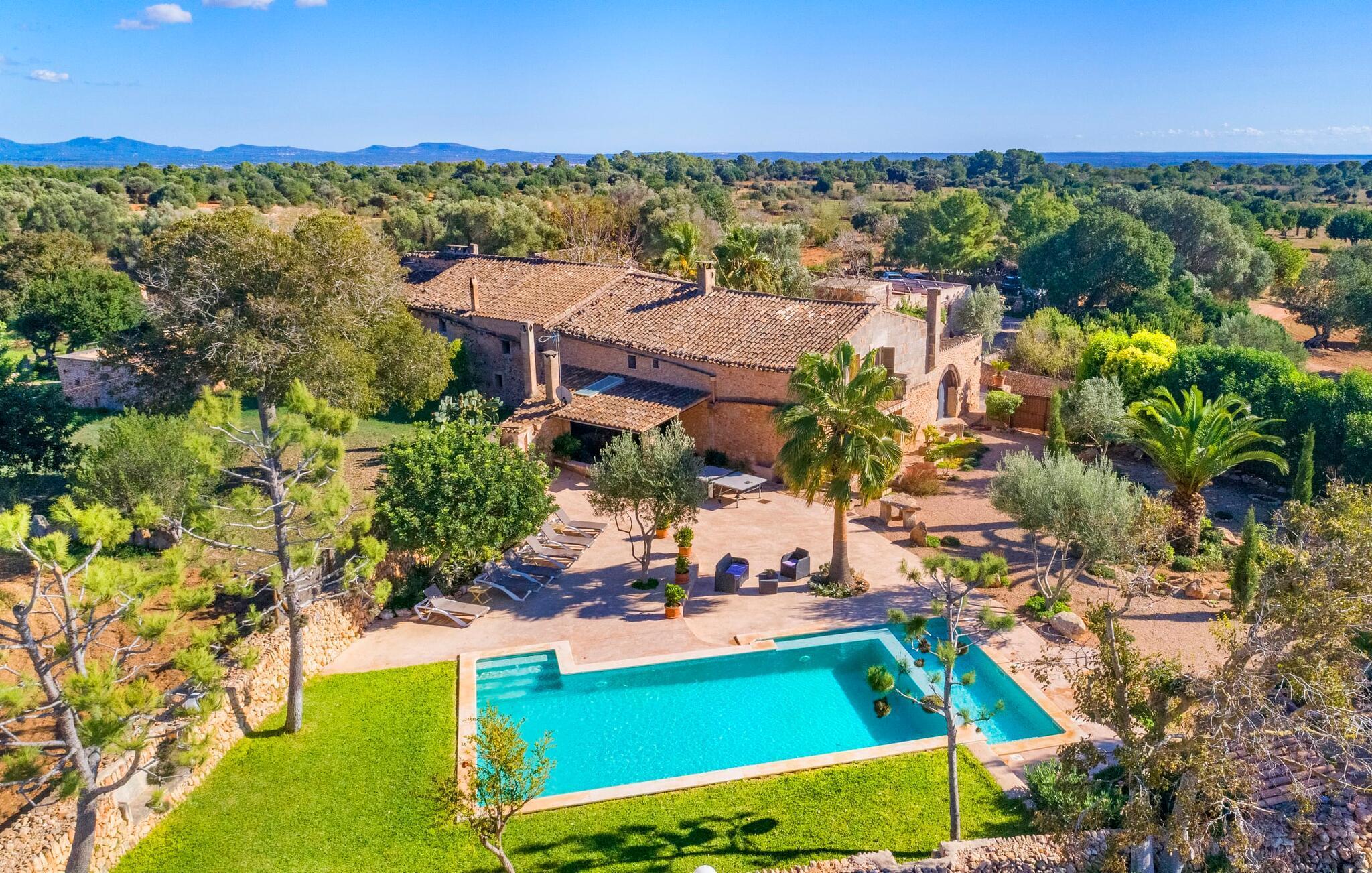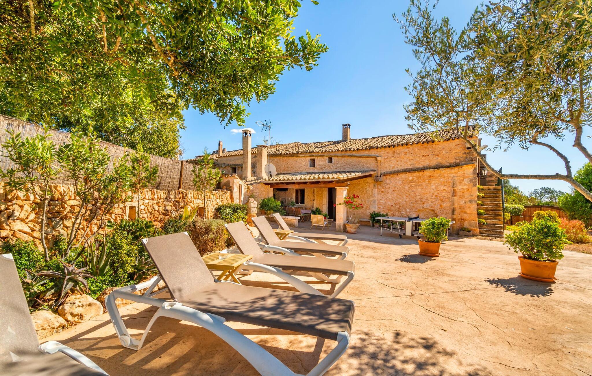 Die gut versteckte Villa „Son Gabriela“ empfängt ihre Gäste in einer völlig ländlichen Atmosphäre und mit einer unglaublichen Ruhe, die das Anwesen umgibt. Im weitläufigen Garten, der größtenteils mit hellem Sandsteinkies bedeckt ist, werden sich auch Neulinge sofort wohlfühlen und die Lust zum Bleiben überkommen. Eine kleine Rasenfläche neben dem Pool sorgt für ein interessantes und abwechslungsreiches Gesamtbild und bietet einen malerischen Spielbereich für eventuell mitreisende Kinder. Zwischen dem Haus und dem Pool gibt es Terrassen, die jeweils über zahlreiche hübsche Sitzbereiche verfügen, auf denen Sie unter freiem Himmel entspannen können. Besonders elegant und einladend sind die Sitzgelegenheiten, die direkt in die kleinen Natursteinmauern eingebaut wurden. Hier lässt es sich wunderbar die Zeit vertreiben und dabei den Blick auf den Garten schweifen lassen. Direkt neben dem Haus befindet sich die überdachte Terrasse, die dank ihres großen Esstisches den perfekten Rahmen für gemeinsames Essen bietet. Auch hier wurde praktischerweise ein eingebauter Grill eingebaut, so dass Sie die Köstlichkeiten der Region frisch zubereiten und genießen können. Ein stilvoller Doppelpool, dekoriert mit türkisfarbenen Mosaikfliesen, ist für Jung und Alt ein echter Hingucker. Hier können Sie sich abkühlen und an warmen Tagen eine angenehme Erfrischung finden. Der große Pool ist bequem über eine breite Treppe erreichbar und hat eine maximale Tiefe von 1,90 m. Rund um das Anwesen selbst gibt es so viel Privatgrundstück, dass jeder, der dieses Anwesen mietet, praktisch einen Spaziergang machen kann, ohne sich auch nur aus seinem eigenen kleinen Bereich herauszuwagen. Bei dieser Immobilie wohnen Sie sozusagen in einer Doppelhaushälfte. Der andere Teil des Hauses ist jedoch unbewohnt, sodass Sie Ihren Urlaub in absoluter Privatsphäre genießen können. Das Haus verfügt über einen eigenen Parkplatz, der etwa 20 m vom Grundstück entfernt liegt.