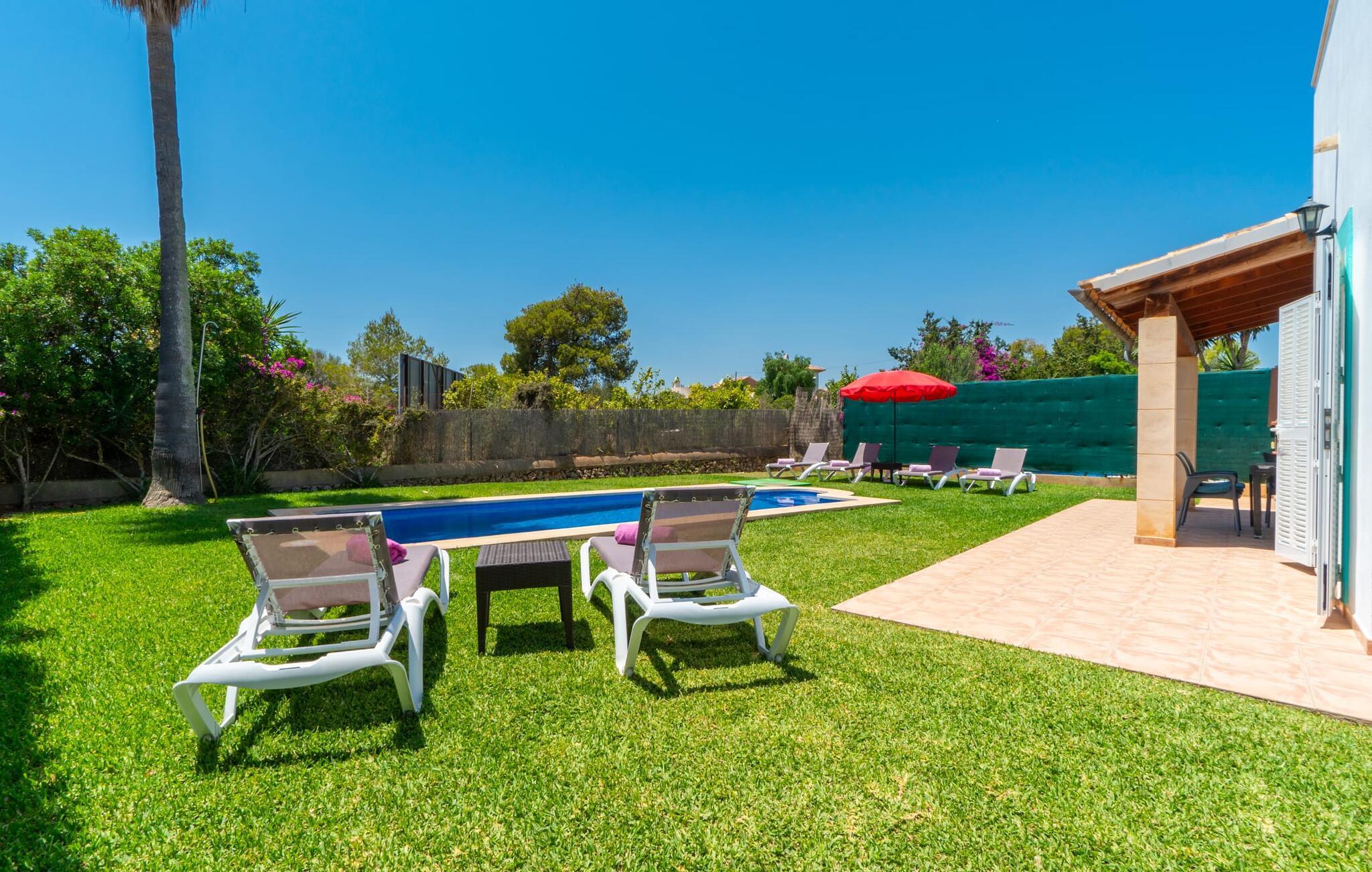 Einfach und unkompliziert beginnt Ihr Urlaub direkt nach Ihrer Ankunft: Nur eine Autostunde, ausschließlich auf asphaltierten Straßen, bringt Sie vom Flughafen zur Villa, wo Sie sich schnell niederlassen und entspannen können. Nach Ihrer Ankunft möchten Sie vielleicht ein kühles Getränk auf der Terrasse genießen, die dank ihrer Überdachung auch bei heißem Sommerwetter einen angenehmen Platz zum Entspannen bietet. Bei schönem Wetter könnte der hübsche Tisch in den kommenden Tagen zum Rahmen für alle gemeinsamen Mahlzeiten werden. Auch wenn ein leckeres Frühstück in dieser Umgebung sicherlich ein besonderes Vergnügen ist, wird Sie der nahegelegene eingebaute Grill wahrscheinlich auch dazu bringen, abends gemeinsam kulinarische Köstlichkeiten zu genießen. Wer springt als Erster ins kühle Nass des Pools? Mit einer Tiefe zwischen 0,80 und 2 m und einer Länge von 8 m ist der mit blauen Mosaikfliesen und kleinen halbrunden Treppen verzierte Pool ein hervorragender Ausgangspunkt für heiße Sonnentage, wobei die große Palme zusätzlichen Schatten spendet . Zum Sonnenbaden können Sie die bequemen Liegen im Garten beliebig positionieren. Wenn Sie die Welt von oben betrachten möchten, begeben Sie sich auf die Dachterrasse, die sich im ersten Stock des Hauses befindet und auch einen Blick auf den Garten gewährt.