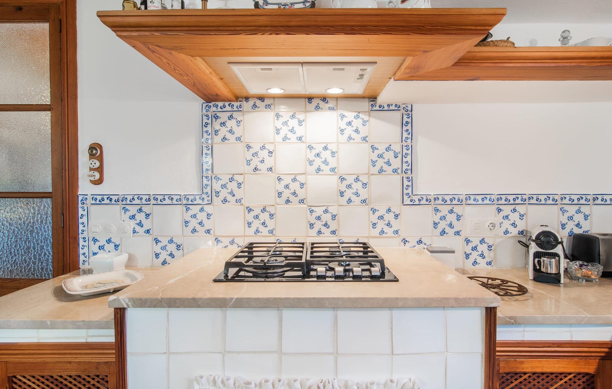 Die Inneneinrichtung des Ferienhauses ist eine gelungene Mischung aus traditionellen Elementen und einer modernen, offenen Architektur. Im Erdgeschoss befindet sich ein gemütliches Wohnzimmer, das zum oberen Wohnbereich hin offen ist und über einen modernen Kamin und elegante antike Möbel verfügt. Das Wohnzimmer verfügt über einen offenen Essbereich. Direkt dahinter finden Sie eine schöne Küche, gestaltet im modernen Landhausstil. Darüber hinaus befindet sich im Erdgeschoss ein klimatisiertes Doppelzimmer mit eigenem Bad. Das eigene Badezimmer ist auch vom Hauptwohnbereich aus zugänglich. Die Stufen führen hinauf zu einem weiteren offenen Wohnbereich mit einem weiteren Schlafzimmer mit Doppelbett und einem Badezimmer mit Dusche. Ein Zustellbett für mitreisende Kinder oder Jugendliche ist auf Anfrage erhältlich.