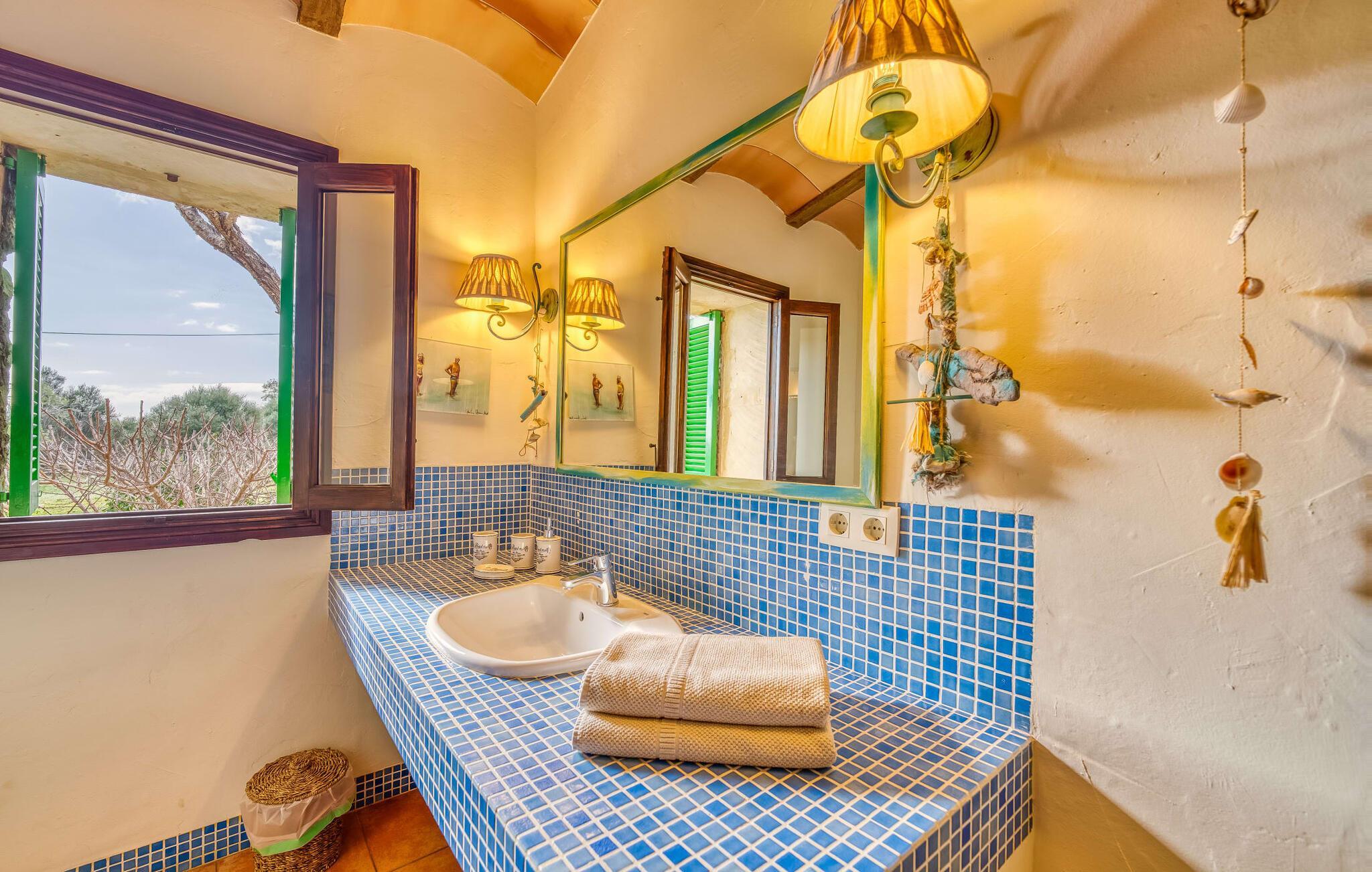 Sie haben sich für ein Ferienhaus entschieden, das Sie theoretisch nur zum Einkaufen verlassen müssen. Der Garten und das Anwesen sind einfach wunderschön und auch die umliegende Landschaft lädt zu ausgedehnten Spaziergängen, Wanderungen und Radtouren ein. Dennoch sollten Sie sich einen Ausflug ins nur 3 km entfernte Santanyí nicht entgehen lassen. Umrahmt von Mandelbaumhainen und landwirtschaftlich genutzten Flächen ist der kleine Ort mit seinen hübschen Sandsteinhäusern und hellblauen Fensterläden auf jeden Fall einen Besuch wert. Im Zentrum laden viele kleine, originelle Läden zum Stöbern ein und mittwochs und samstags können Sie dort frisches Obst, Gemüse, Käse- und Wurstspezialitäten sowie Mode und Kunsthandwerk shoppen. Der Strand von Cala Santanyí, der über eine gute Infrastruktur verfügt, ist 8 km entfernt, ebenso die ebenso schönen Strände von Cala Mondragó und Cala Llombards. Hier genießen Sie absolute Privatsphäre inmitten einer traumhaften mediterranen Landschaft: Auf einem riesigen Grundstück in Alleinlage wurde die schicke Villa „Son Sans“ mit großem Pool erbaut. In der Umgebung können Sie nach Herzenslust Spaziergänge, Wanderungen oder Radtouren unternehmen. Die hübsche Stadt Santanyí ist mit dem Mietwagen nur 3 km entfernt und die tollen Strände Cala Mondragó, Cala Llombards und Cala Santanyí sind alle nur 8 km entfernt.