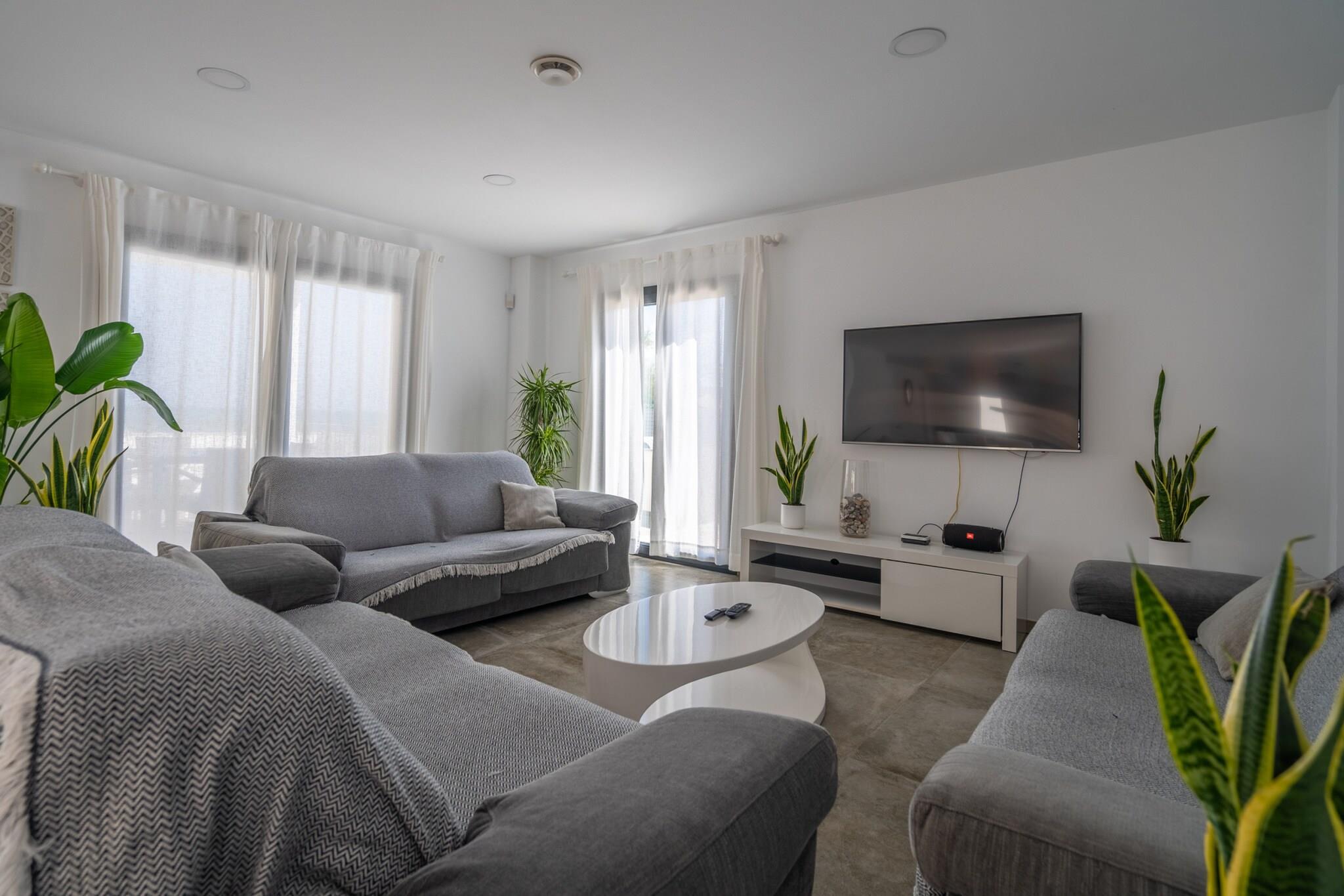 This stunning beachfront villa Son Serra Paradise, offers luxurious accommodations for up to 12 guests, with 6 stylish double bedrooms and 6 en suite bathrooms, perfect for a relaxing getaway. Each room is equipped with modern amenities, including air conditioning, satellite TV, and USB ports. The villa also features a PS4 and various games to keep everyone entertained, along with a gym and a table tennis area in the transformed underground garage. Baby cots and high chairs are available on request, making it a family-friendly choice. The property is located just 20 meters from the beach in the quiet coastal village of Son Serra de Marina. It’s an ideal destination for those seeking a peaceful escape while still being close to local cafes, restaurants, and charming markets. The beach is perfect for relaxing, swimming, or enjoying water sports, while the surrounding area offers beautiful views and a laid-back atmosphere. Explore the village's quaint streets, or venture out for a day of sightseeing in nearby towns and attractions. The villa is equipped with a modern, fully stocked kitchen featuring a microwave, oven, large fridge-freezer, and a kitchen island, providing everything you need for meal preparation. The open-plan living and dining areas are spacious and perfect for gatherings, with a central dining table and comfortable seating areas. Additionally, the villa includes a practical laundry area with a washing machine and dryer, and outdoor amenities such as a saltwater pool, a jacuzzi on the rooftop terrace, and a BBQ area to enhance your vacation experience. The rental license number is ETV/9671