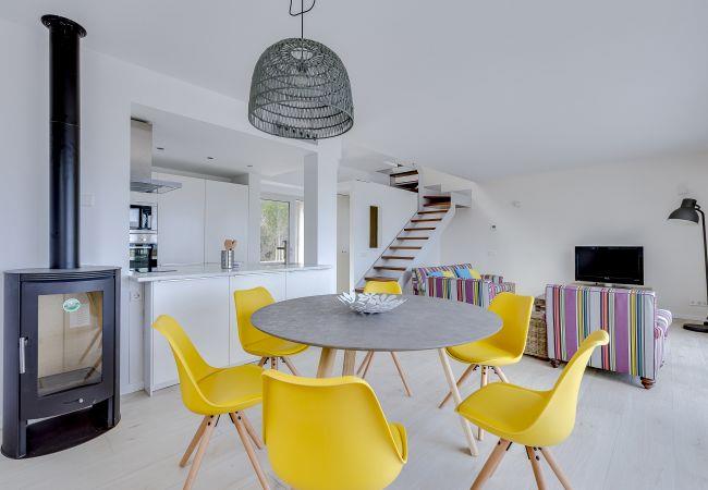 In the vitroceramic open plan kitchen, refrigerator, microwave, oven, freezer, washing machine, dishwasher, dishes/cutlery, kitchen utensils, coffee machine, toaster and kettle are provided.