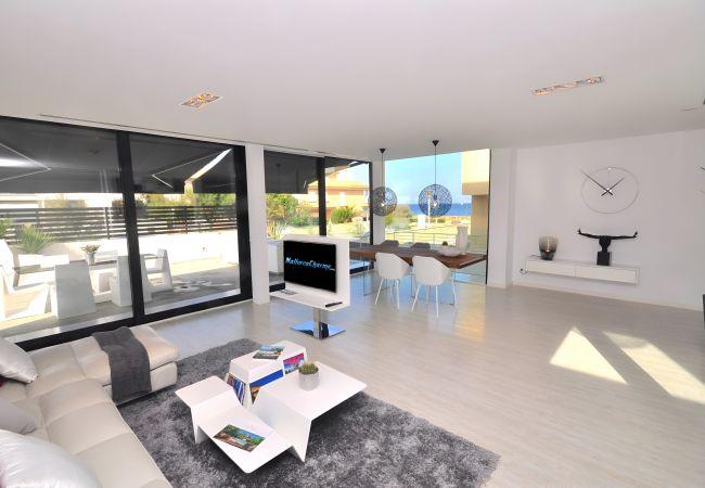 This beautiful villa is located in the idyllic village of Son Serra de Marina. The modern and avant-garde architecture is ideal for enjoying excellent holidays on the island of Mallorca.
