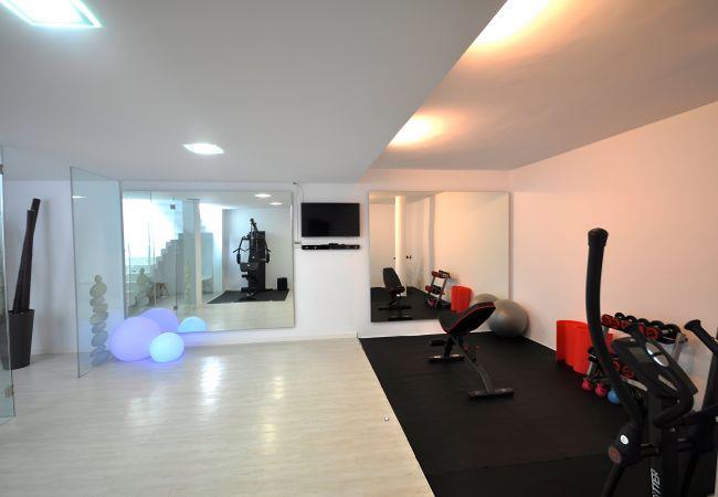 On the ground floor is a fully equipped gym, as well as a large television and surround sound system.