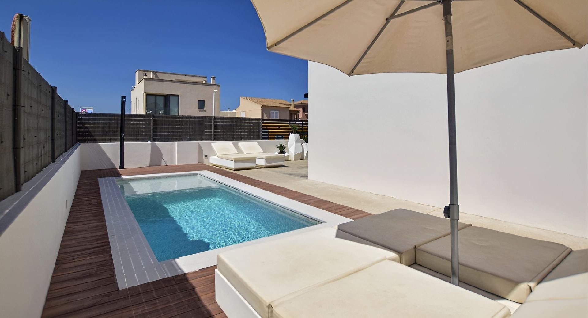 This actually stands out simply because of its location, but also offers the luxury of a private swimming pool and a fantastic sea view over the entire Bay of Alcudia.