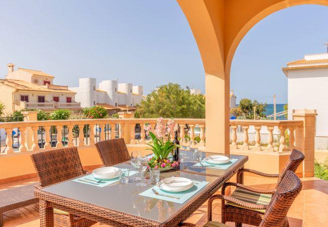 Nice house with large terrace.The house, distributed over two floors, has a fully equipped kitchen, a bright living-dining room with access to the terrace, three spacious bedrooms and two bathrooms with showers. In addition, if you want to enjoy wonderful family vacations, this home is ideal for you, since it has a children's room that also has a ping pong table for all ages to enjoy.Outside, as previously mentioned, there is a terrace, equipped with a table with chairs so that you can enjoy an aperitif with your family or friends, as well as several sun loungers to relax in the sun. At your disposal, you will also find a barbecue.The house is located in Son Serra, one of the beaches that still retains that paradisiacal charm typical of virgin beaches; Crystal clear waters, several kilometers of white sand, a beautiful natural environment but with some comforts. The beach is located to the east of the island in the Bay of Alcudia and 10 km from Can Picafort. Furthermore, if you are looking for a place to practice exciting adventure sports, Son Serra de Marina is ideal for you, as it is known for practicing sports such as surfing, windsurfing, kite surfing and hang gliding. On the other hand, despite being a small area, you will find everything you need to enjoy your stay; restaurants, bars and supermarkets.All our houses are carefully cleaned so that our guests are protected against covid.-If the reservation is made through Homeaway or Booking, 30% will be requested in advance, despite this, you have 15 days before your arrival to cancel without penalty.-GROUPS OF YOUNG PEOPLE UNDER 30 YEARS OLD WHO WISH TO RESERVE MUST DO SO UPON REQUEST.