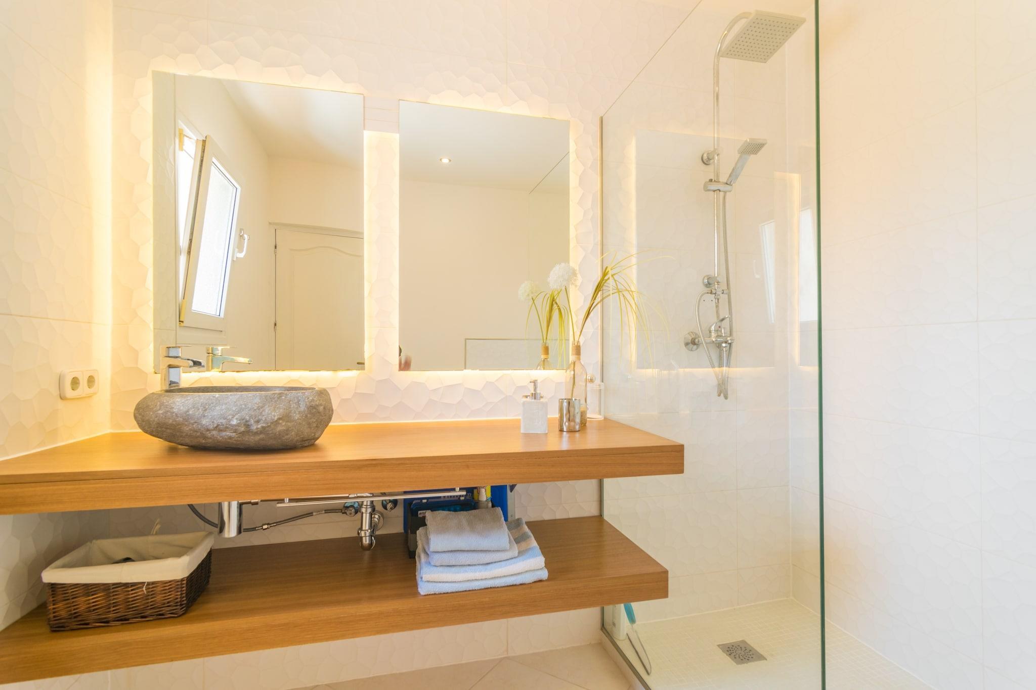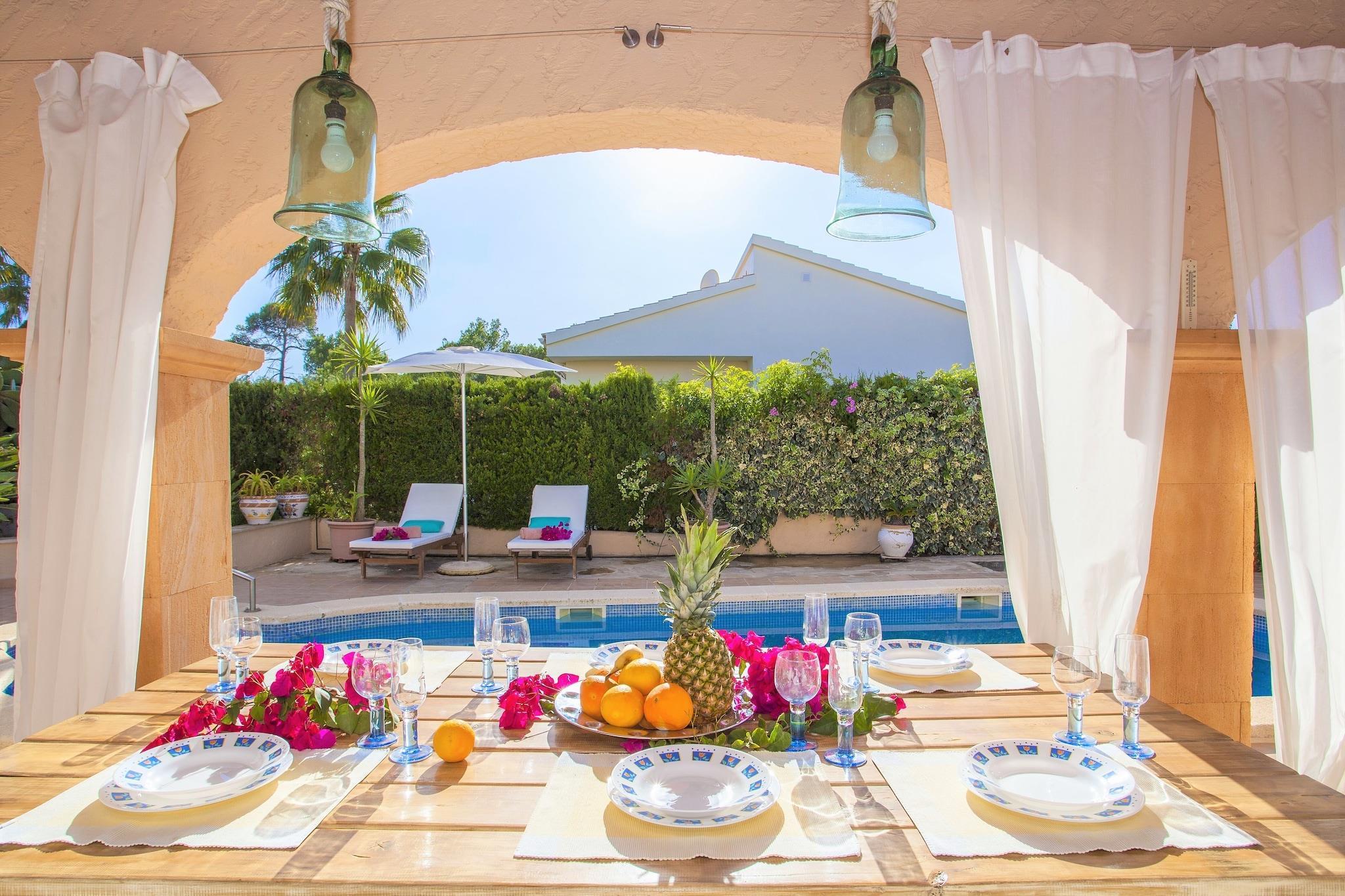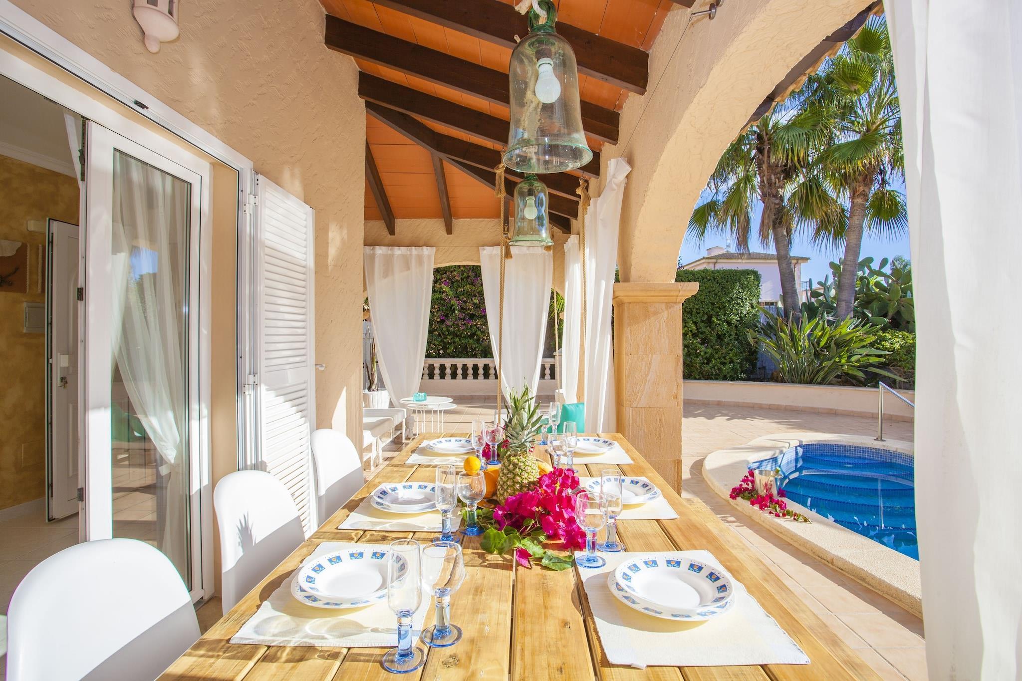Enjoy the great Majorcan summer in the refreshing chlorine pool which sizes 6 x 3 metres and with a depth from 1.3 to 1.8 metres. Around the pool, there is a fantastic terrace to sunbathe on one of the 4 comfortable sunbeds, or protect from the sun at the central hours of the day while you read a book. By the house you will find a fantastic furnished porch, with a relax area where you can sit to celebrate life with a glass of champagne, and with another area with a dining table to taste the delicious grilled meats and vegetables barbecues. The property is fenced and there are neighbours nearby, although privacy is total. This beautiful chalet has two floors. It has a simple style characterised by the soft Mediterranean colours. When you enter you find a fantastic living room with sofas where you can sit to rest and watch the satellite TV. From an arch we get into the dining room. The kitchen is independent and it is fully equipped with a ceramic hob, an oven, a microwave and a dishwasher among others. It communicated with the living room through an open window. You will also find a laundry room with a washer, a dryer, an iron and an ironing board in the house. There are 3 bedrooms to rest, all with a double bed, a closet and an en-suite bathroom, two of them with a shower and the other with a bathtub. Two of them are on the ground floor and the last one on the first floor, and it also has AC and exit to the terrace where you can also relax or have a drink in the evening. Two fans, a cot and a high chair are also available on request. The house offers oil central heating. This chalet is located in the residential area of Son Serra de Marina. It si a little fisher village with more affluence of tourists and locals in the summer. You will find the basic services like some restaurants and shops. You will have to go to Can Picafort for anything else. The nearby beach presents rocks, coarse-grained sand and shallow crystalline waters, with a great family atmosphere. You can visit other near beaches like Puerto de Alcudia or Can Picafort. Please note that the fireplace is decorative and cannot be used. Consult the advertiser for possible charges. Pets are not allowed. The holding of events is forbidden. Distances Beach: 1.2 km - Son Serra de Marina Airport: 61.2 km - Son Sant Joan Golf course: 22.0 km - Capdepera Town: 11.1 km - Can Picafort Train station: 23.4 km - Sa Pobla Bus stop: 0.20 km - Son Serra de Marina Ferry: 23.2 km - Puerto de Alcúdia Hospital: 21.1 km - Hospital de Manacor Tourist license: ETV/6440Single Rental Registry: ESFCTU00000701100042126200000000000000000000ETV/64406The Ecotasa (tourist tax) must be paid cash on site when checking in. The amount varies between 0.55EURO/night and guest during the low season and 2.2EURO/night and guest during the high season. The tax is reduced by half from the 9th day of your stay. All guests have to pay the Ecotasa, except people under 16 years. Heating (January - December): 15 EUR/Night (optional)