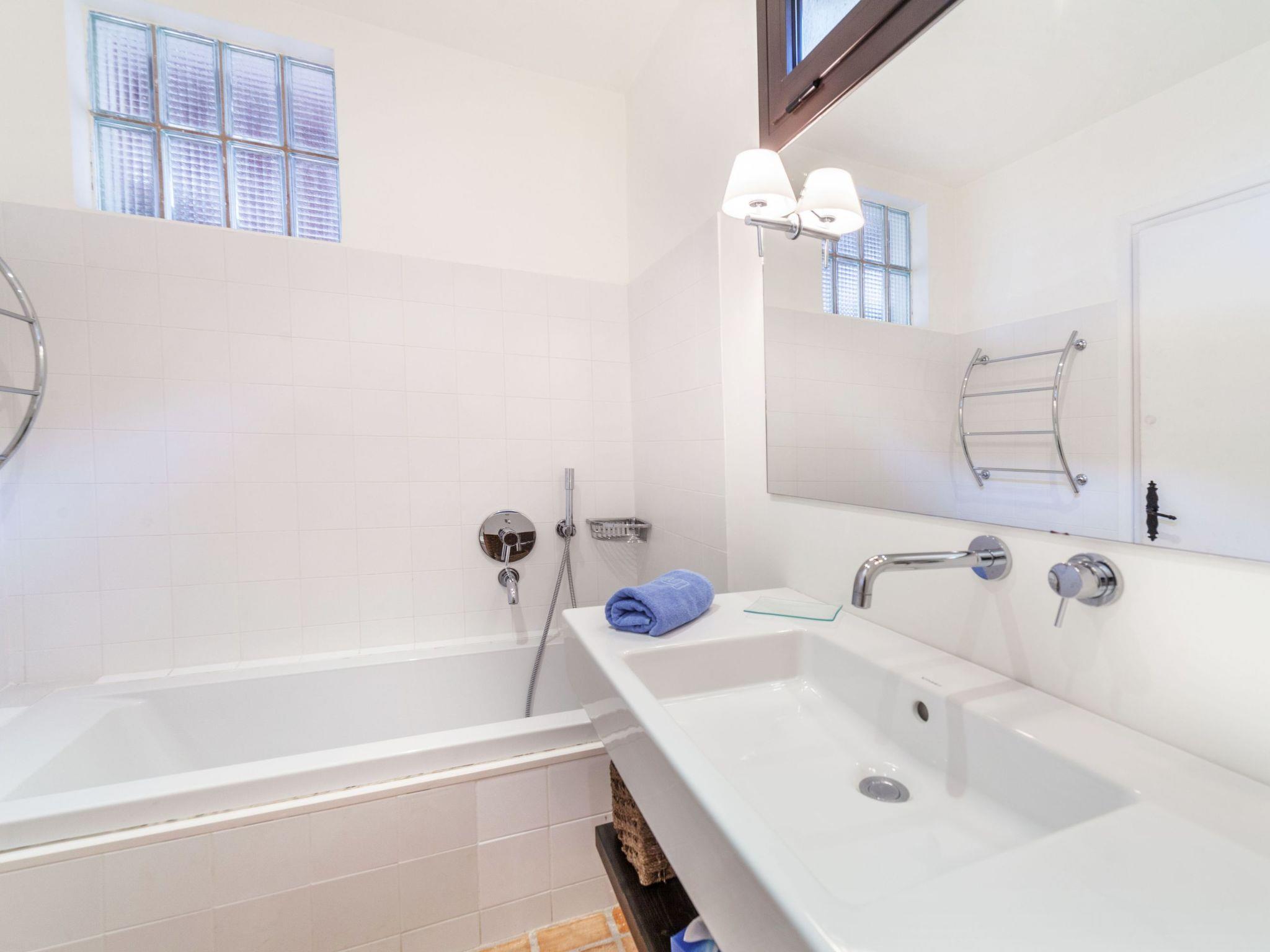 Torre Valentina 1 km from Sant Antoni de Calonge: Child friendly, modern house "La Gargouille". In a sunny position residential area (villas), traffic calmed area, 200 m from the sea. Private: garden (fenced) with lawn, swimming pool (10 x 4 m, depth 110 - 190 cm, seasonal availability: 01.May. - 31.Oct.) with internal staircase. Public parking on the road. Supermarket 1 km, restaurant, bar 300 m, bus stop 400 m, sandy beach "Torre Valentina" 200 m. Sports harbour 6 km, golf course (18 hole) 9 km, tennis 2 km, riding stable 12 km. Nearby attractions: Waterpark Aquadiver 6 km. The owner does not accept any youth groups.