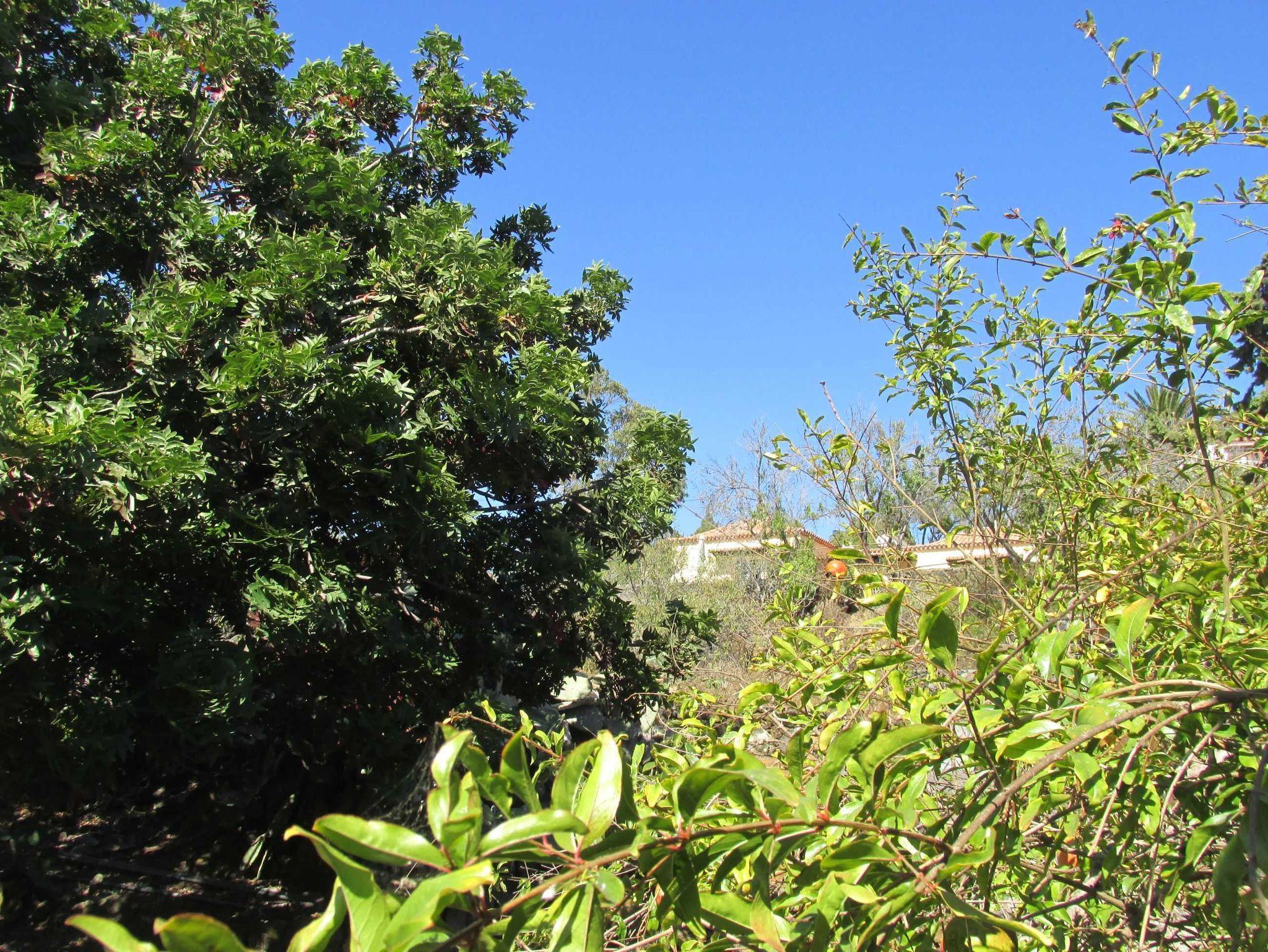 Das Grundstück liegt an einem Hang und besteht aus mehreren Terrassen, die mit einheimischen Bäumen und Sträuchern bepflanzt sind. Man fährt von unten über eine relativ steile Auffahrt, die das Grundstück in zwei Seiten teilt, zu den Häusern hoch. Das Doppelhaus steht auf der oberen Terrasse links. Auf der rechten Seite, ein Stück weiter unten, steht das Haus des sympathischen Eigentümers, der jedoch nur alle 4-6 Wochen mal vorbeischaut und sonst in Deutschland lebt. Auf einer weiter unten gelegenen Ebene ist ein Parkbereich angelegt.