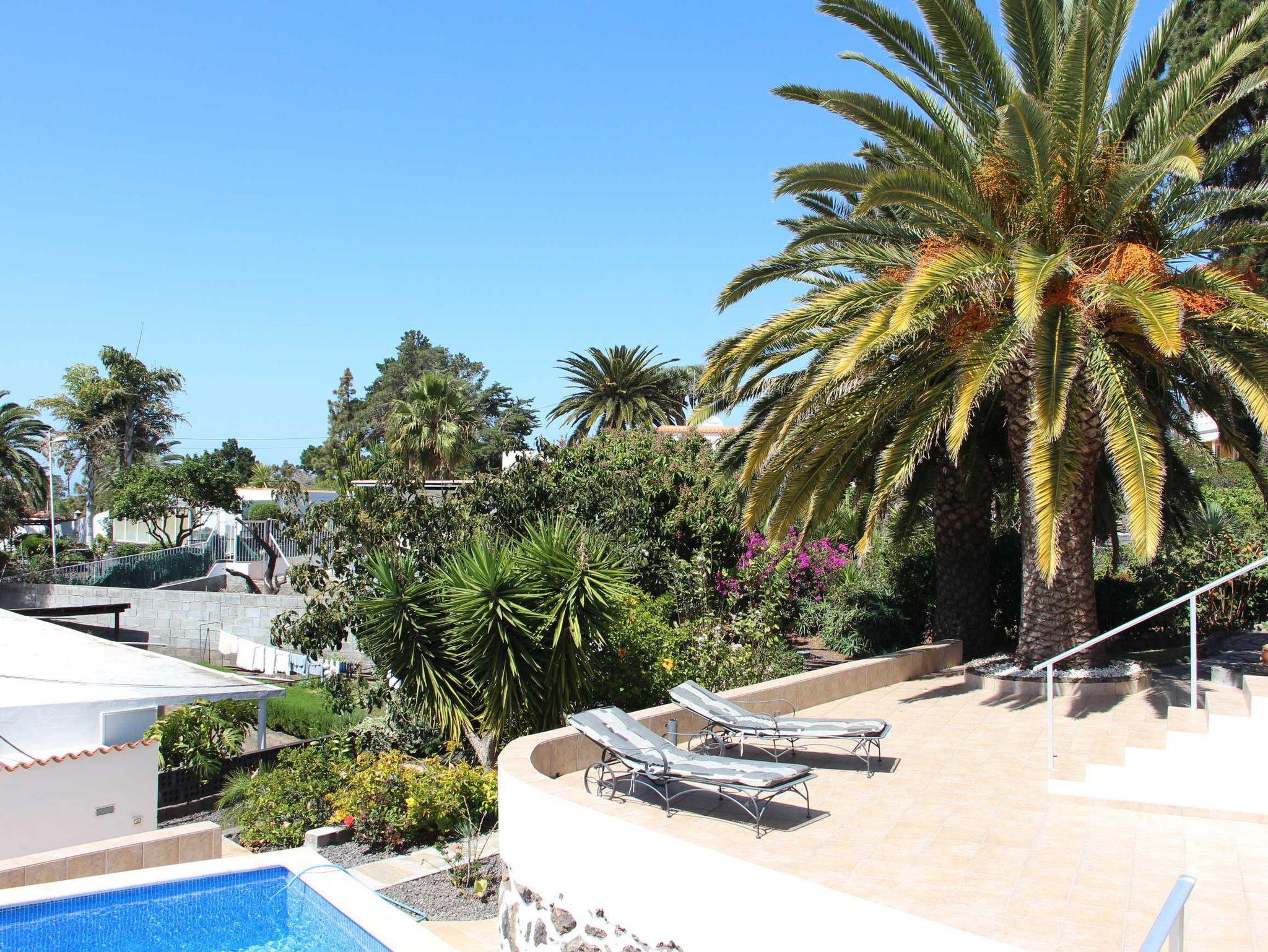 Die Flächen dazwischen sind begrünt, vom großen Palmenblätterdach, unter dem man an heißen Tagen Schatten findet, über Orangen- und Avocadobäume bis hin zu endemischen Gewächsen. Von einigen Bereichen sieht man aufs Meer, von anderen in den Garten, auf die Nachbarhäuser, die in einiger Entfernung stehen oder auf den Pool.