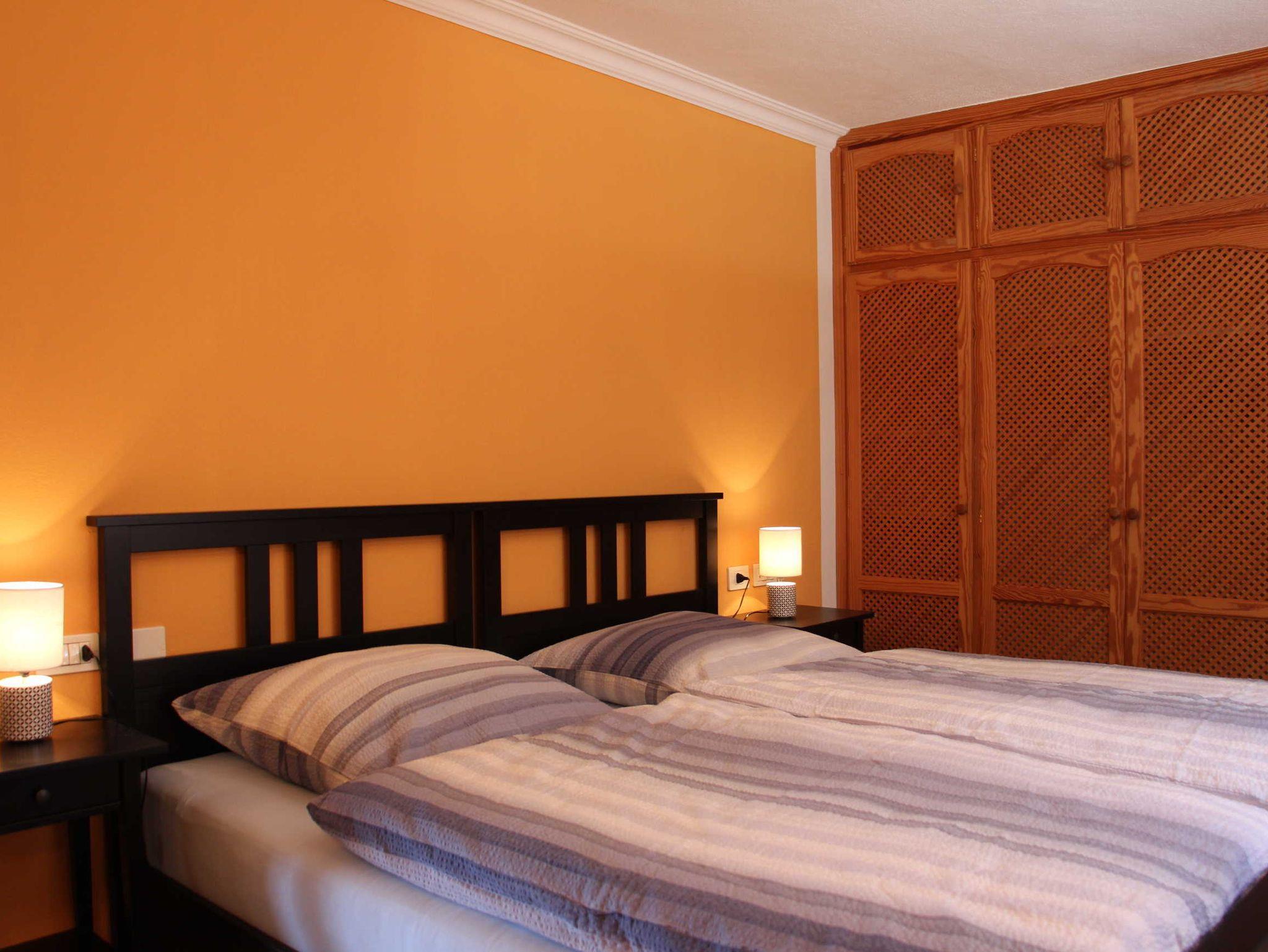 Die beiden Schlafzimmer verfügen über Doppelbetten mit hochwertigen Matratzen sowie große Kleiderschränke. Im Safe können Wertgegenstände weggeschlossen werden. Das Hauptschlafzimmer ist mit einer Klimaanlage ausgestattet, für das zweite Schlafzimmer gibt es bei Bedarf einen Elektroradiator.