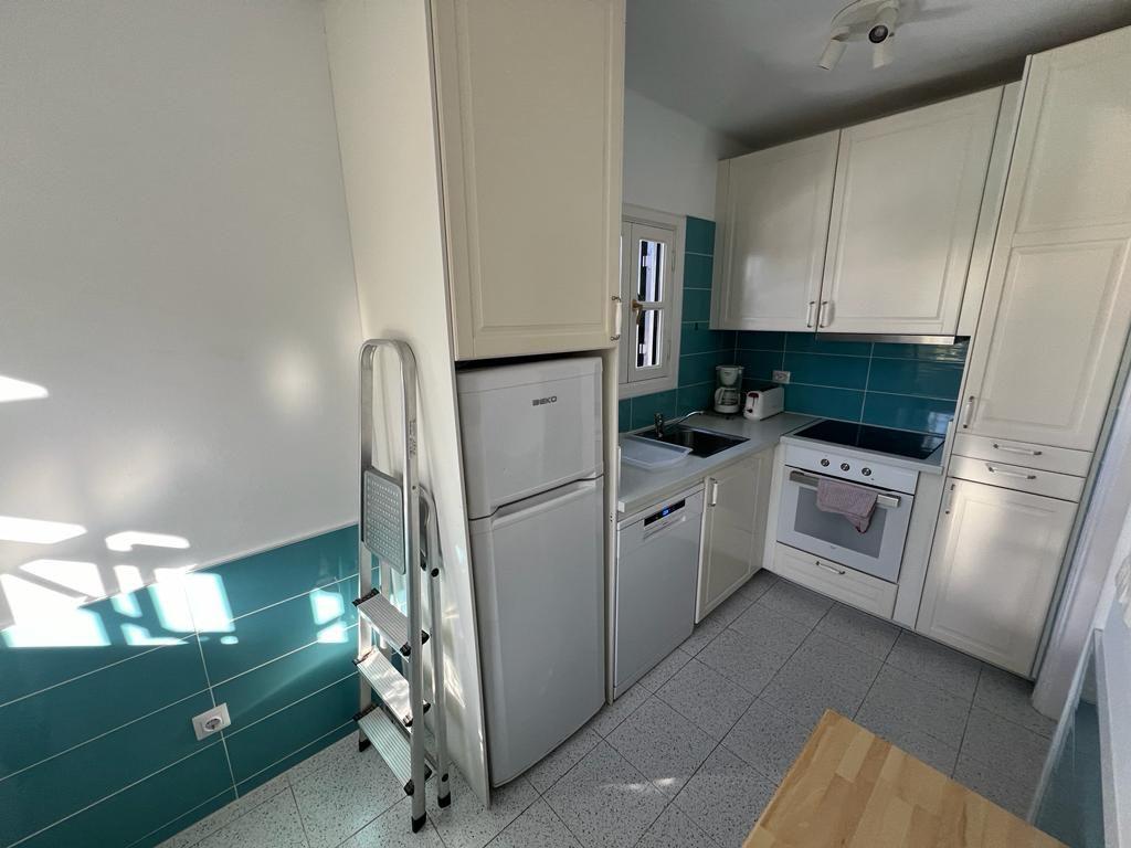 Casa "Dubai" Well-equipped duplex bungalow in a well-kept private complex with a large swimming pool. 2 bedrooms, living room with dining area, satellite TV (almost all German channels), modern kitchen with 4-ring ceramic hob, oven, fridge with freezer compartment, dishwasher, coffee machine. Bathroom with shower/WC and washing machine. Large, sheltered lower terrace with table and 4 chairs, parasol and loungers. Cushions for chairs and loungers. Upper, sunny terrace with sea view. ORANGE fibre optic internet