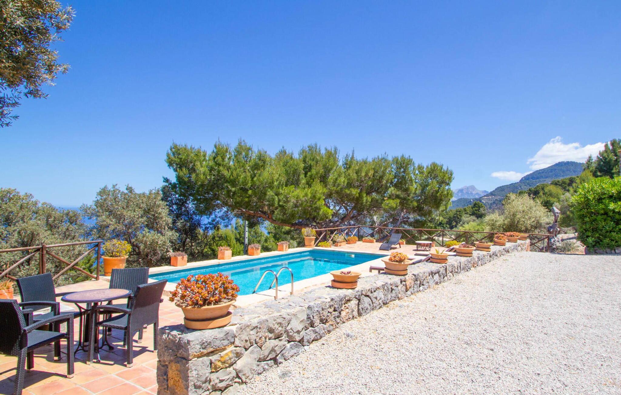 Diese charmante Villa "Valero“ im traditionellen mallorquinischen Landhausstil liegt in der Nähe von Valldemossa an der atemberaubenden Westküste der Insel und bietet einen atemberaubenden Meerblick.