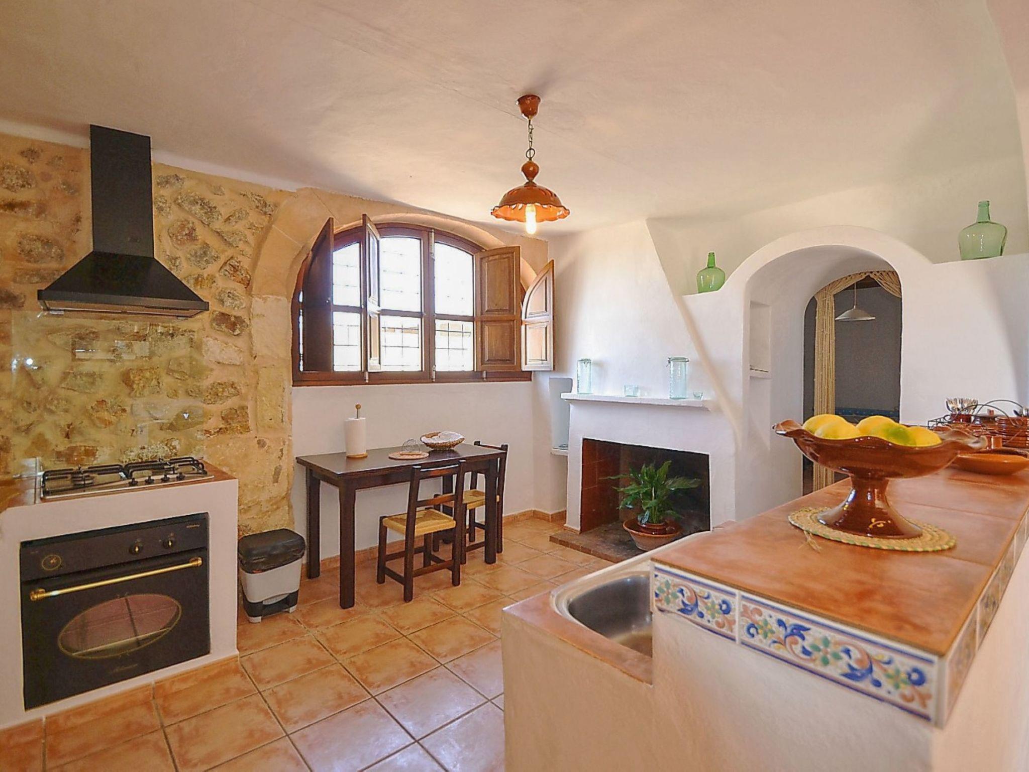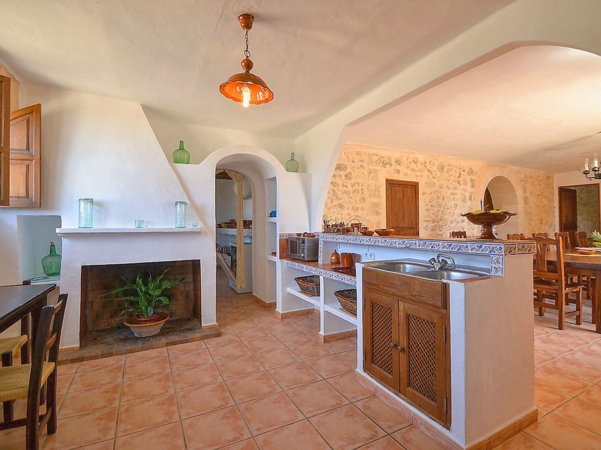 "Albadallet", 6-room house 300 m2 on 2 levels. Object suitable for 8 adults. Spacious, rustic and cosy furnishings: large dining room with dining table. Exit to the patio, to the swimming pool. Living room with open-hearth fireplace. 1 double bedroom with (1 x 150 cm, length 200 cm), 1 double bed and fan. Open kitchen (4 hot plates, oven, dishwasher, toaster, kettle, microwave, freezer, electric coffee machine) with open-hearth fireplace. Shower/WC, sep. WC. No heating option. Upper floor: 1 double bedroom with 2 beds (90 cm, length 200 cm), fan. 1 double bedroom with 2 beds (90 cm, length 200 cm), fan. 1 double bedroom with 1 french bed (150 cm, length 200 cm), fan. Bath/WC. Large patio, lawn. Terrace furniture, barbecue, deck chairs (8), covered balcony. Beautiful view of the mountains, the swimming pool, the garden and the countryside. Facilities: washing machine, iron, children's high chair, baby cot for up to 2 year olds, hair dryer. Internet (WiFi, free). Please note: suitable for families. Non-smoking house. ETV/1000 // Reg. Nr.: ESFCTU00000702900025947100000000000000000000ETV/10007