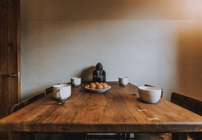 Modern fully equipped kitchen: oven, fridge, microwave, oven. It also has a table, ideal for breakfast.