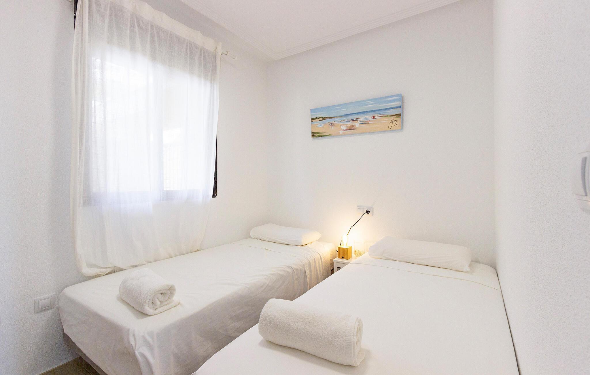 Die schöne und gemütliche Ferienwohnung lädt Sie mit moderner und komfortabler Einrichtung zu entspannten Urlaubstagen ein. Auf der zweitgeteilten Terrasse können Sie zwischen Sonne und Schatten wählen, entweder in Ruhe faulenzen oder bei einem kühlen Getränk und Tapas den Blick aufs Meer genießen. Der gemeinschaftliche Swimmingpool sorgt für eine erfrischende Abkühlung nach einem aktiven Tag – eine ideale Oase für Ihren Urlaub.