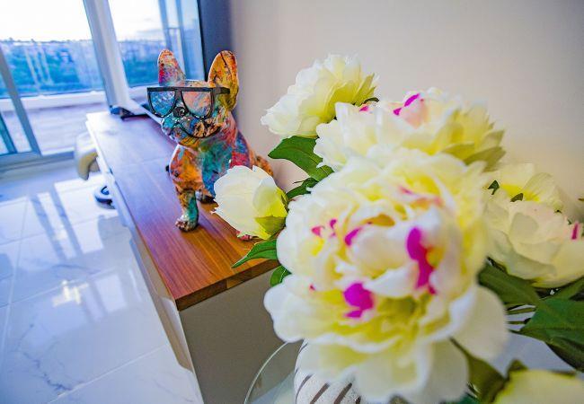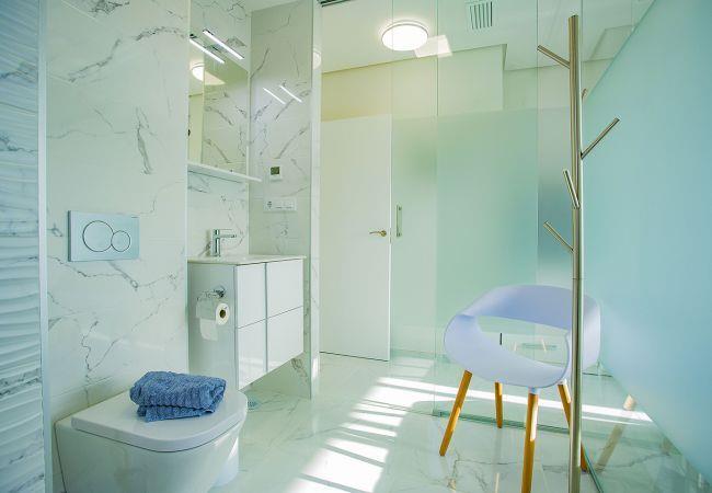 The accommodation is equipped with the following items: lift, garden, garden furniture, 50 m² terrace, iron, internet (Wi-Fi), hair dryer, balcony, heat pump, air conditioning throughout the house, communal+children's swimming pool, communal heated swimming pool, covered parking the same building, 1 TV.