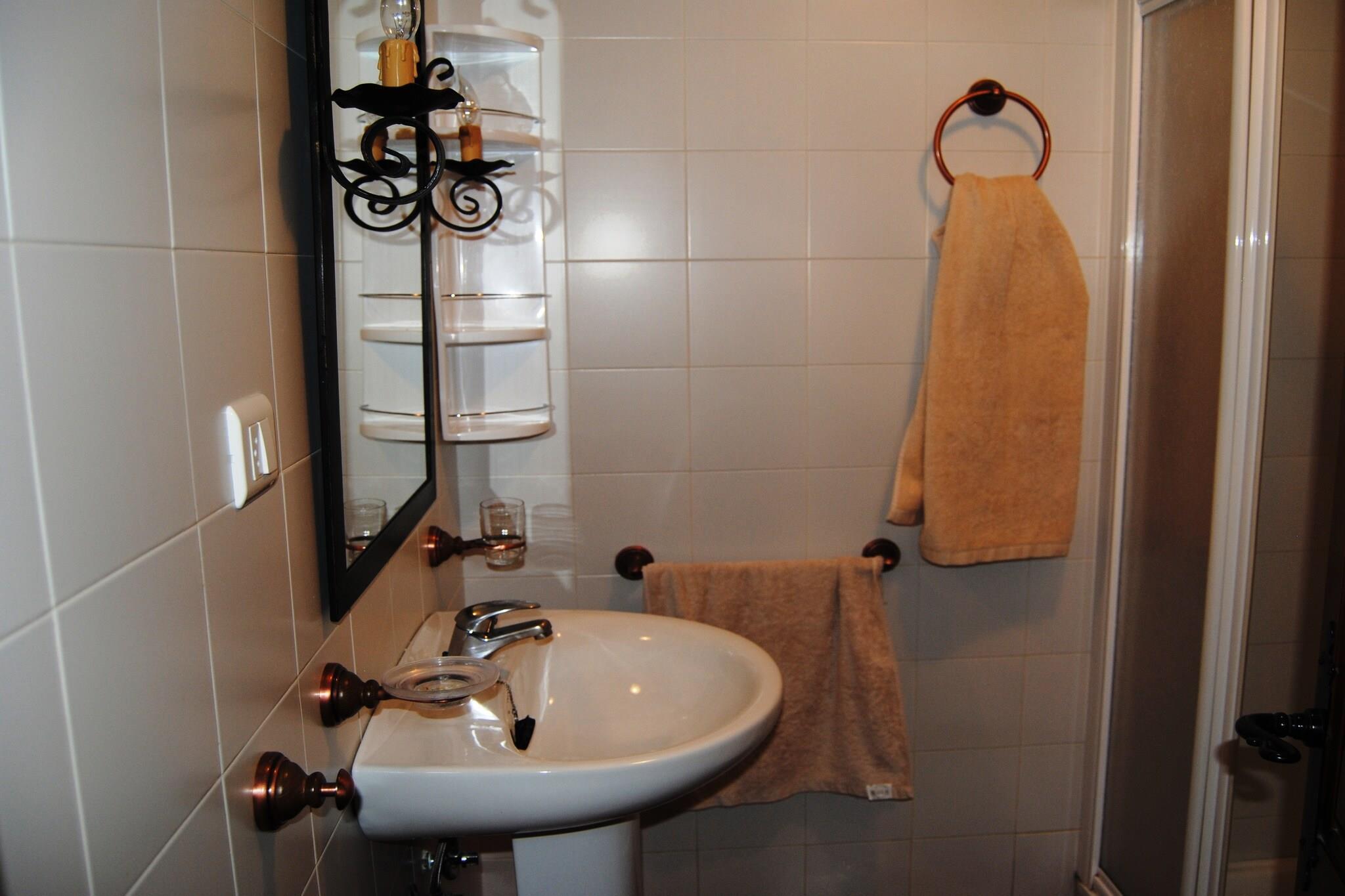 Ground floor: (open kitchen(cooker(4 ring stoves, ceramic), coffee machine(filter), microwave, fridge-freezer), Living/diningroom(TV(satellite), fireplace, air conditioning), bedroom(small double bed), bedroom(small double bed), bedroom(single bed, small double bed), bathroom(bathtub with shower, washbasin, toilet, bidet, washing machine), bathroom(shower, washbasin, toilet)) heating(electric), terrace, garden, garden furniture, BBQ, parking, swimming pool(private, 10 x 6 m., opened from 1/2 Apr upto and including Sep)