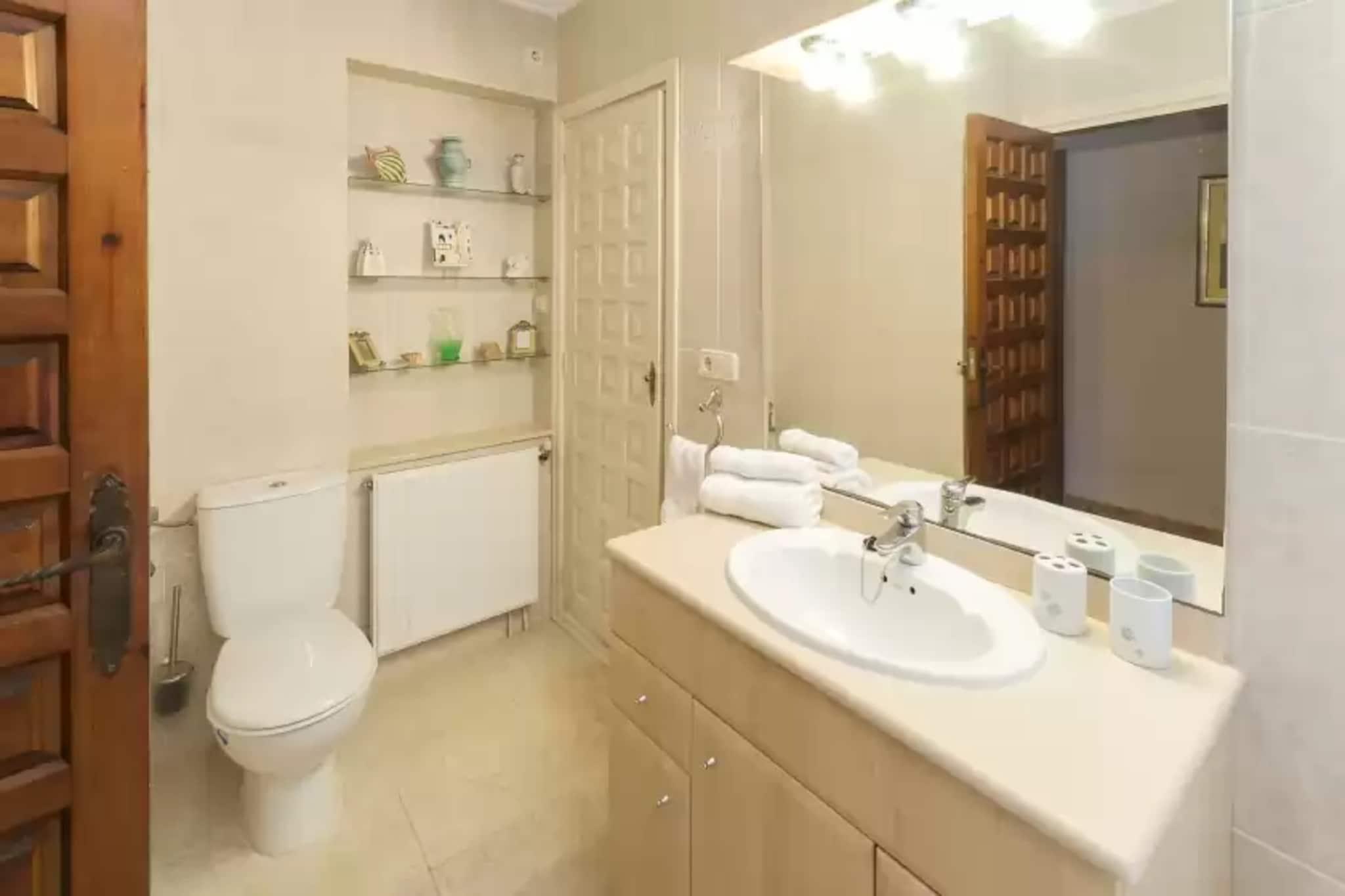 After a long day at the beach it's great to take a refreshing dip in the heated chlorine pool. With a size of 9 x 5 metres and a depth between 1.1 and 1.8 metres, it is ideal for swimming or relaxing on an inflatable mattress. The well-kept garden with palm trees invites you to sunbathe on one of the 4 sun loungers or spread your towel directly on the lawn. Adults will surely enjoy spending their time "doing nothing", taking a nap on the see-saw while the little ones love the children's playground with swings and slide. The restaurants in the area are very good but sometimes it's more fun to enjoy dinners with friends and family at home, go shopping at the market together and finally prepare meat and vegetables on the barbecue. Several terraces offer the perfect atmosphere for great evenings. The villa is located in a quiet neighbourhood close to Cap de la Nao. The single-storey house has a living room with a dining table for 6 guests. The practical kitchen with gas hob, oven, toaster and coffee machine has another smaller table. A laundry room with washing machine, iron and ironing board is located in one of the bathrooms. Regarding the bedrooms, our guests can choose between two rooms with a double bed and one with two single beds. If you are travelling with your baby, we can prepare a cot/crib for you. Two bathrooms, one with a bathtub and one with a shower, serve the house. There are 2 fans and central heating. Lovers of the sea and the beach will find many dreamlike bays in the surrounding area. Cala Ambolo, Playa de la Granadella, Playa del Portixol and Cala Sardinera are just a few examples of Mediterranean wonders. In the urbanisation you will find some restaurants but we recommend a visit to the old town of Jávea, not only for its narrow cobbled streets but also for its good restaurants. The natural park of Montgó offers a natural environment, ideal for hiking and cycling. Further south are Moraia and Calpe, two coastal towns with a lively atmosphere in summer. The fireplace in the living room cannot be used. The heated swimming pool is only available in April, May, 15-30 September and October. There is a daily extra charge. Note: This accommodation is intended for families and guests over 30 years old who are looking for a peaceful stay. Bookings for parties or celebrations are not accepted. A copy of the identification document of all guests will be required to confirm the reservation. Consult the advertiser for possible charges. Pets are not allowed. The holding of events is forbidden. There is exterior parking for 1 cars. Distances Beach: 6 km - Playa del Arenal Jávea Airport: 100 km - El Altet - Alicante Golf course: 8 km - Club de Golf Jávea Town: 6 km - Jávea Train station: 19 km - Gata de Gorgos Bus stop: 6 km - Xàbia Ferry: 20 km - Dénia Hospital: 28 km - Marina Salud de Dénia Tourist license: CV-VUT0459470-ASingle Rental Registry: ESFCTU000003071000250693000000000000000000VT-459470A5 Heated Swimming Pool (January - December): 28 EUR/Night (optional)