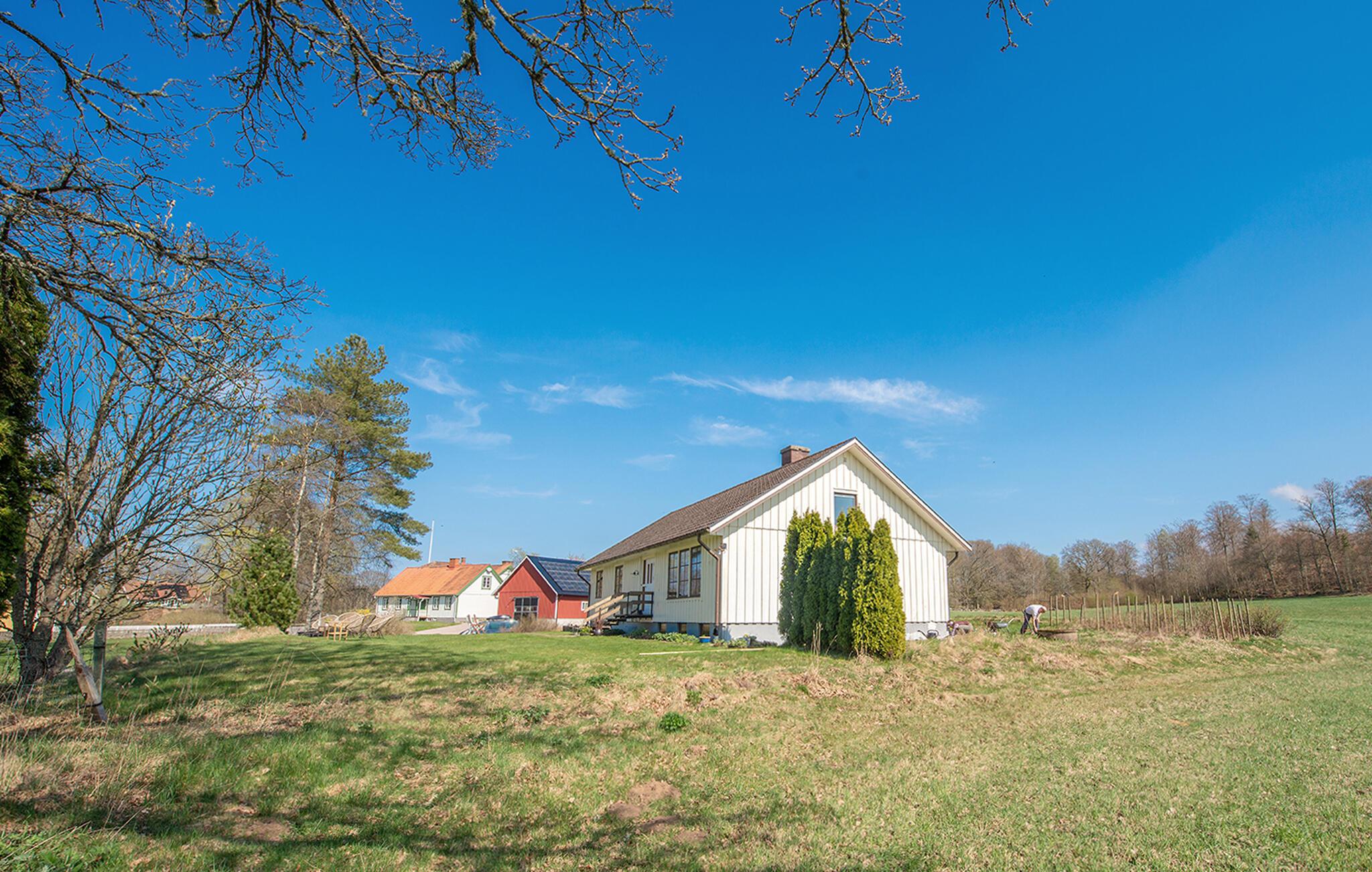 Dieses helle und mit viel Liebe zum Detail eingerichtete Ferienhaus begrüßt Sie mit echter Wohlfühlatmosphäre. Kochen Sie gemeinsam in der geräumigen, gut ausgestatteten Küche und speisen Sie mit Blick in die Naturlandschaft – vielleicht schauen hier Kraniche, Hasen, Füchse oder Hirsche vorbei. Entfachen Sie den Kaminofen, nehmen Sie auf dem Sofa Platz und genießen Sie die Aussicht auf den Gårdsjön und den kleinen Badeteich,