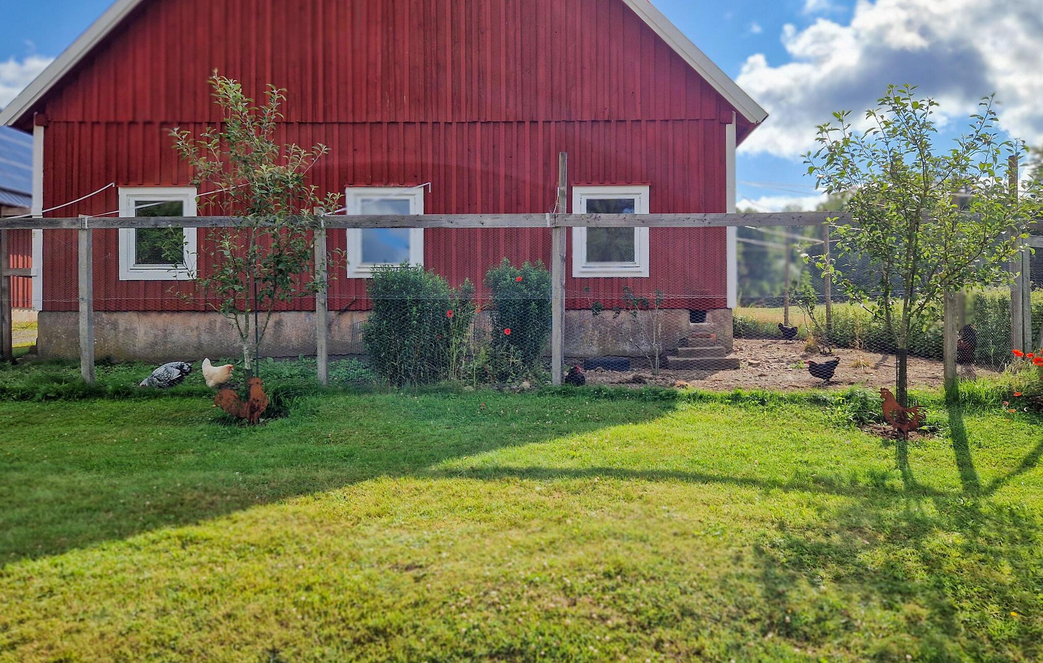 Entspannen Sie auf der schönen Terrasse und lassen Sie im weitläufigen Garten die friedliche Atmosphäre auf sich wirken. Nutzen Sie die beiden Boote zum Angeln und Rudern auf dem nahegelegenen See. In der Nachbarschaft sorgen Hühner, Pferde und Weidetiere für ein authentisches, ländliches Ambiente.