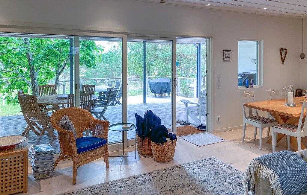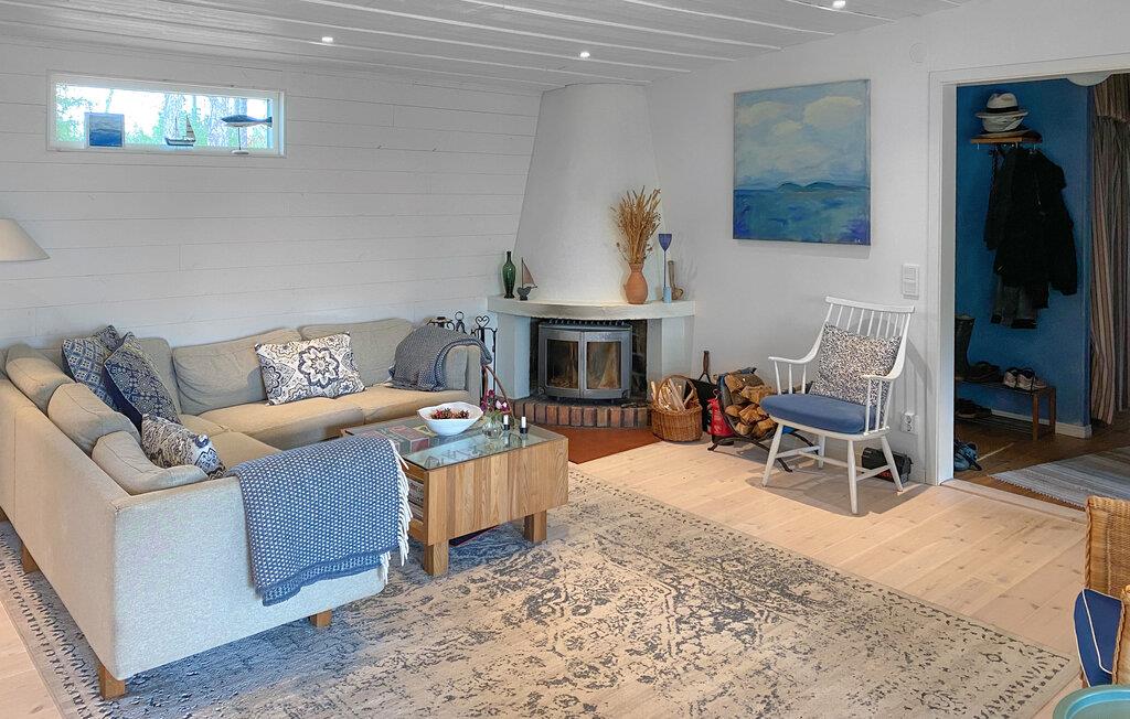 In diesem Ferienhaus erleben Sie Südschweden von seiner schönsten Seite – zwischen Meer und Kultur. Im Inneren erwartet Sie ein offener Wohnbereich mit viel Tageslicht, geschmackvoller Einrichtung und liebevollen Details. Machen Sie es sich auf der großen Sofalandschaft vor dem Kamin gemütlich, lesen Sie ein Buch oder genießen Sie einfach den Blick in den Garten. Die moderne Küche ist ideal eingerichtet, um gemeinsam zu kochen und am langen Esstisch gesellige Mahlzeiten zu genießen. Helle Holzböden und dezente Farben schaffen eine warme, einladende Atmosphäre, die zum Entspannen einlädt.