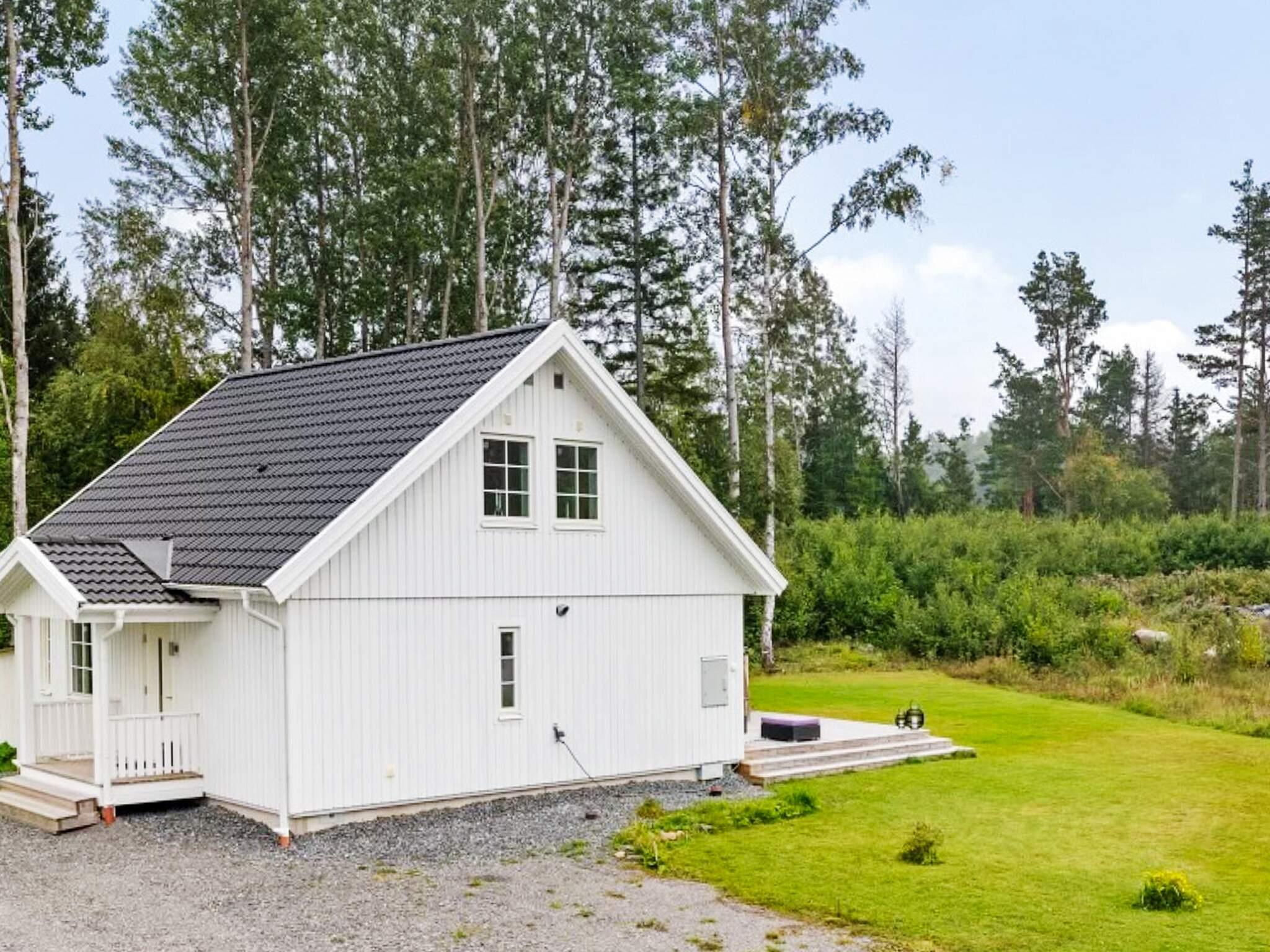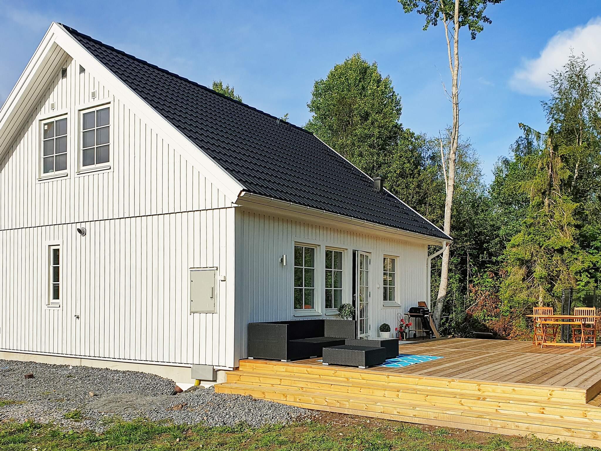 Die Küche ist offen in den Wohn- und Essbereich integriert, der Zugang zur großen Terrasse mit Gartenmöbeln und Grill für angenehme Sommerabende im Freien bietet. Das Badezimmer mit Dusche, WC und Waschmaschine ist komplett gefliest. Das ebene Rasengrundstück bietet Raum für Spiel und Spaß im Freien. Nur wenige hundert Meter vom Haus entfernt liegt Åkeröbadet, ein flacher Sandstrand mit Steg, flachem Rasenufer und Bänken.