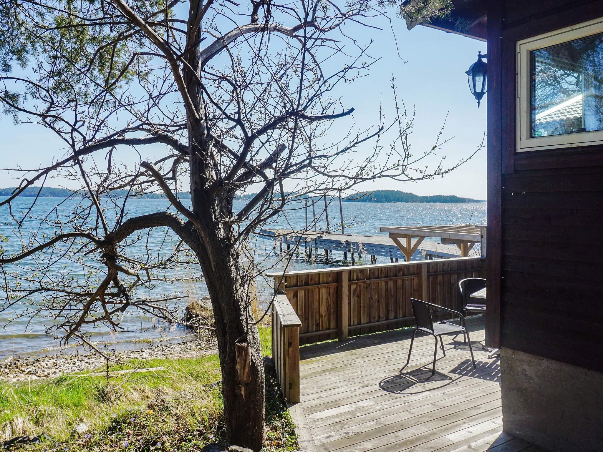 Auf einem Hanggrundstück steht dieses Ferienhäuschen idyllisch zwischen den Bäumen am Ufer. Es verfügt über eine hübsche Holzterrasse und einen beruhigenden Blick aufs Meer. Das Ferienhaus besticht durch seinen offenen und geselligen Grundriss. Wohnzimmer und kleine Küche bilden eine helle und freundliche Atmosphäre mit Meerblick. Das Schlafzimmer ist mit einem praktischen Etagenbett ausgestattet und im Wohnzimmer befindet sich eine Schlafcouch. Zusätzliche Betten stehen in einem separaten kleinen Gästehaus (Annex) mit Doppelbett zur Verfügung – ideal für alle, die etwas Privatsphäre wünschen. Dieses Gästehaus liegt etwas weiter entfernt am Steg. Die Holzterrasse direkt am sanft plätschernden Wasser ist der perfekte Ort für den Morgenkaffee oder lange Sommerabende.