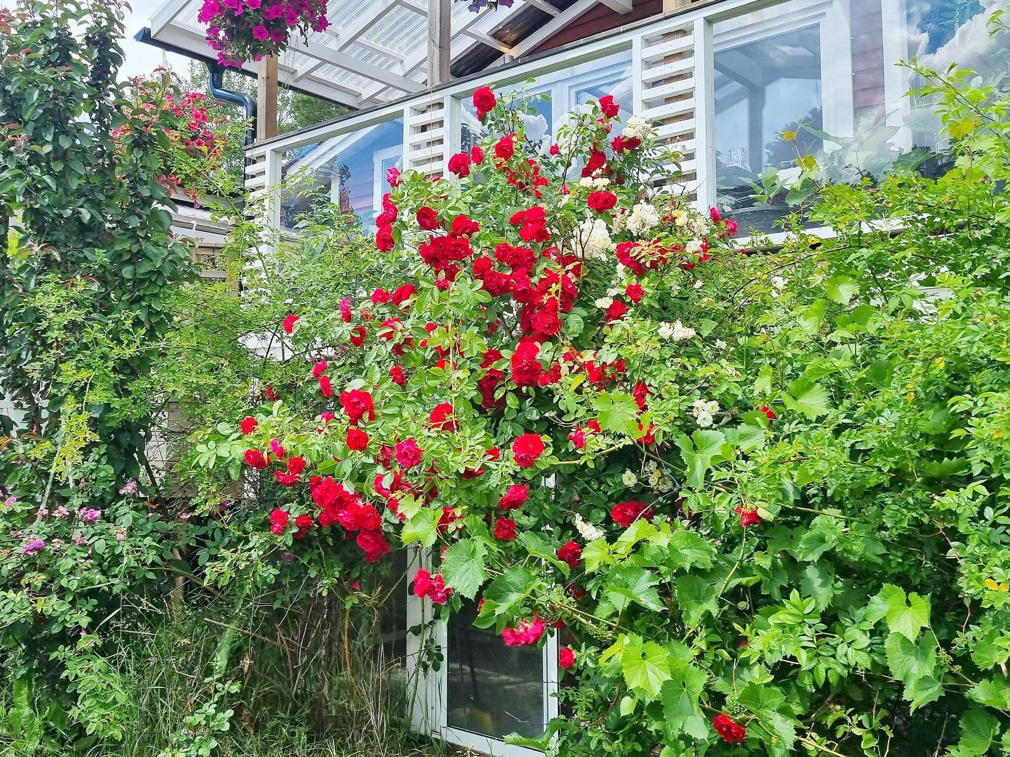 Der Eigentümer liebt Blumen und hat im Garten eine fantastische Oase aus Rosen und anderen duftenden und schönen Pflanzen angelegt. Hier gibt es auch Apfelbäume, Birnbäume, Pflaumenbäume und Kirschbäume, einfach zum Pflücken und Essen. Auf dem großen Balkon wachsen viele Tomaten, die Sie auch gerne essen können.